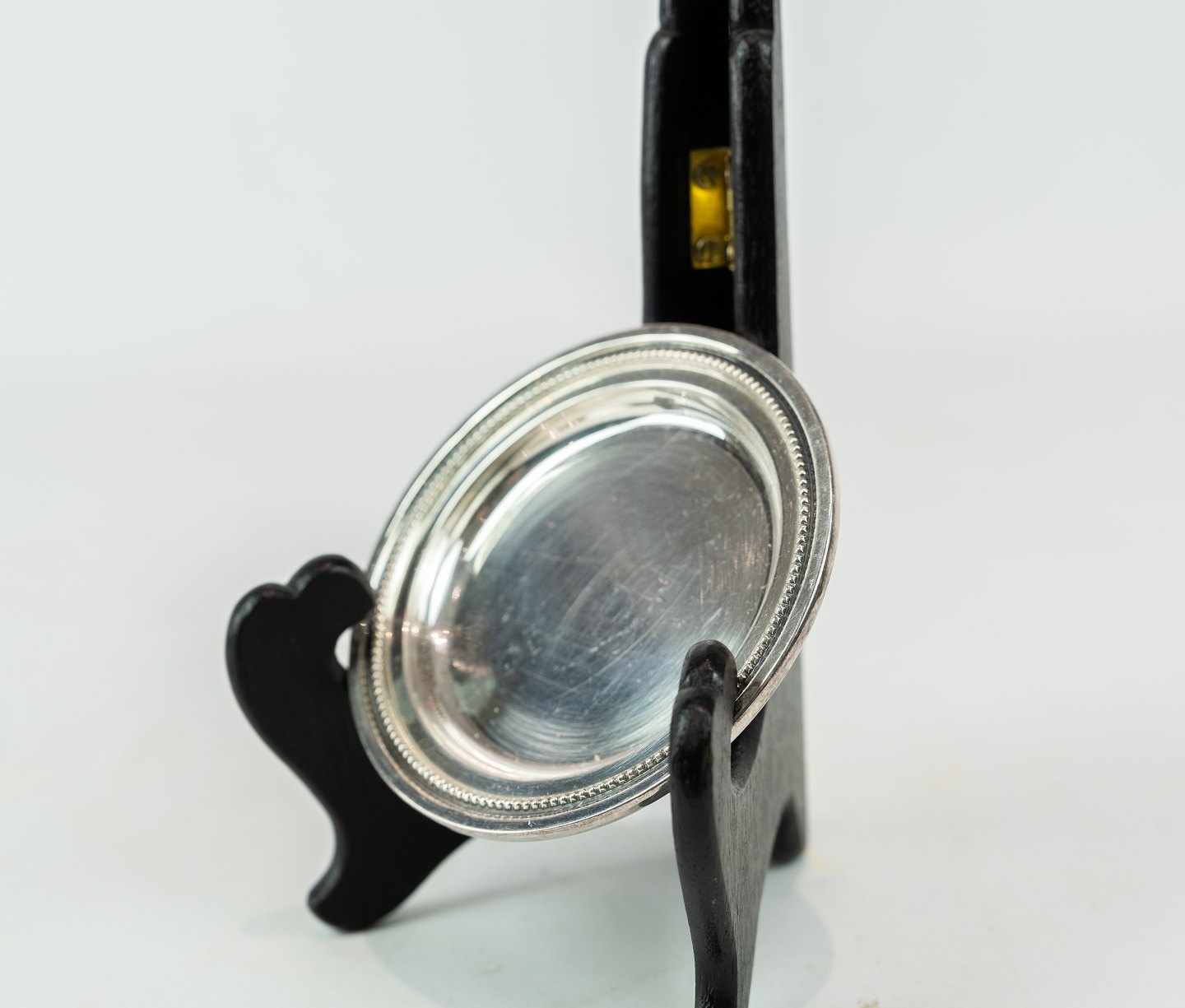 Tretårnet sølvbakker 9 cm med fin perlekant.