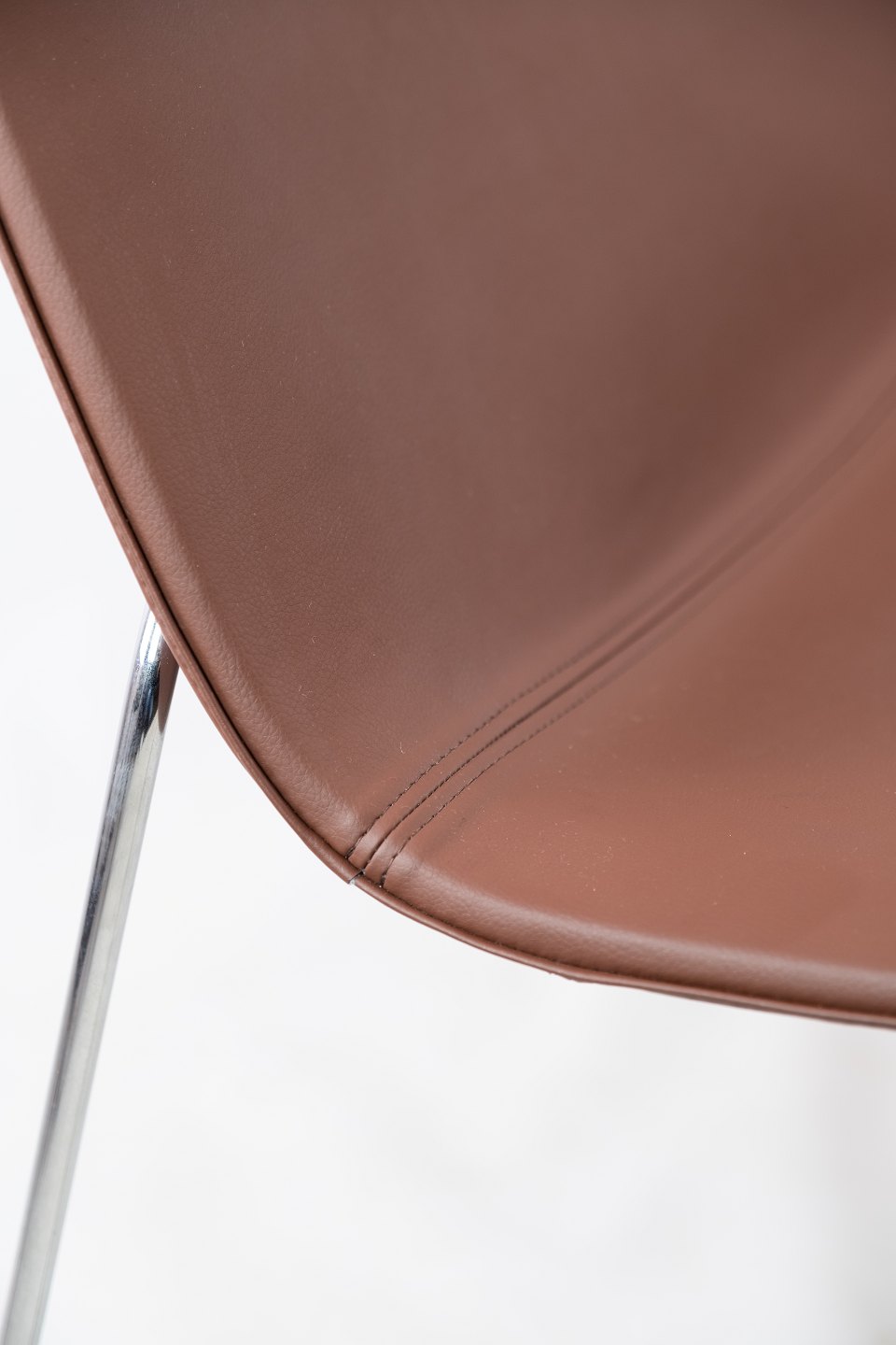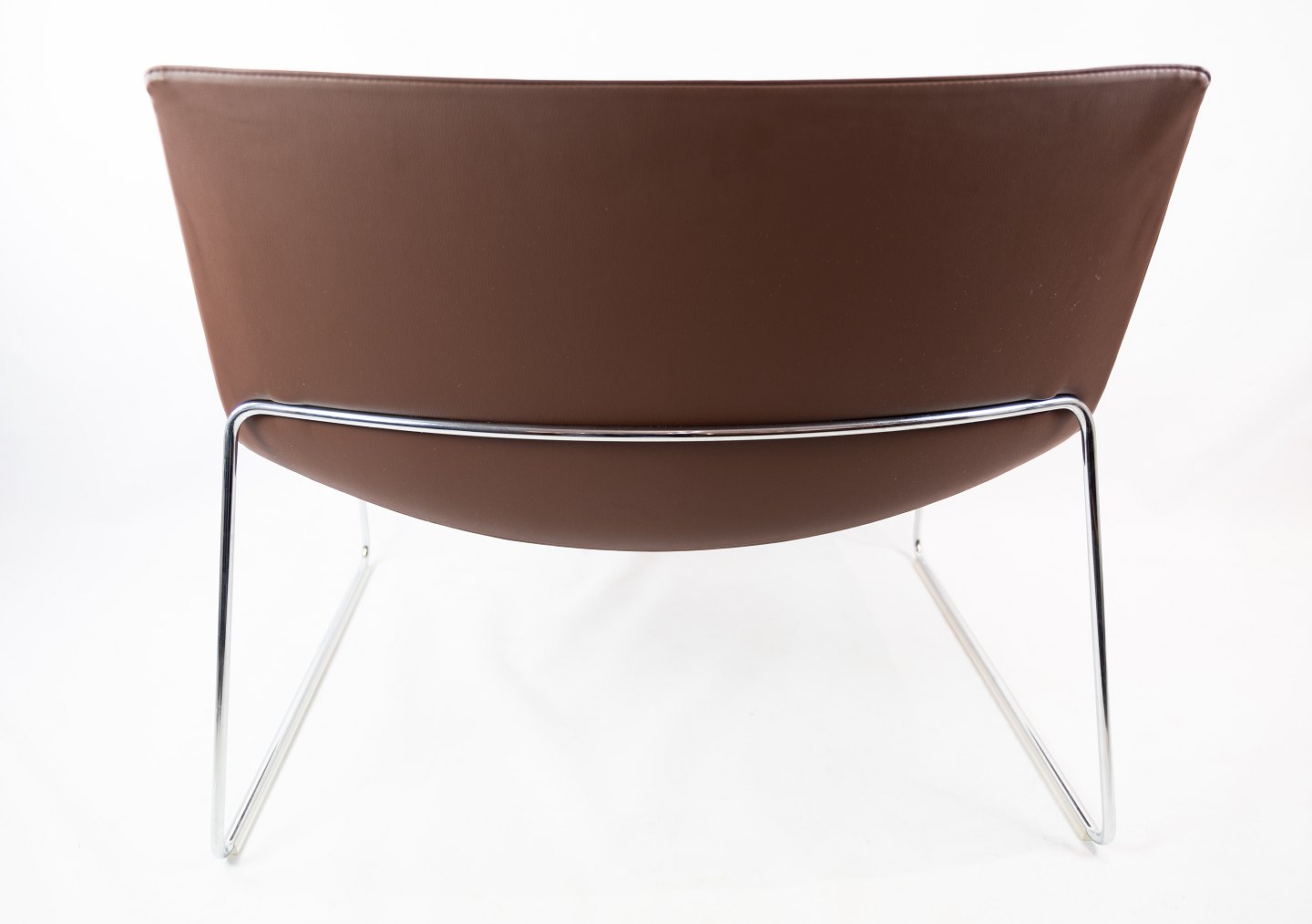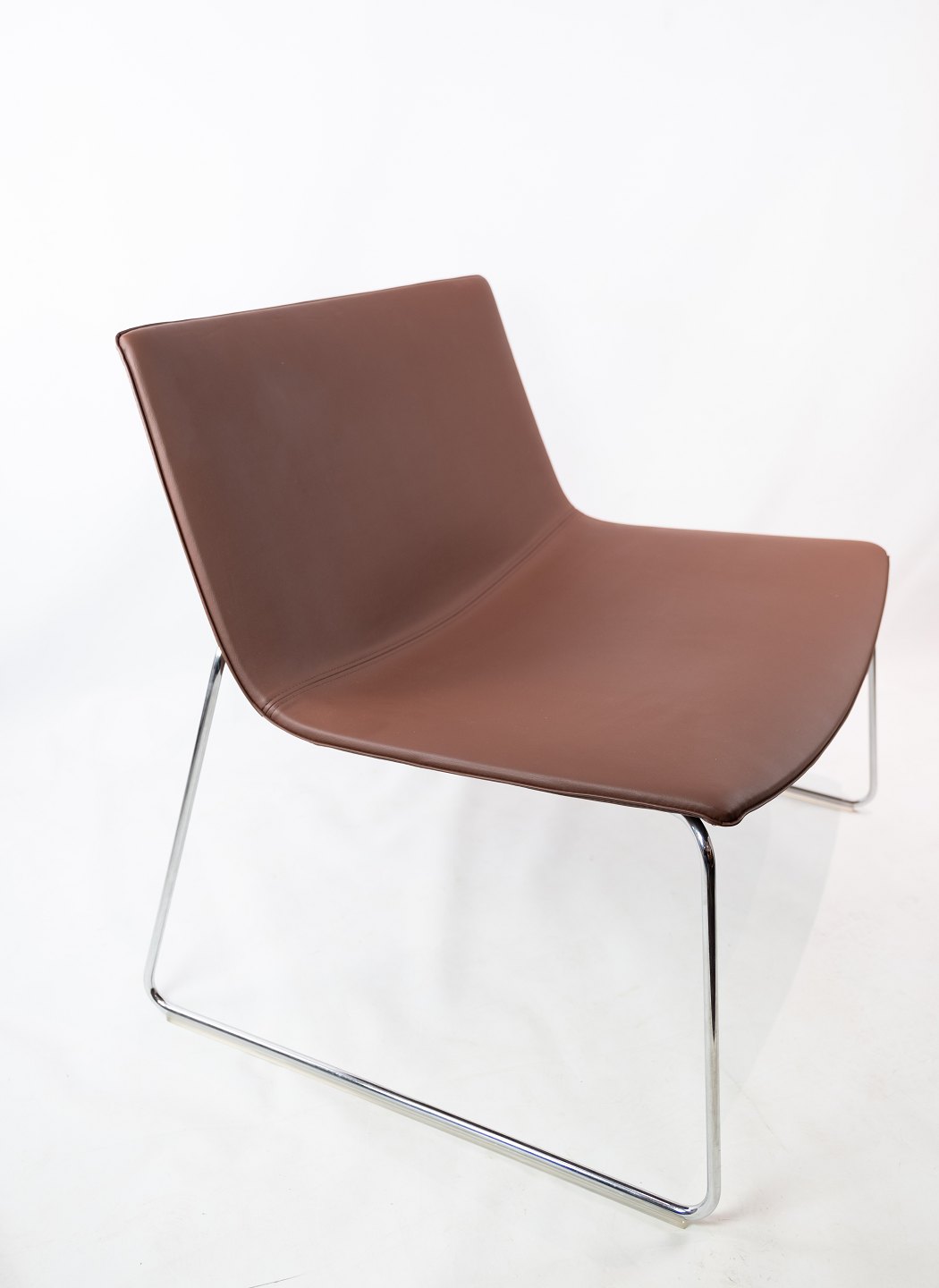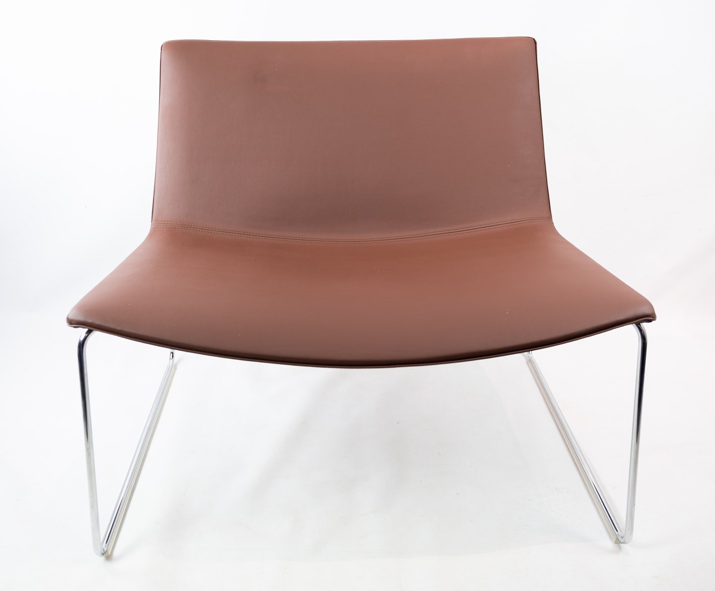 Italian easy chair designed by Lievore Altherr Molina and produced by Arper. Model Catifa 80 with light brown leather and chromed steel .