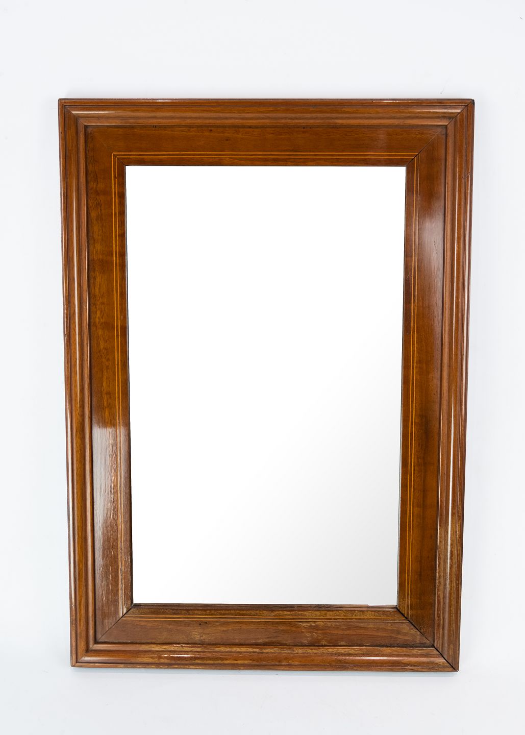 SoldMirror of handpolished walnut with inlaid wood from 1880. The mirror is in great used condition.
