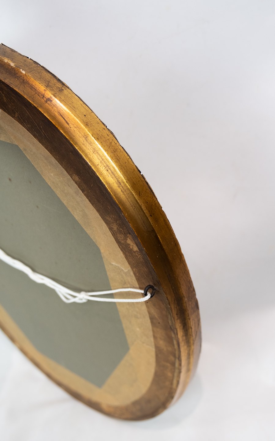 SoldOvale mirror with gilded frame, in great antique condition from the 1890s.