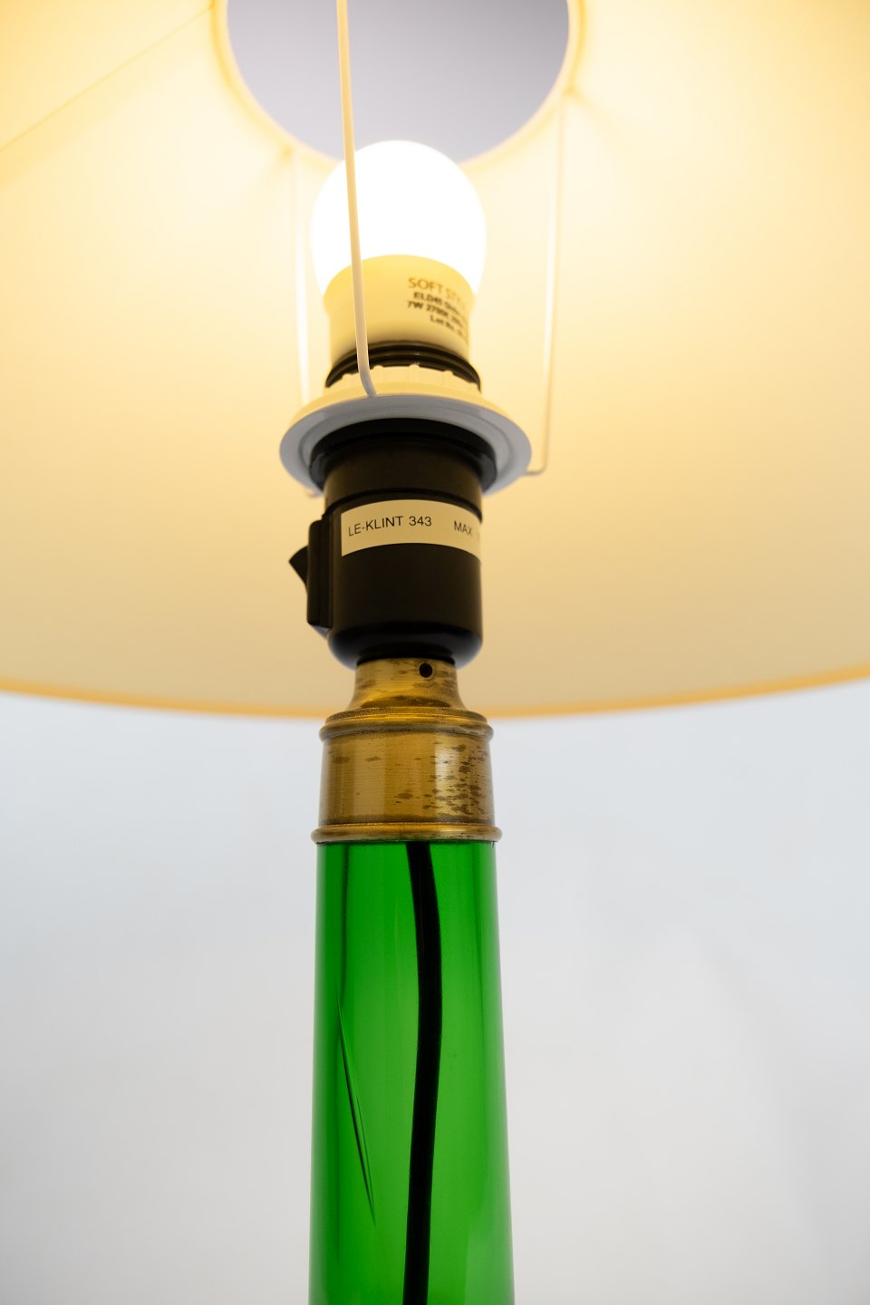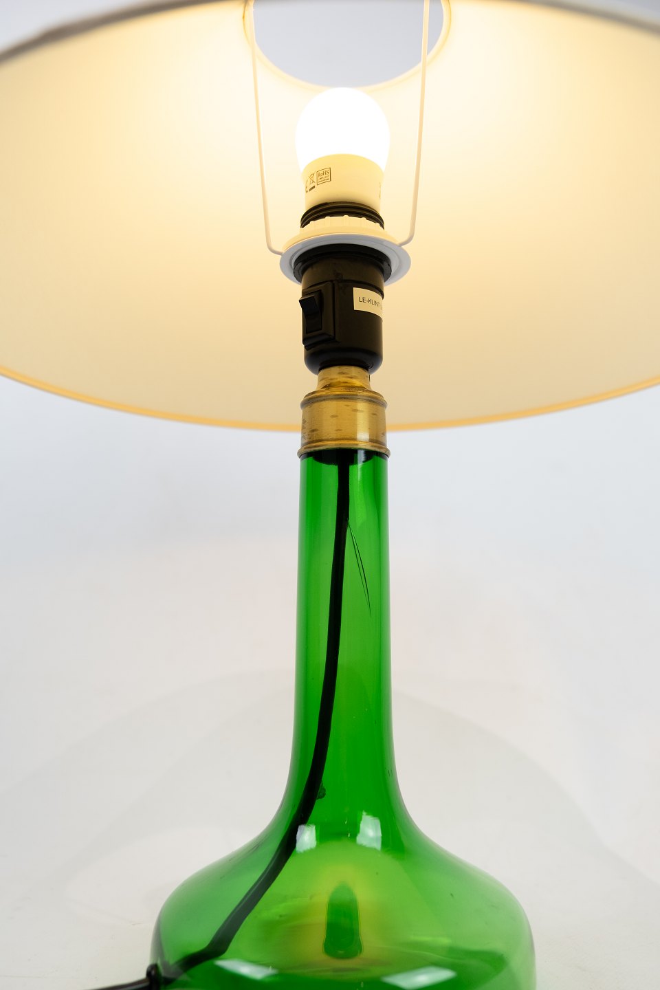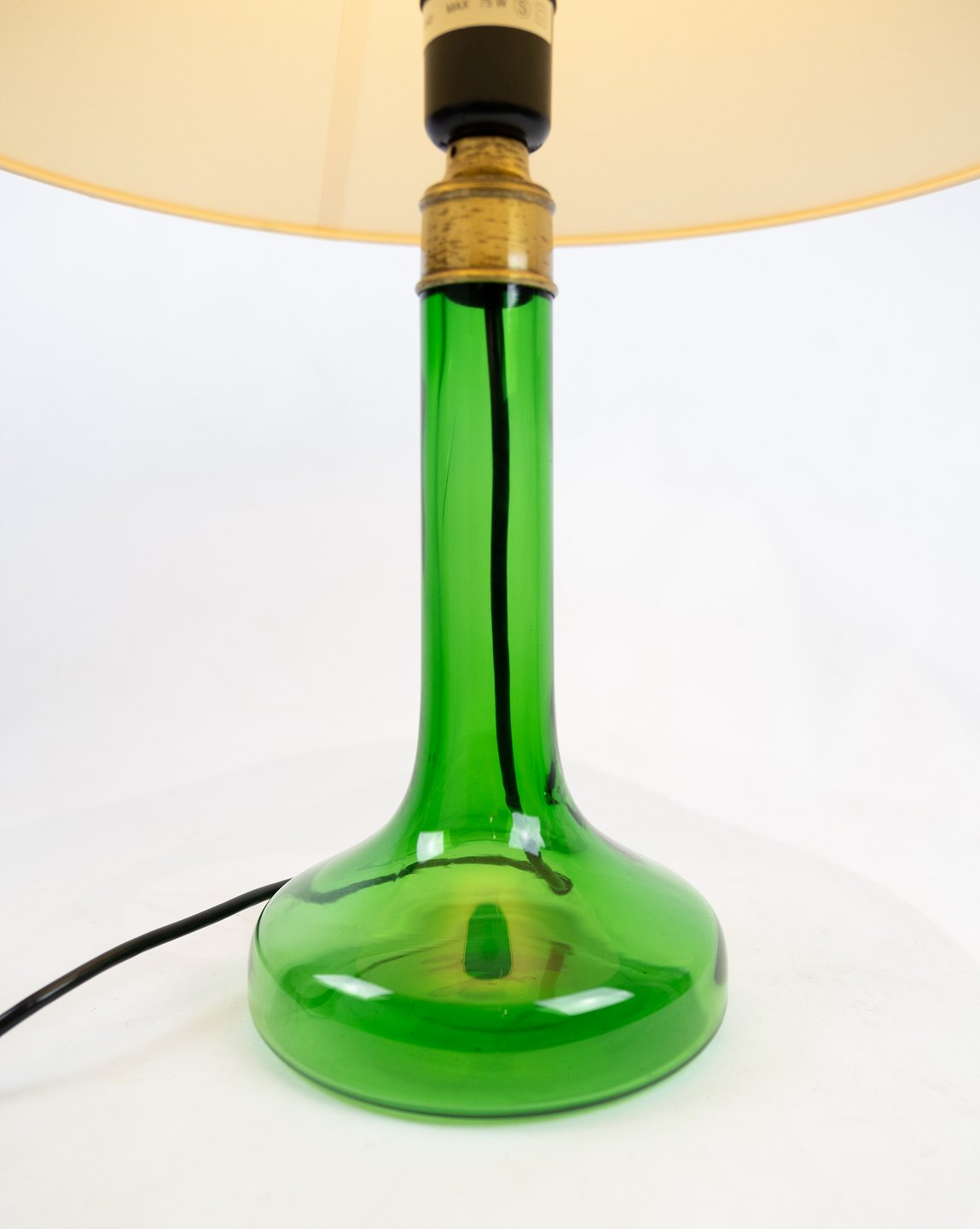 SoldTable lamp of green glass by Holmegaard from the 1960s. The lamp is in great vintage condition.