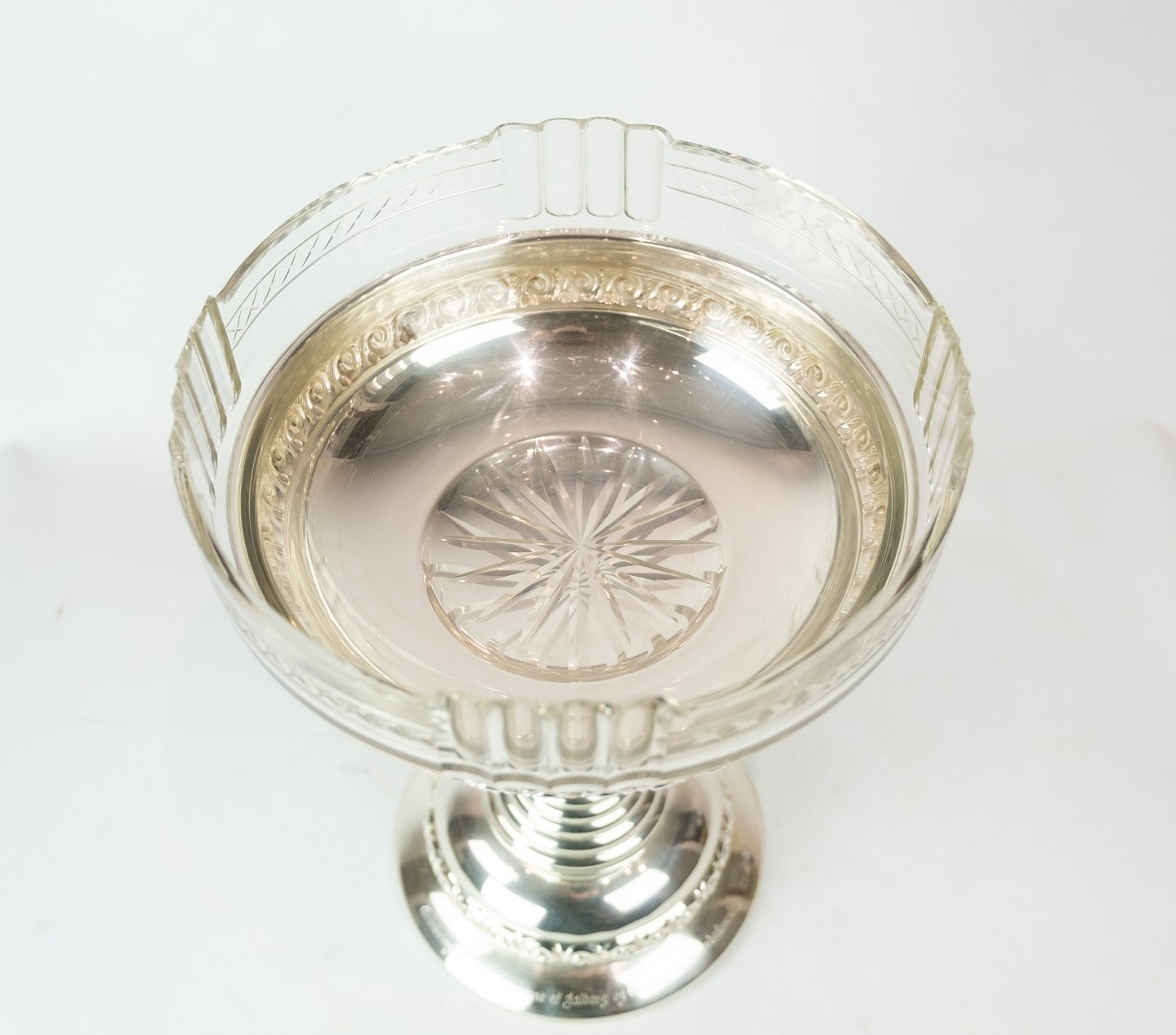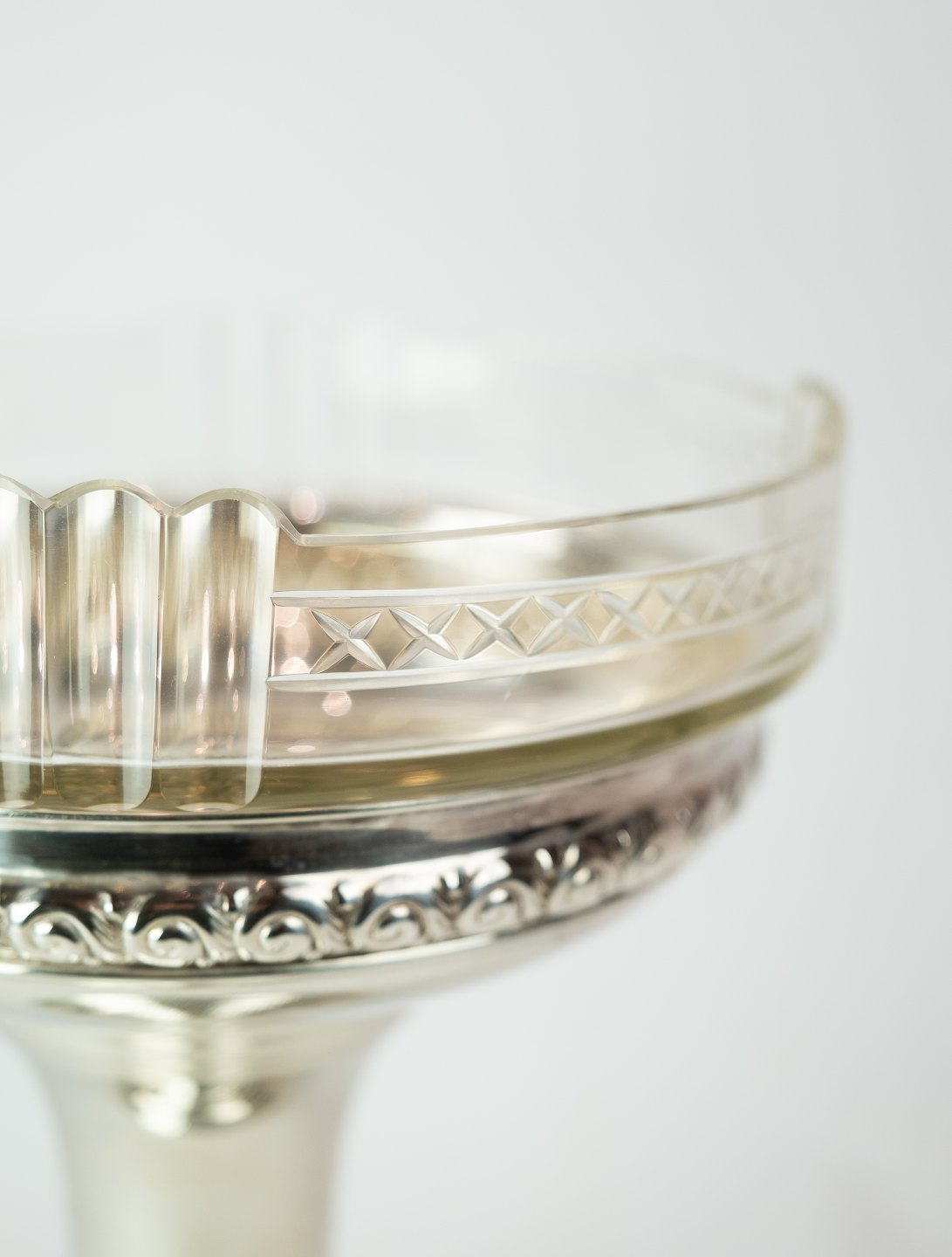 Opsats af sølvplet i Jugendstil med glas indsats fra 1920erne.
