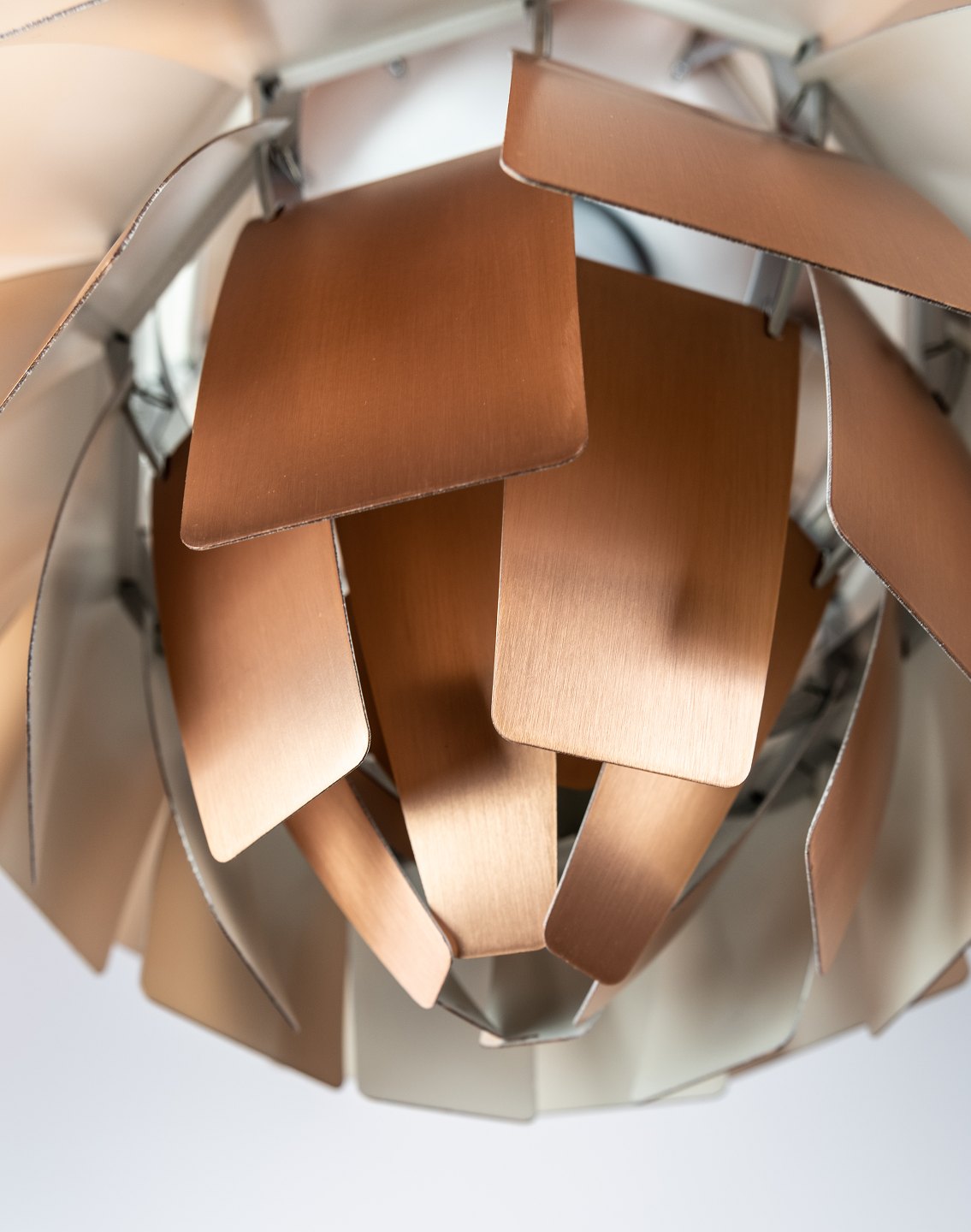 Artichoke, Ø48, of copper designed by Poul Henningsen in 1958 and manufactured by Louis Poulsen.