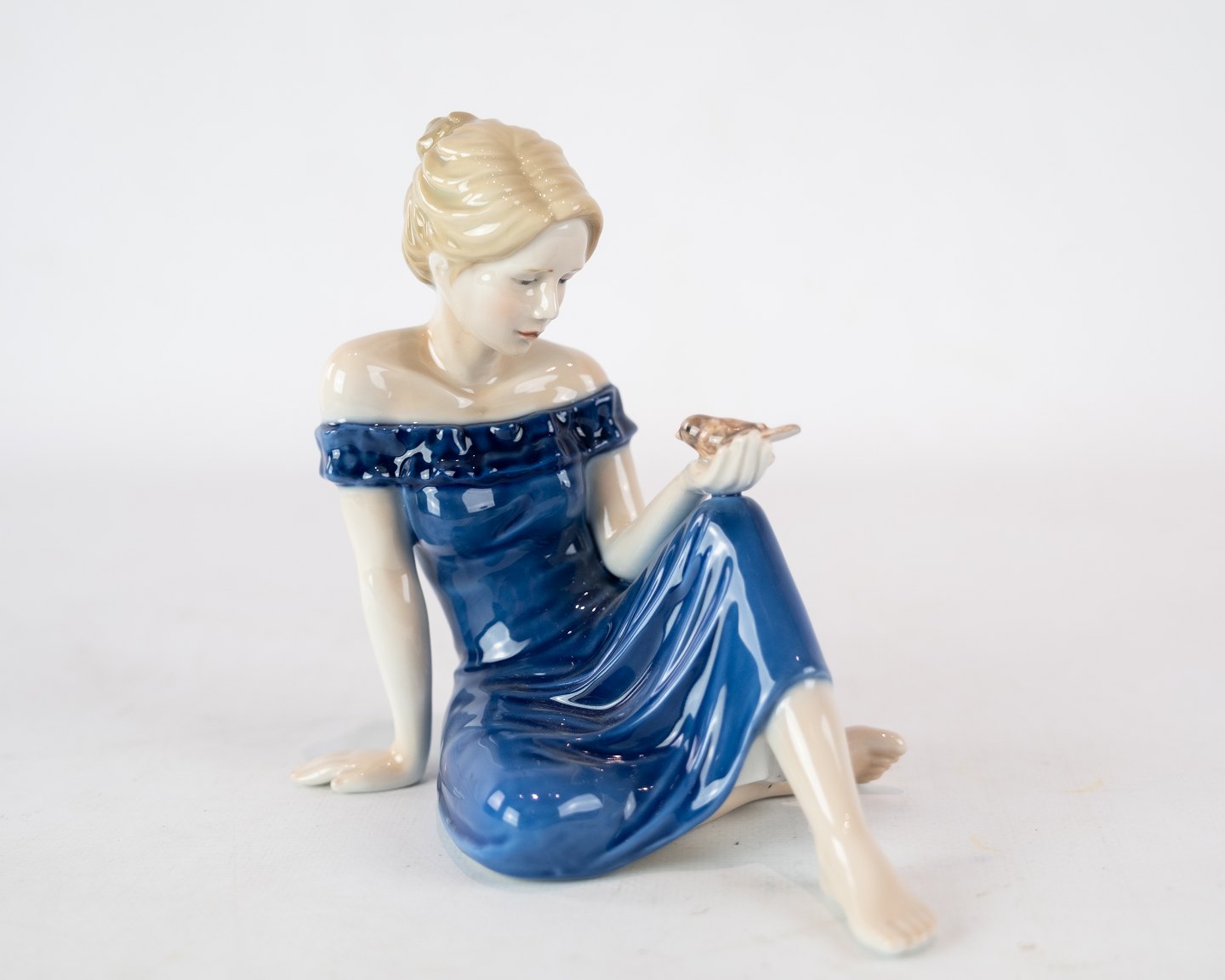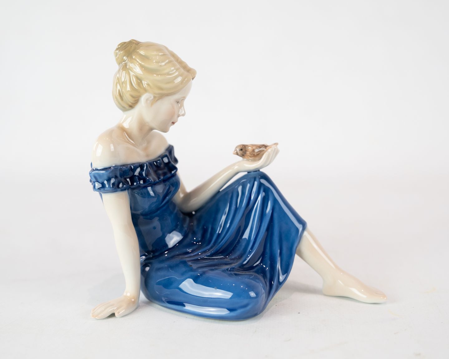 SoldPorcelain figure, sitting girl, no.: 27H, by Royal Copenhagen.