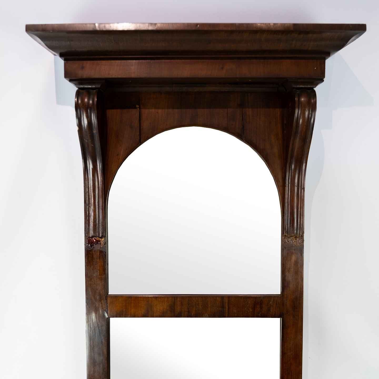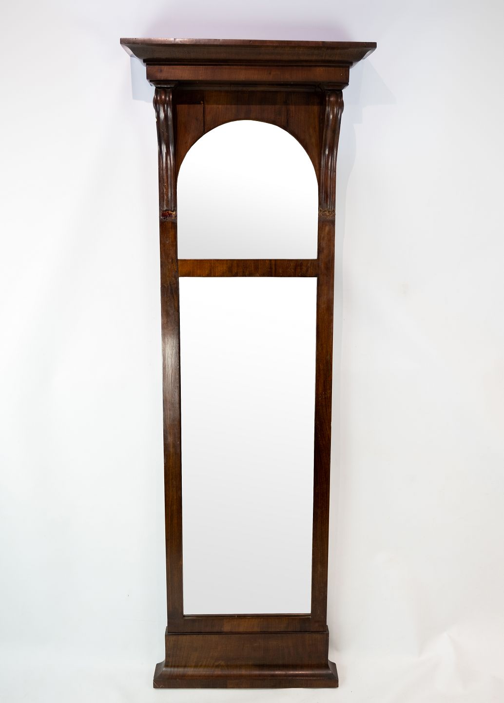 Slim mirror of mahogany, in great antique condition from the 1840s.