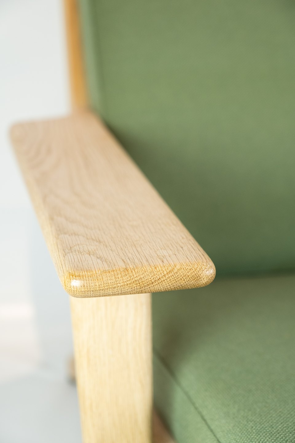 Hans J. Wegner, one of Denmark's most influential furniture designers, is known for his timeless and functional designs. The GE290 chair is no exception. With its simple and elegant shape, it combines comfort and aesthetics in a masterful way. The low back and wide armrests make the chair ideal for relaxing, while the sturdy oak ensures the chair's durability and stability.