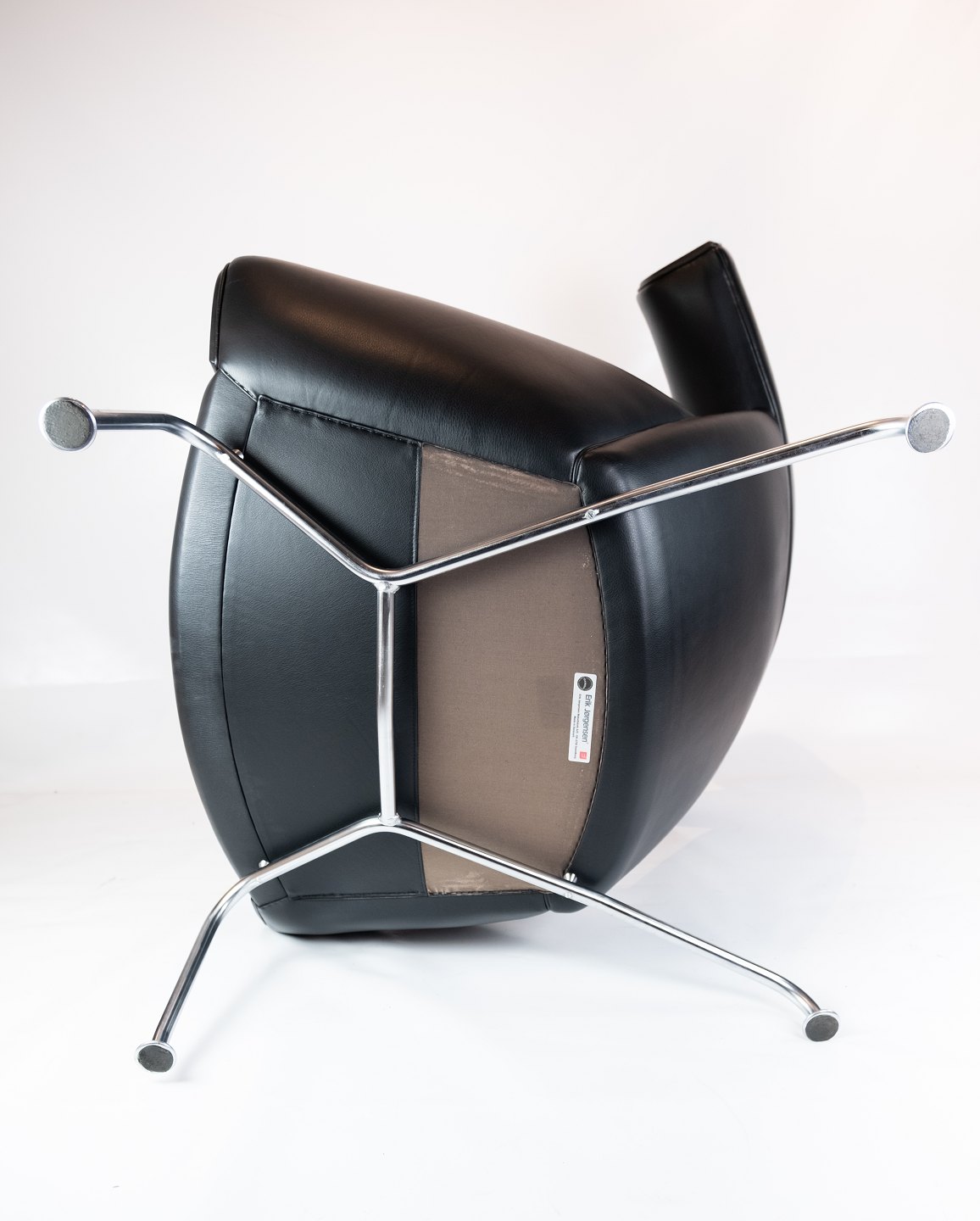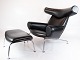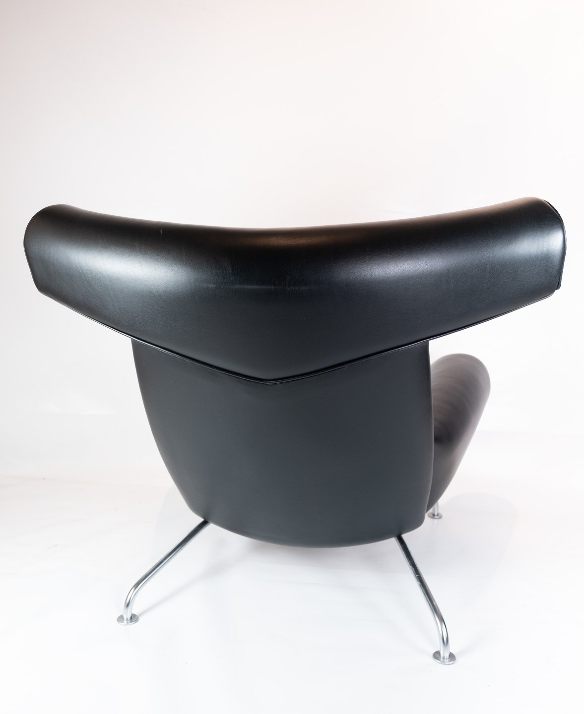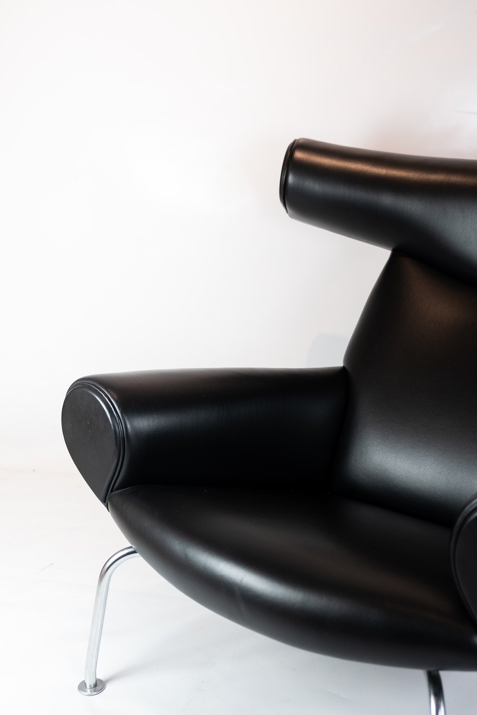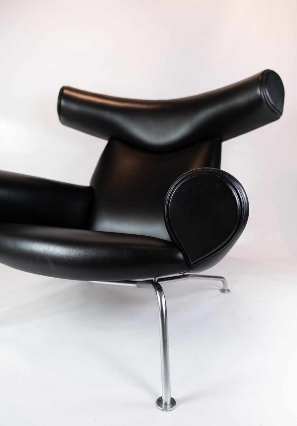 SoldThe Ox Chair, model EJ 100 upholstered in Black leather, designed by Hans J. Wegner in the 1960s and manufactured at Erik Jørgensen furniture factory. The chair is in great used condition.