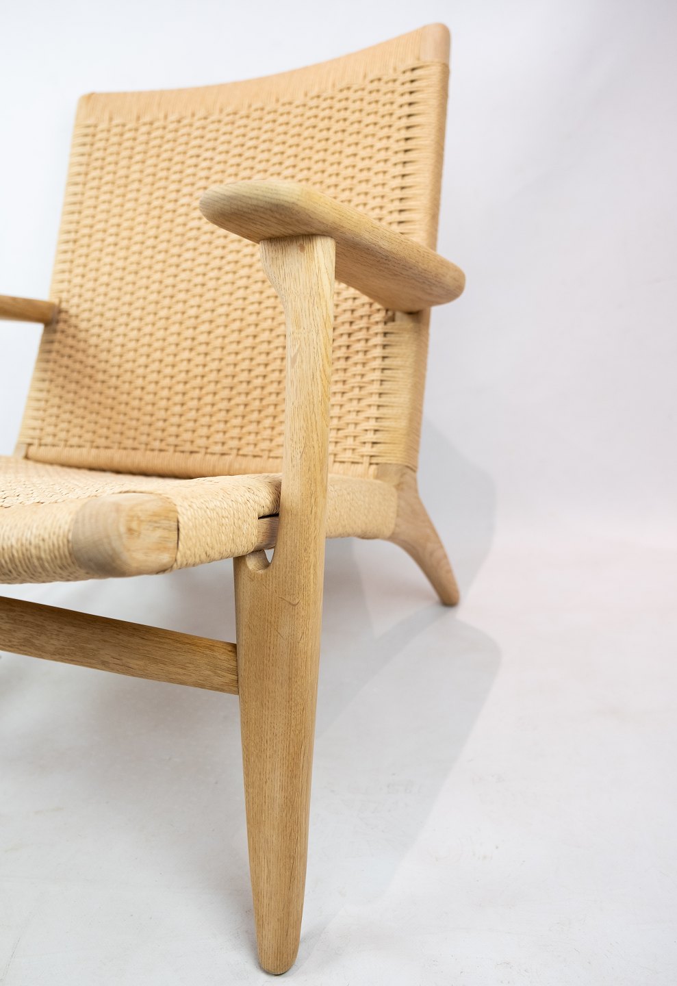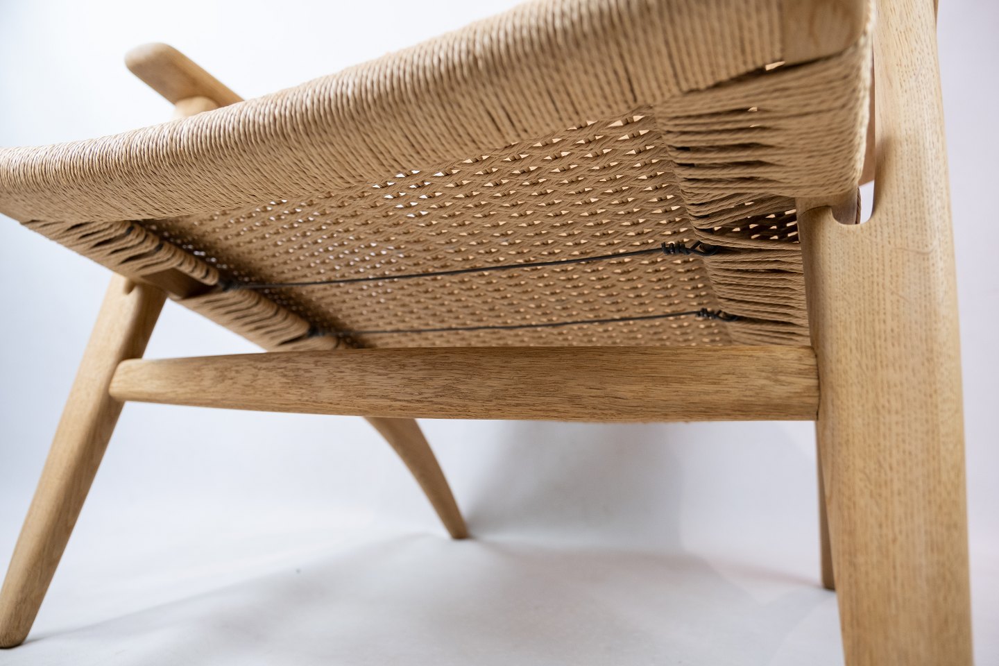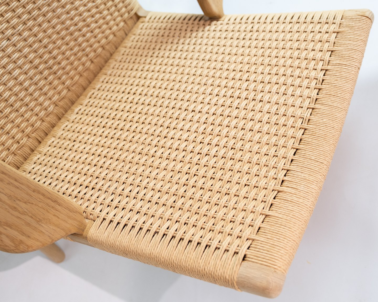 The chair's frame is made of solid oak, which gives it both strength and natural beauty. The paper braid that covers the seat and backrest adds an organic texture and artisanal expression that is characteristic of Wegner's designs.