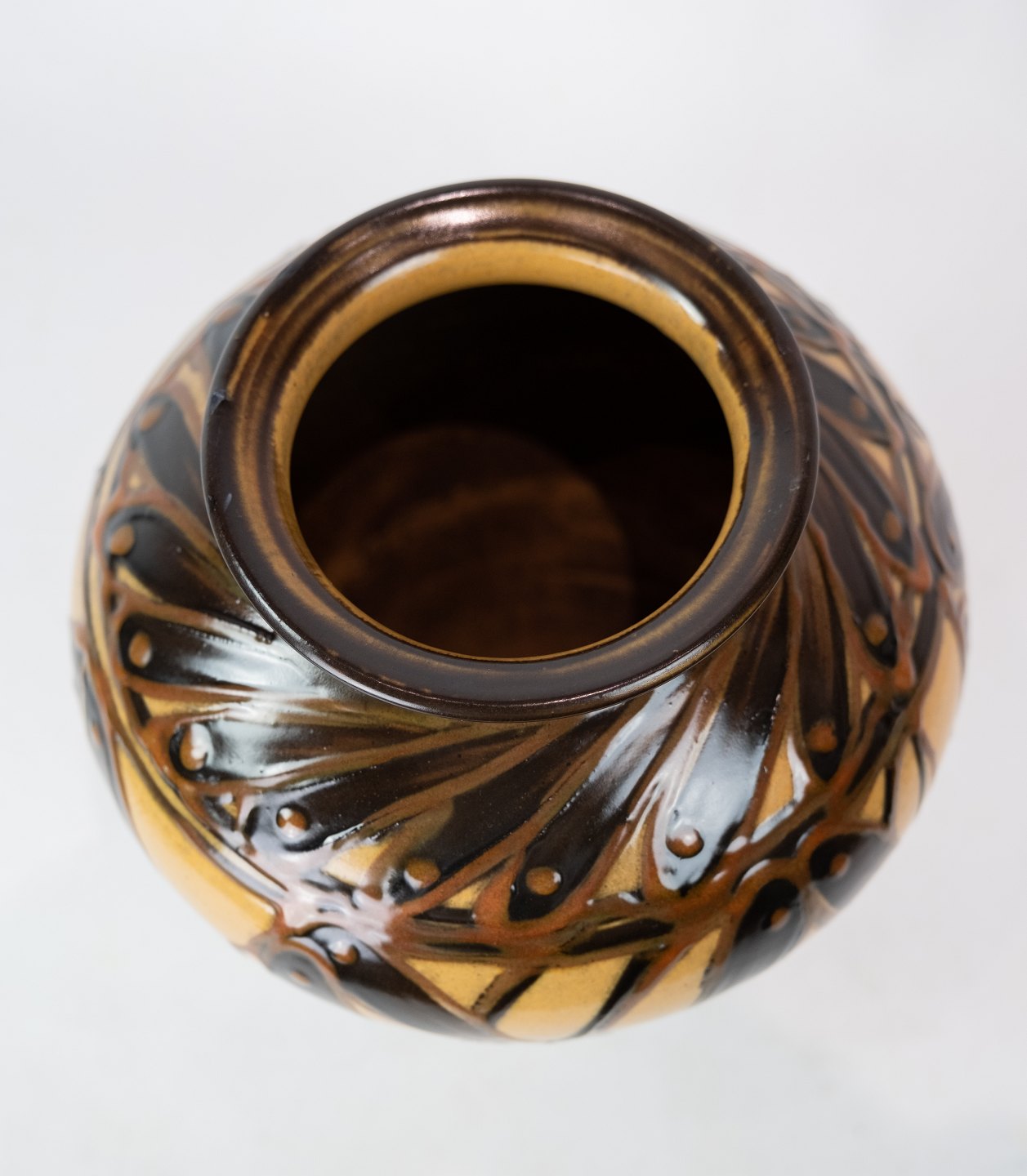 Ceramic vase in brown glaze and pattern by Herman A. Kähler. The vase is in great vintage condition.