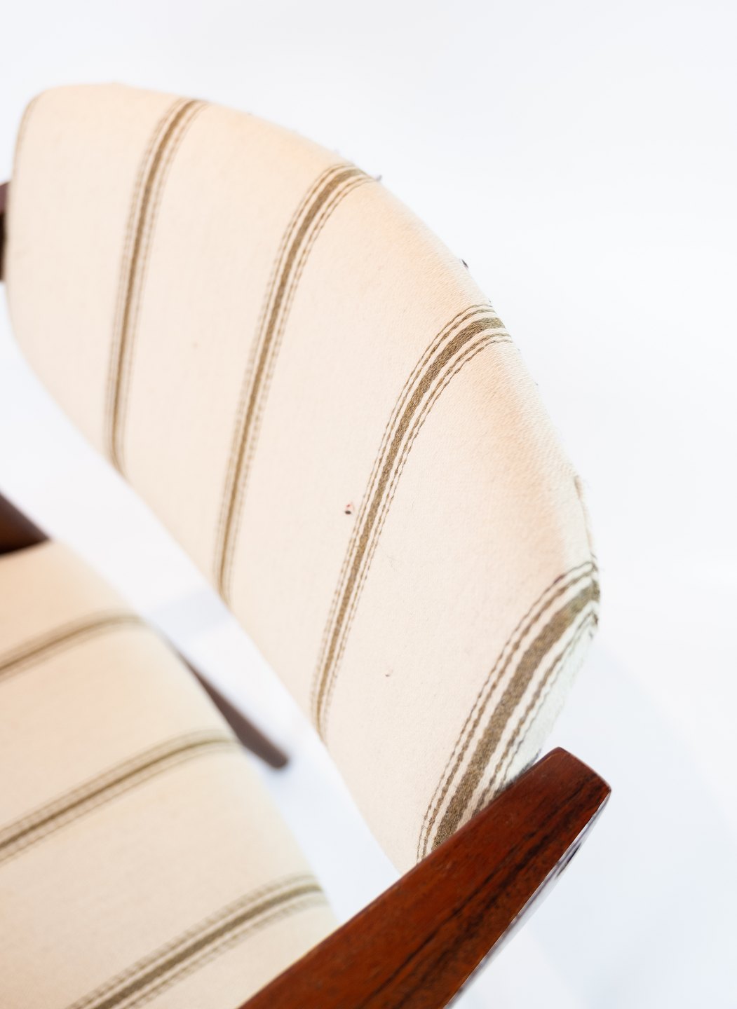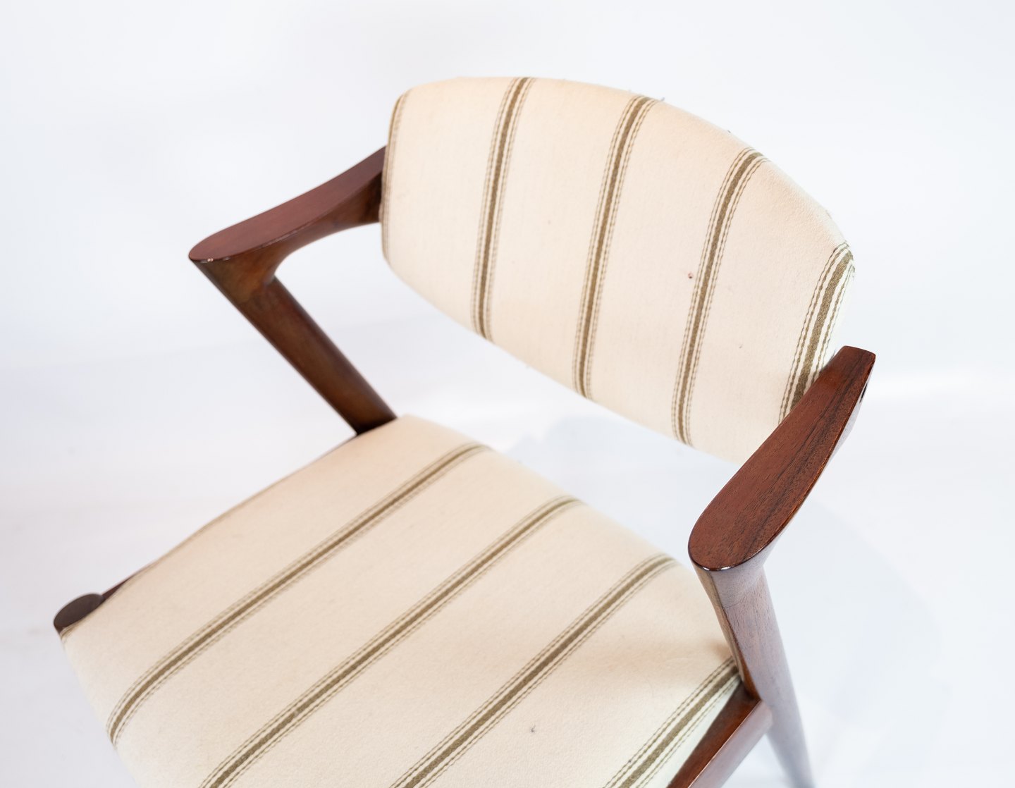 SoldA set of 6 dining chairs, model 42, designed by Kai Kristiansen and manufactured by Schou Andersen in the 1960s. The chairs are of rosewood and upholstered in light wool fabric.