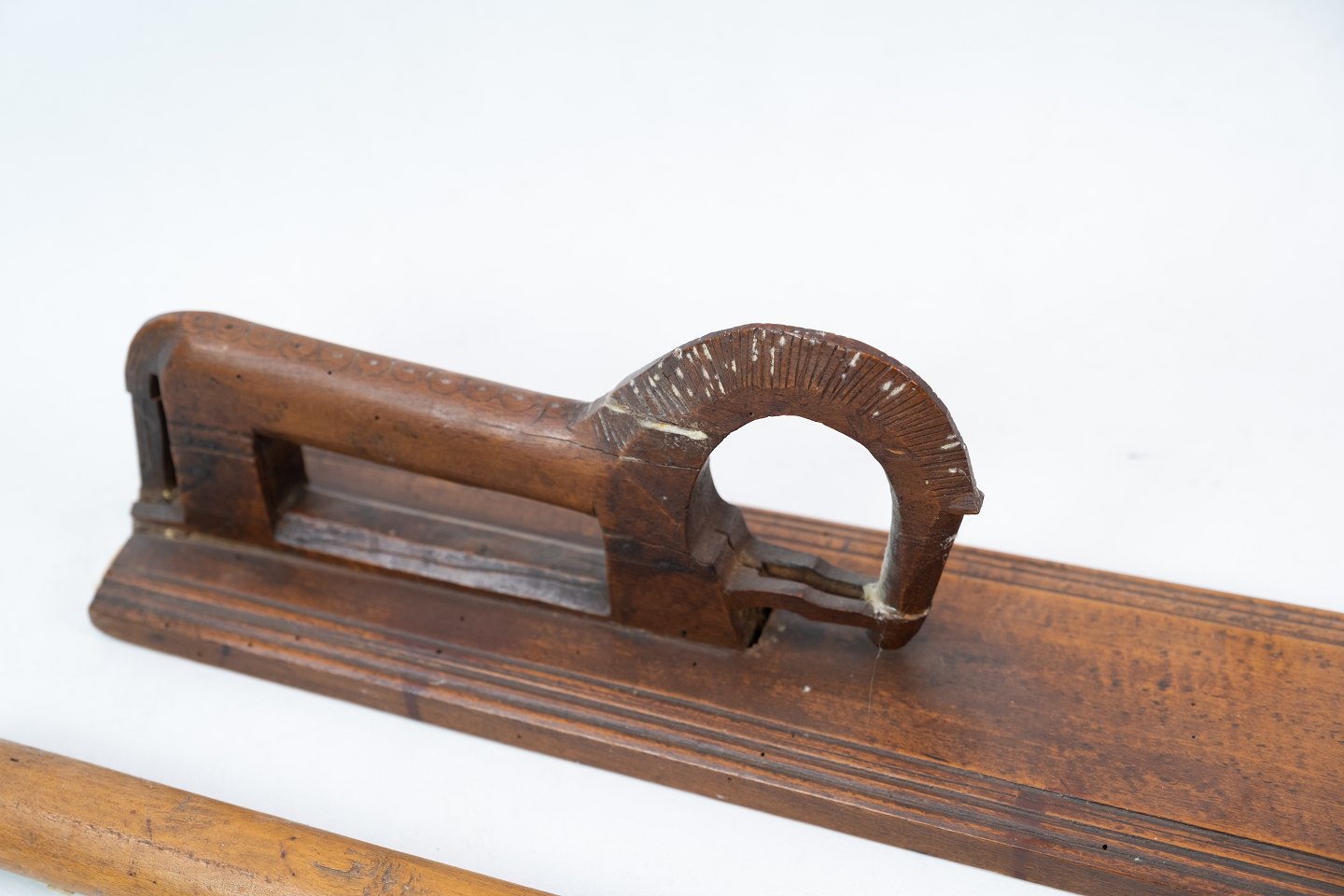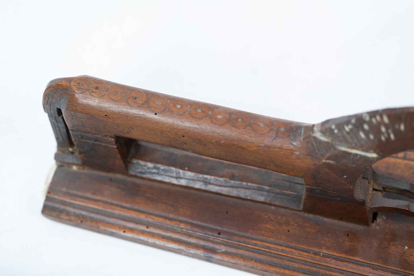 Beautifully decorated antique board with handle in the shape of a horse in dark wood from the 1890s.