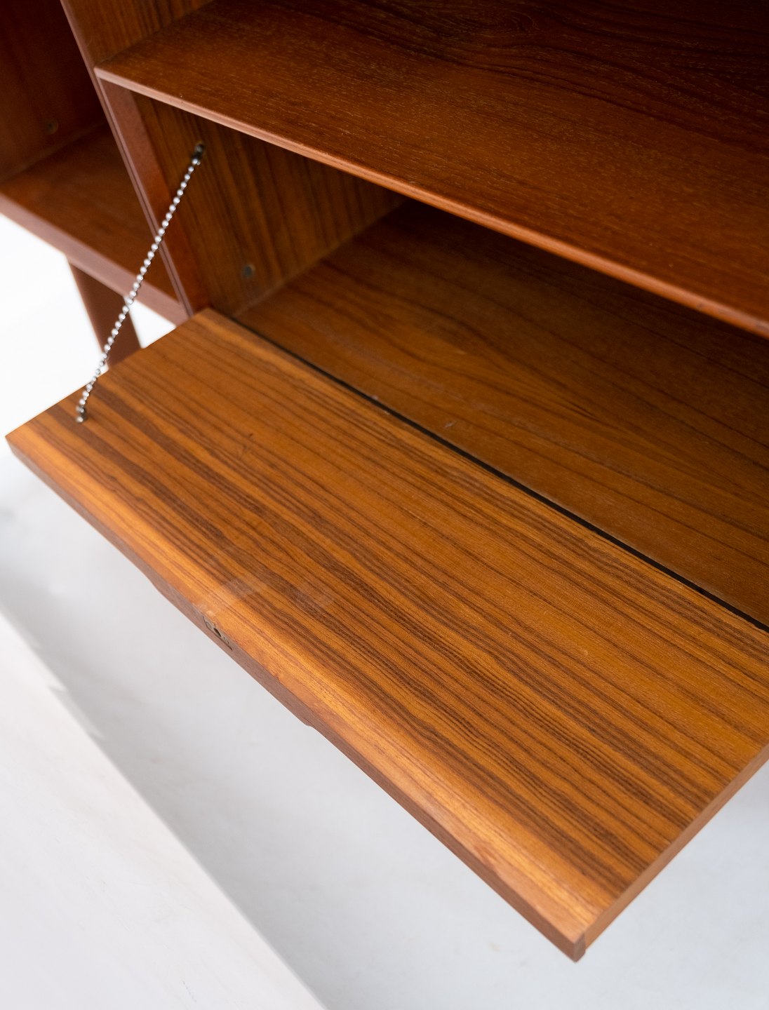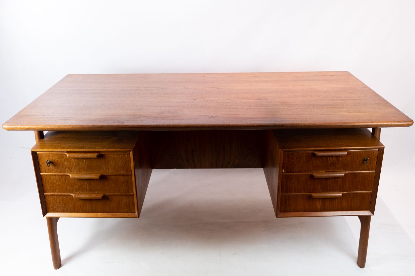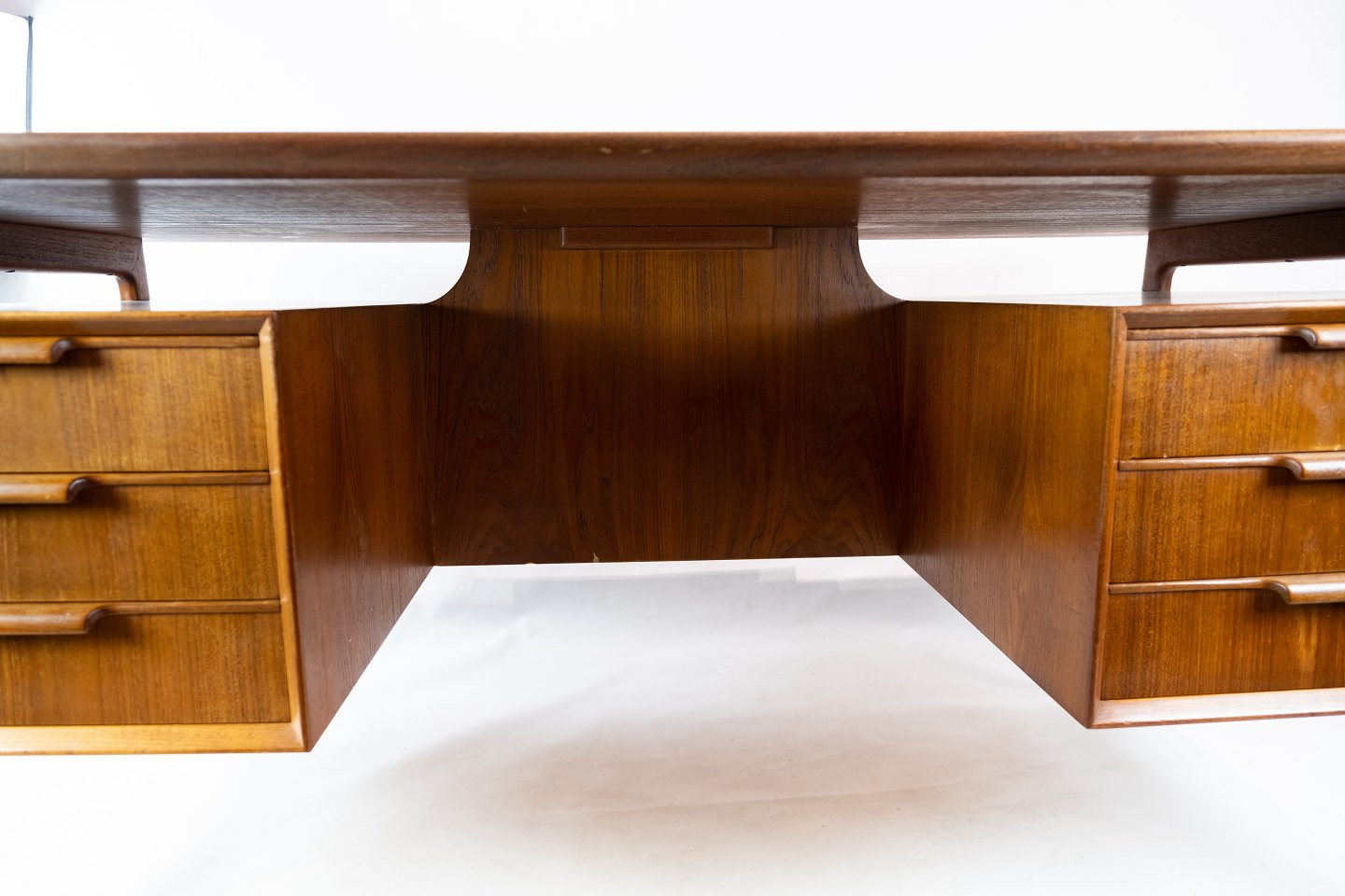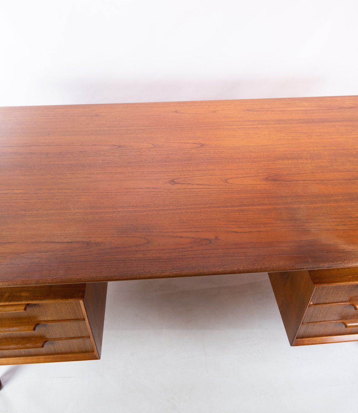 Skrivebordet i teak, designet af Omann Junior i 1960'erne, er et smukt eksempel på dansk møbeldesign fra denne periode.