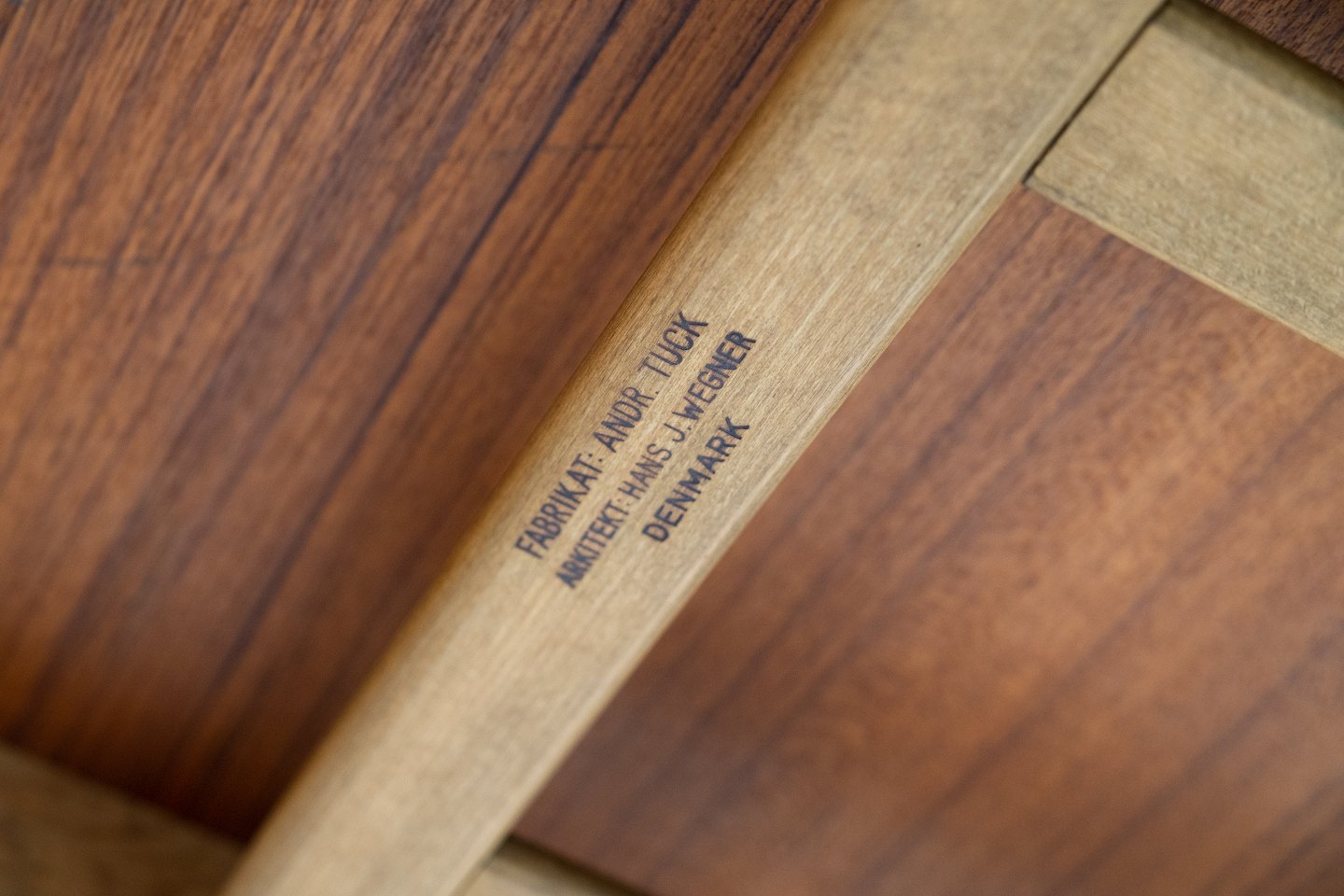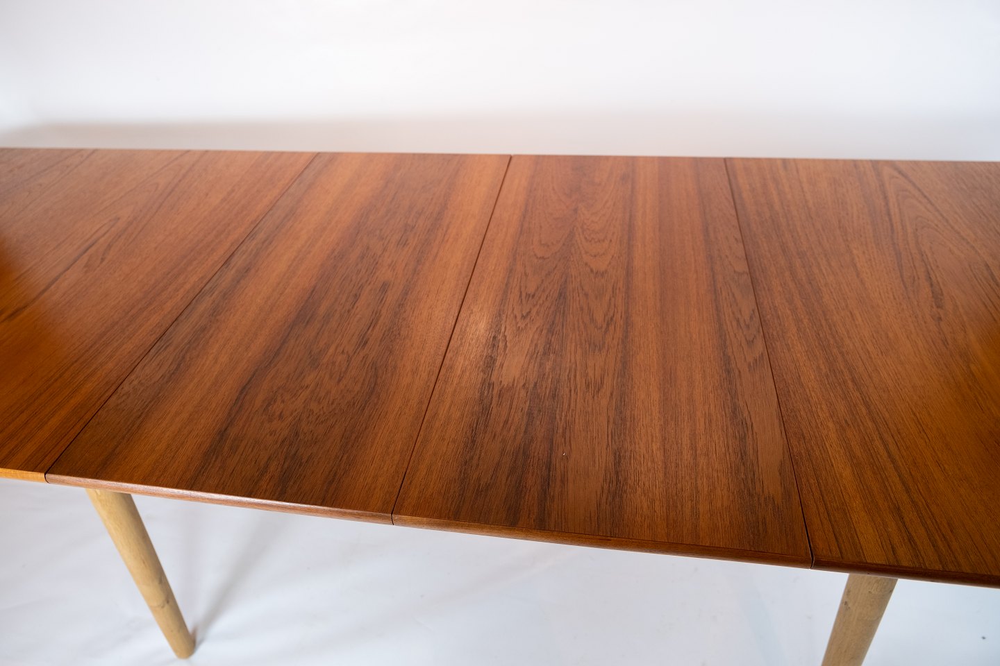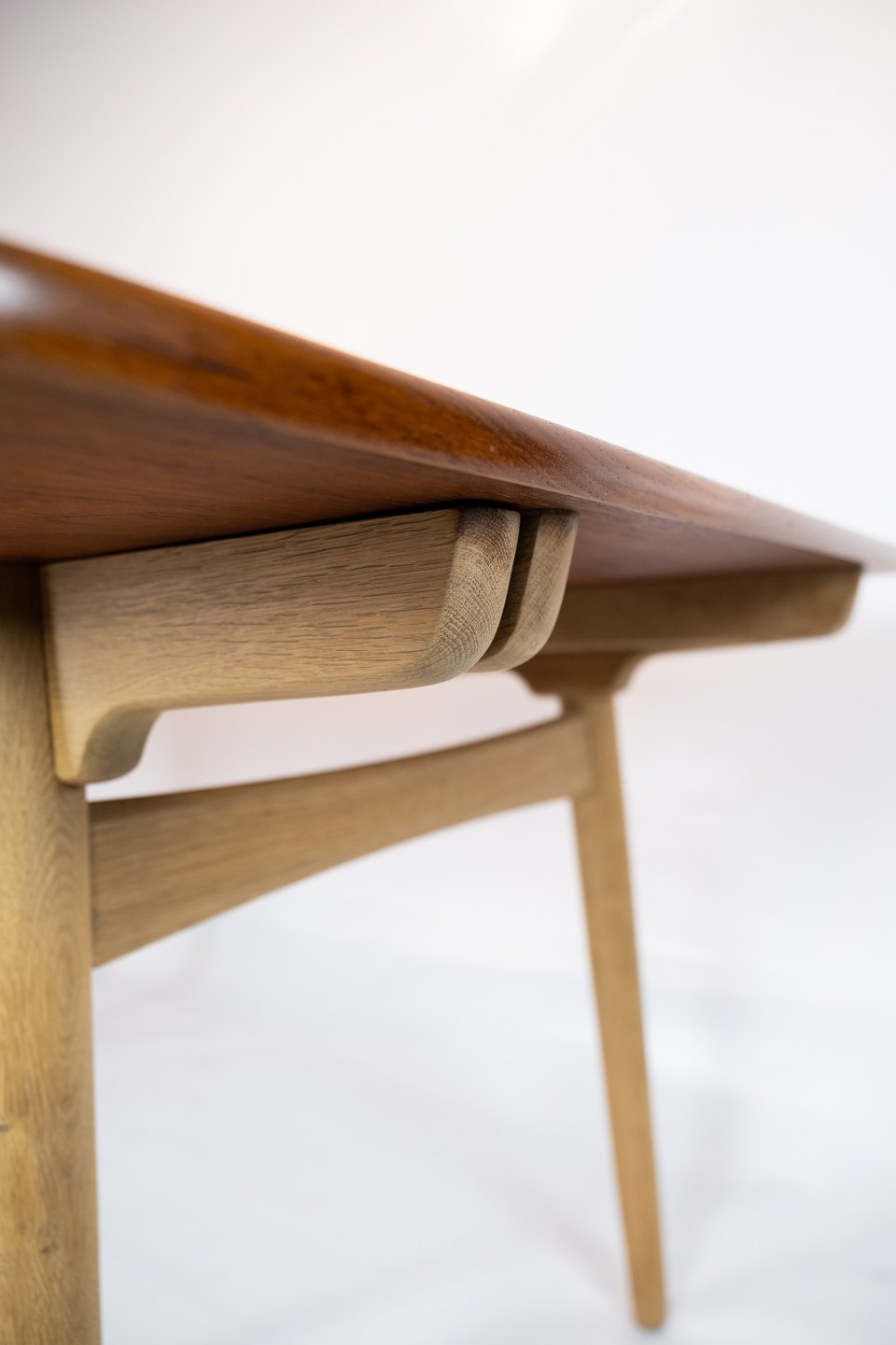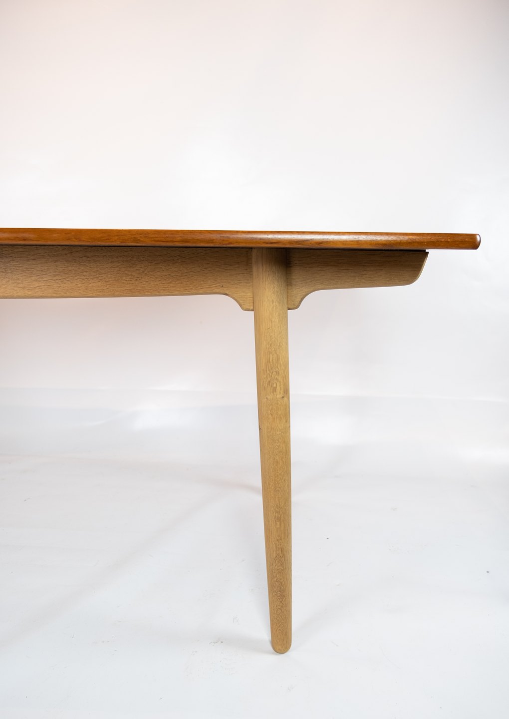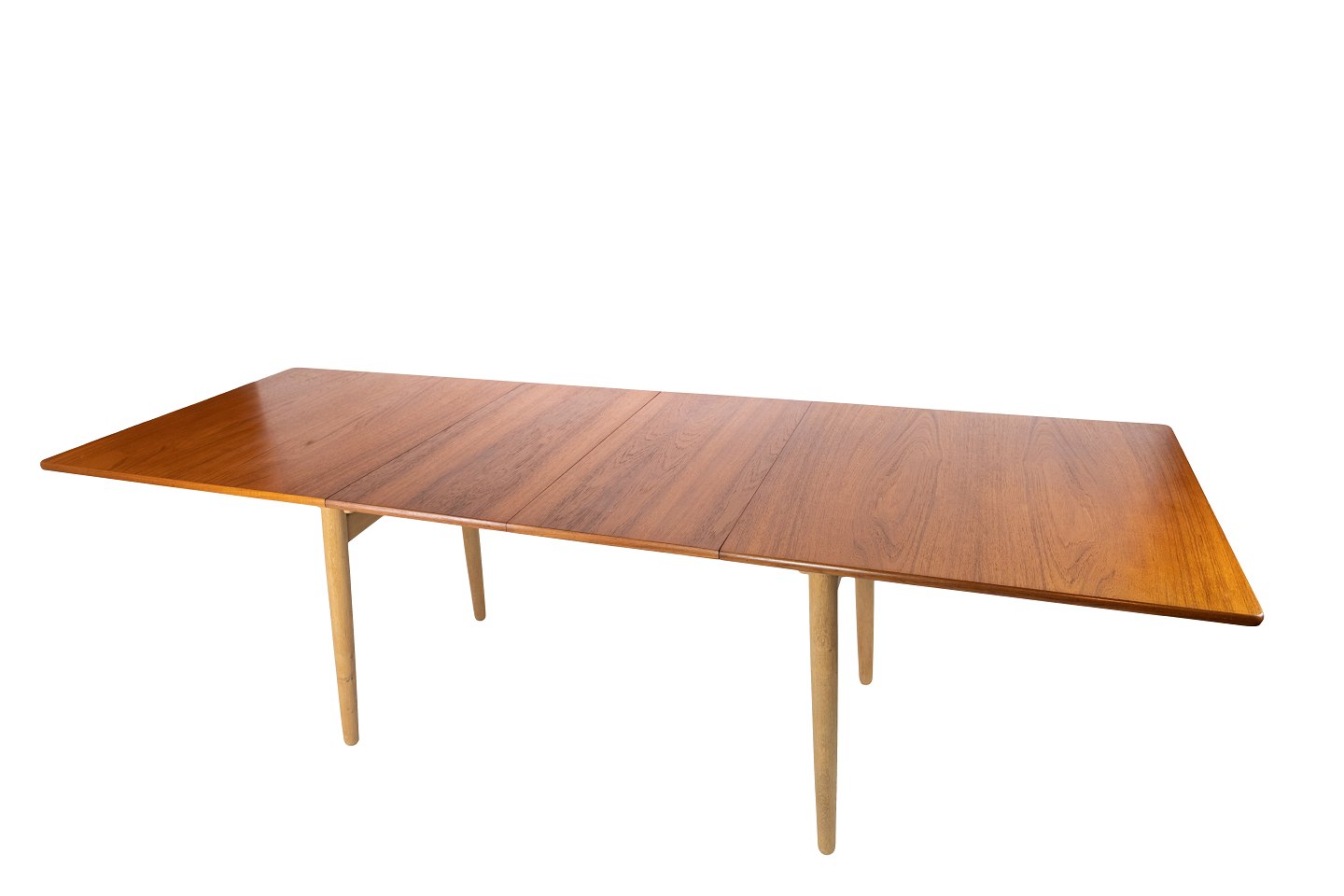 SoldDining table in teak and oak with extensions designed by Hans J. Wegner and manufactured by Andreas Tuck. The table is in great vintage condition.