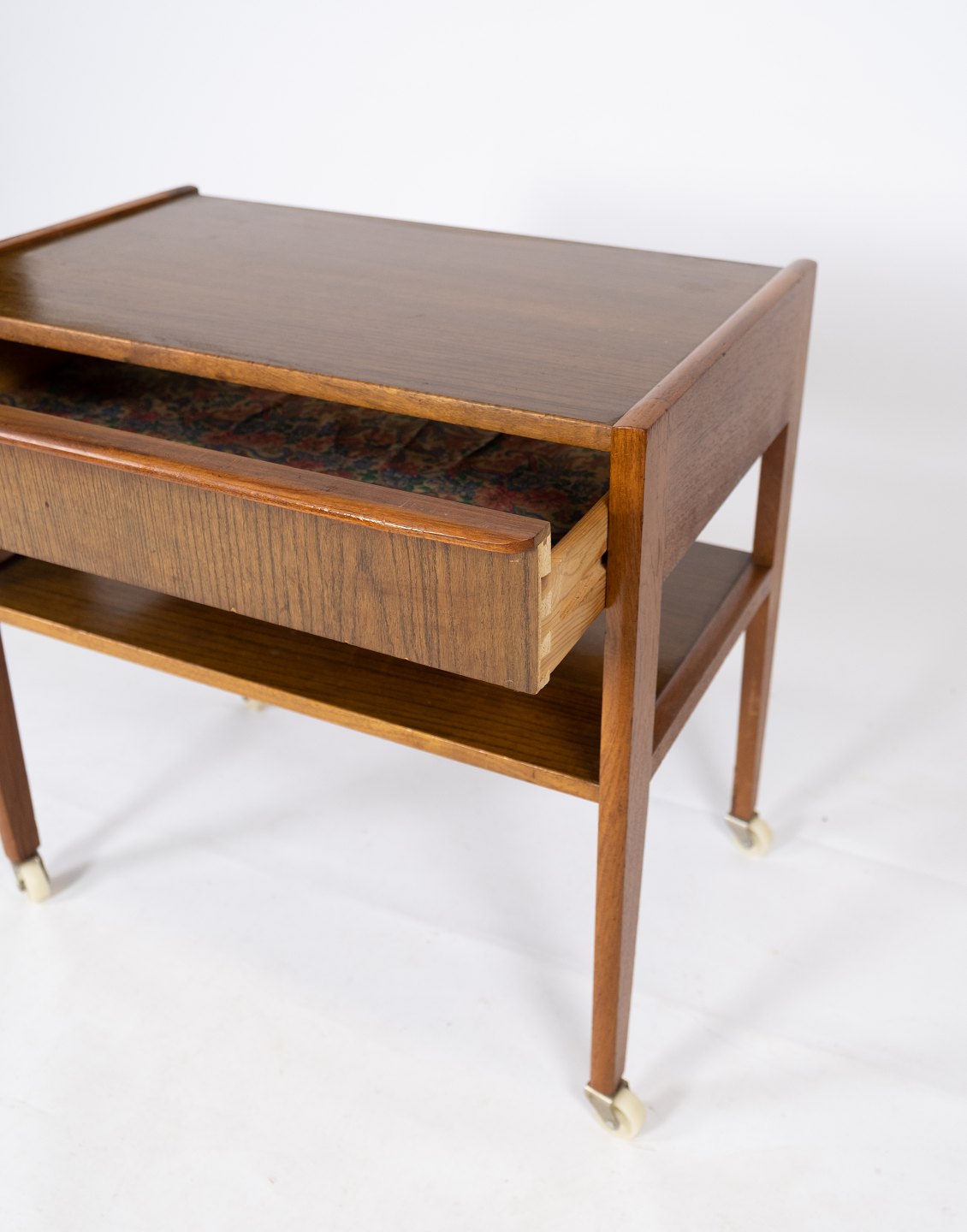 Lille sidebord med skuffe i teak af dansk design fra 1960erne.