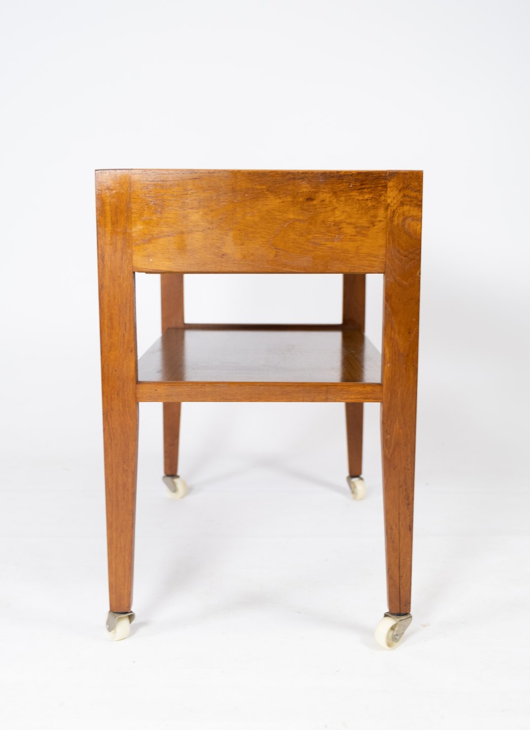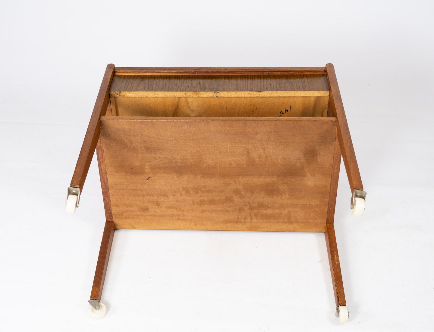 Lille sidebord med skuffe i teak af dansk design fra 1960erne. Kommoden er i flot brugt stand.