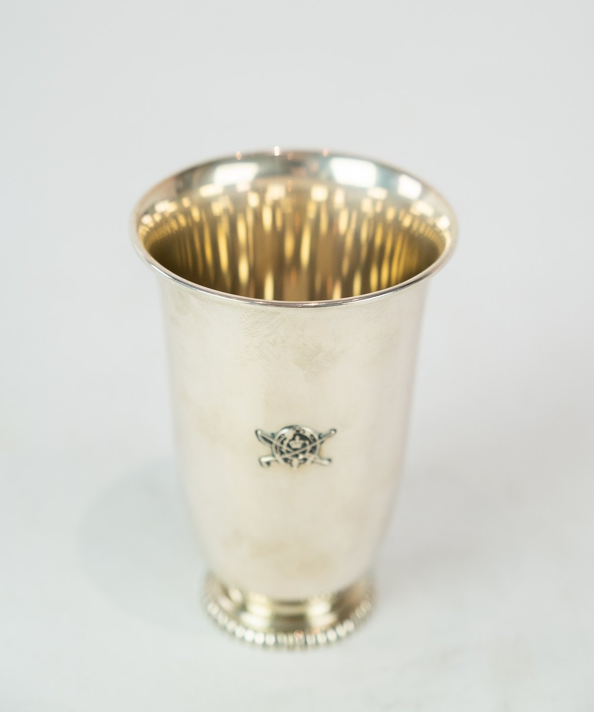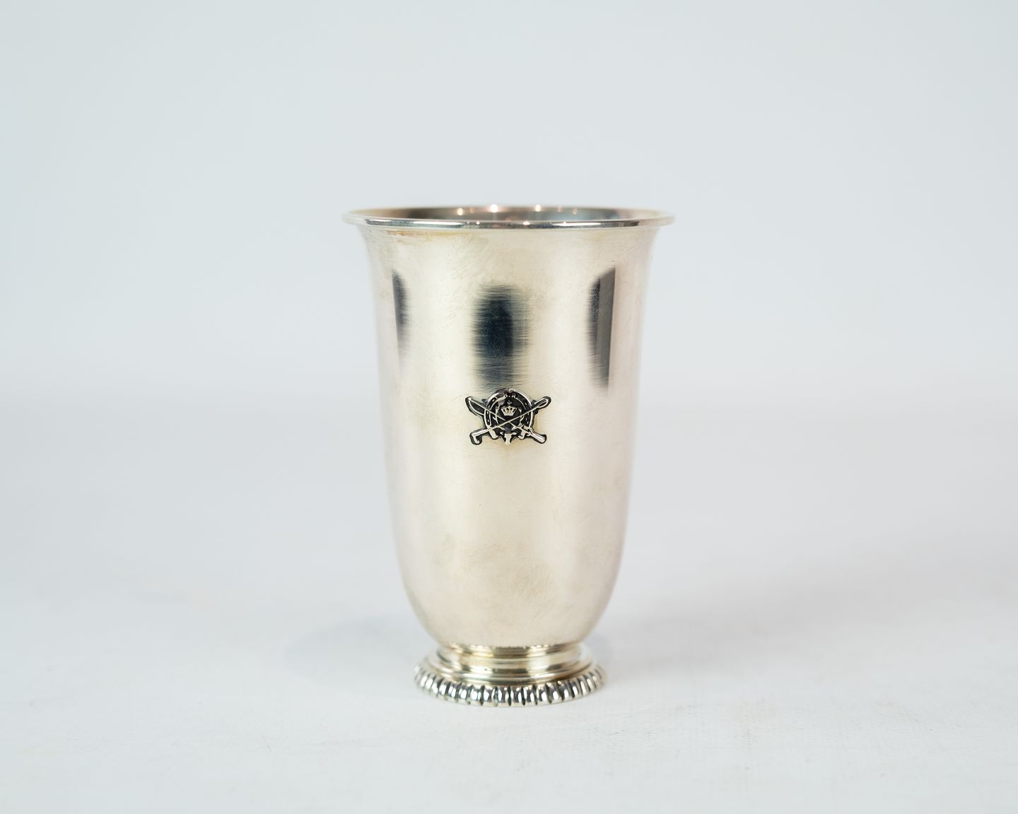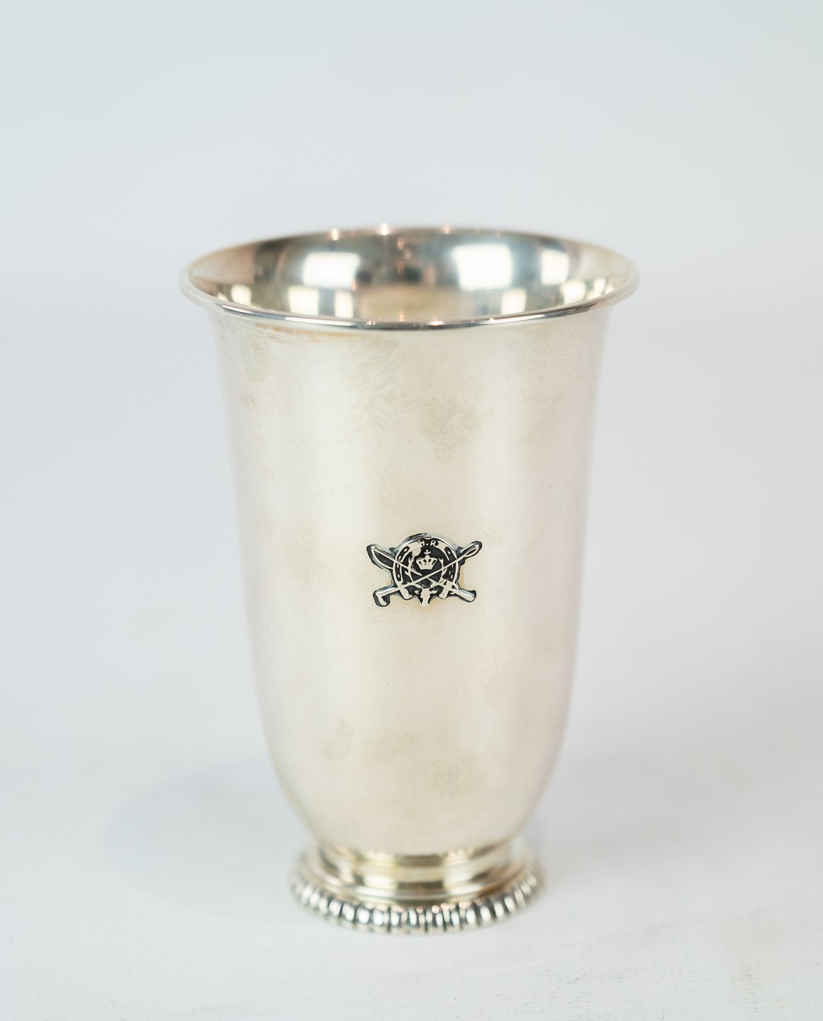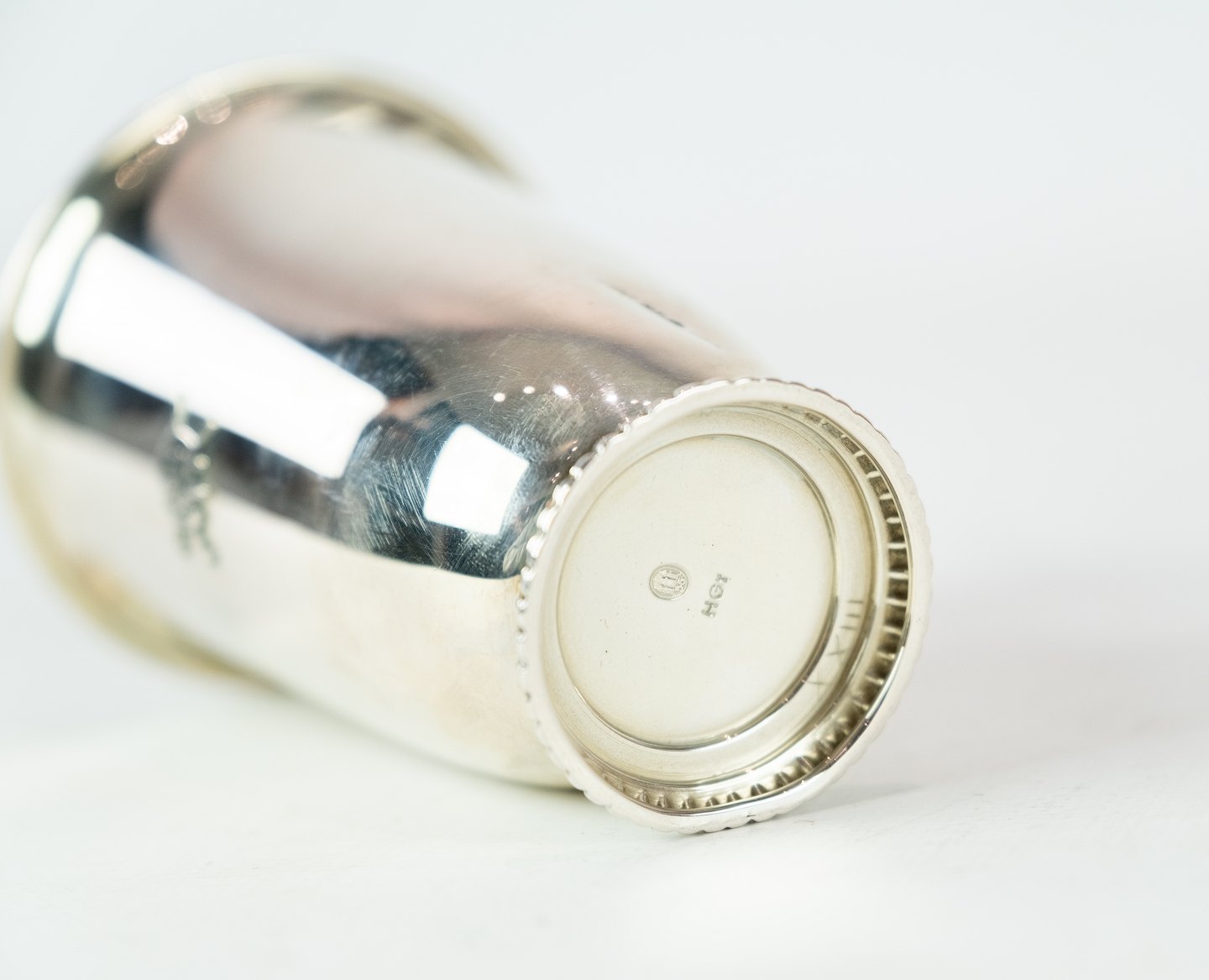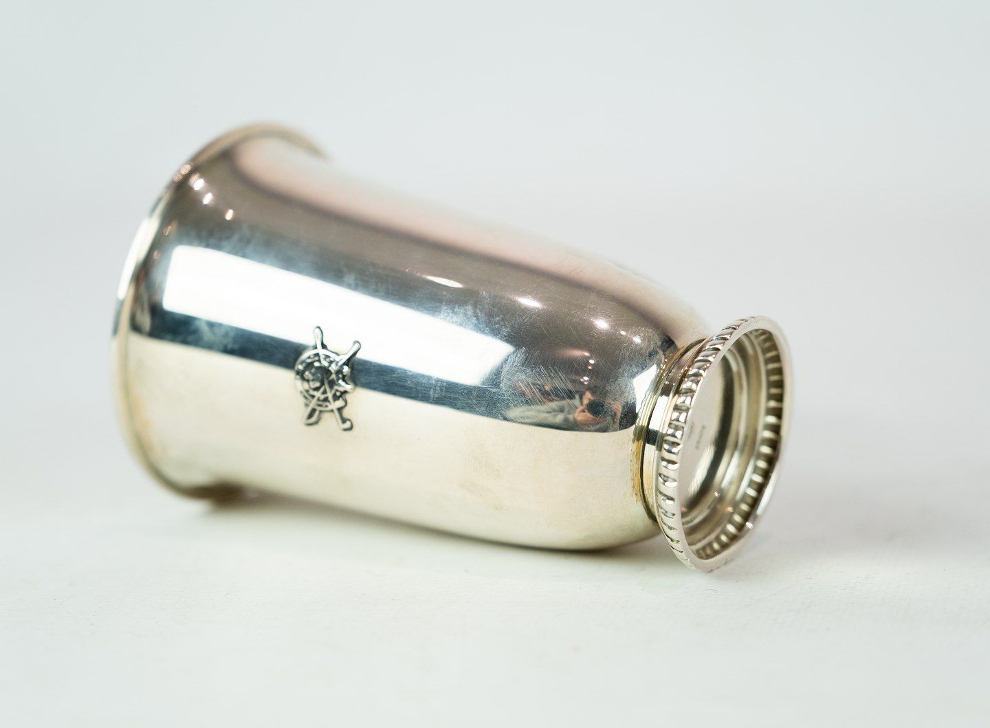 Vase decorated with a horse shoe and of hallmarked silver.