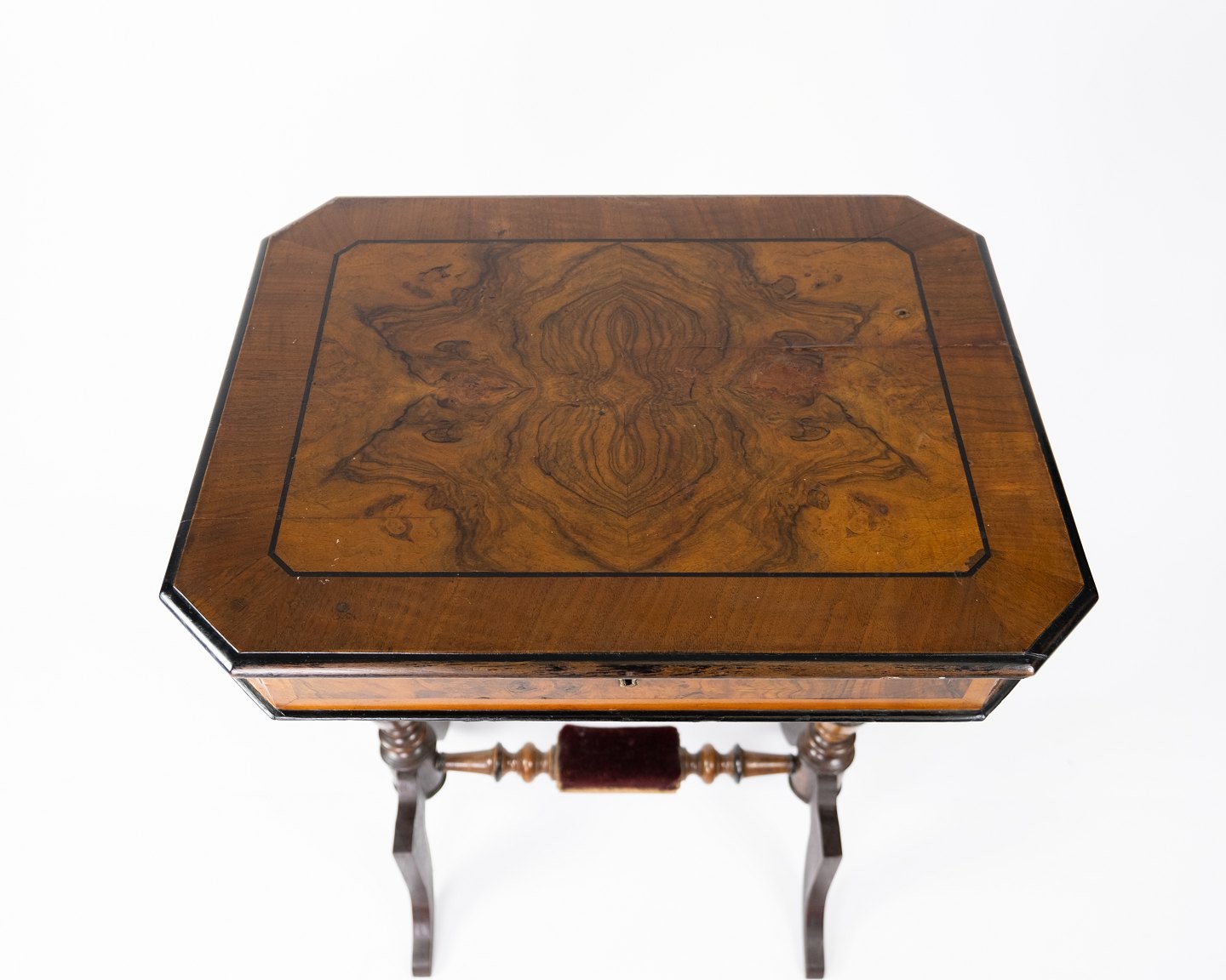 Sewing table of walnut, in great antique condition from the 1860s.