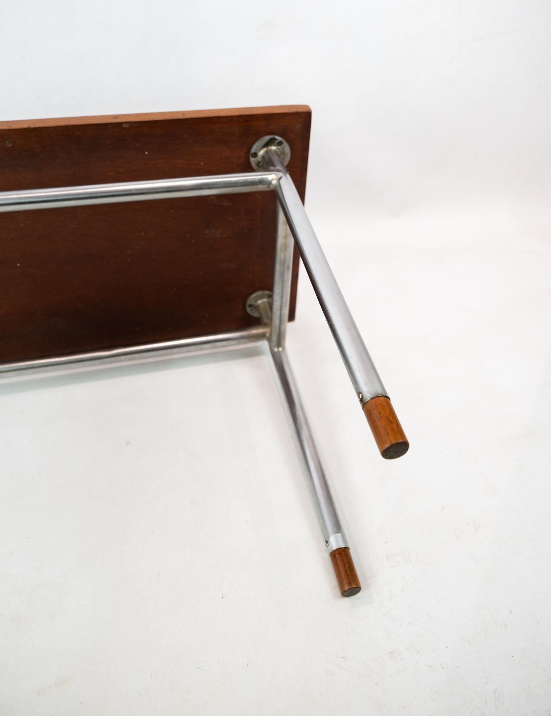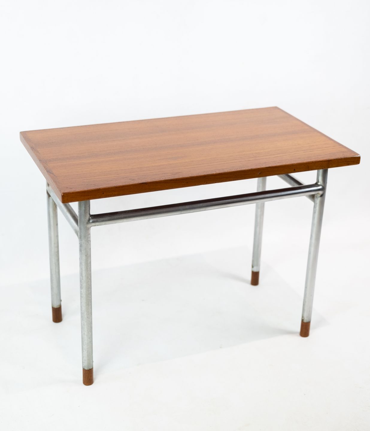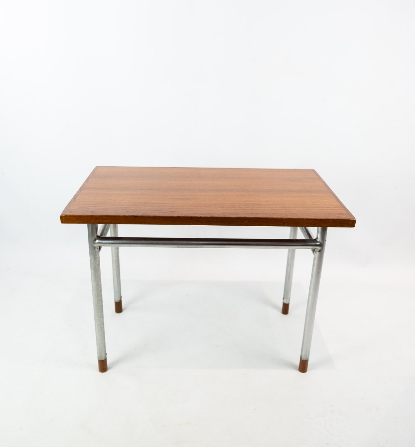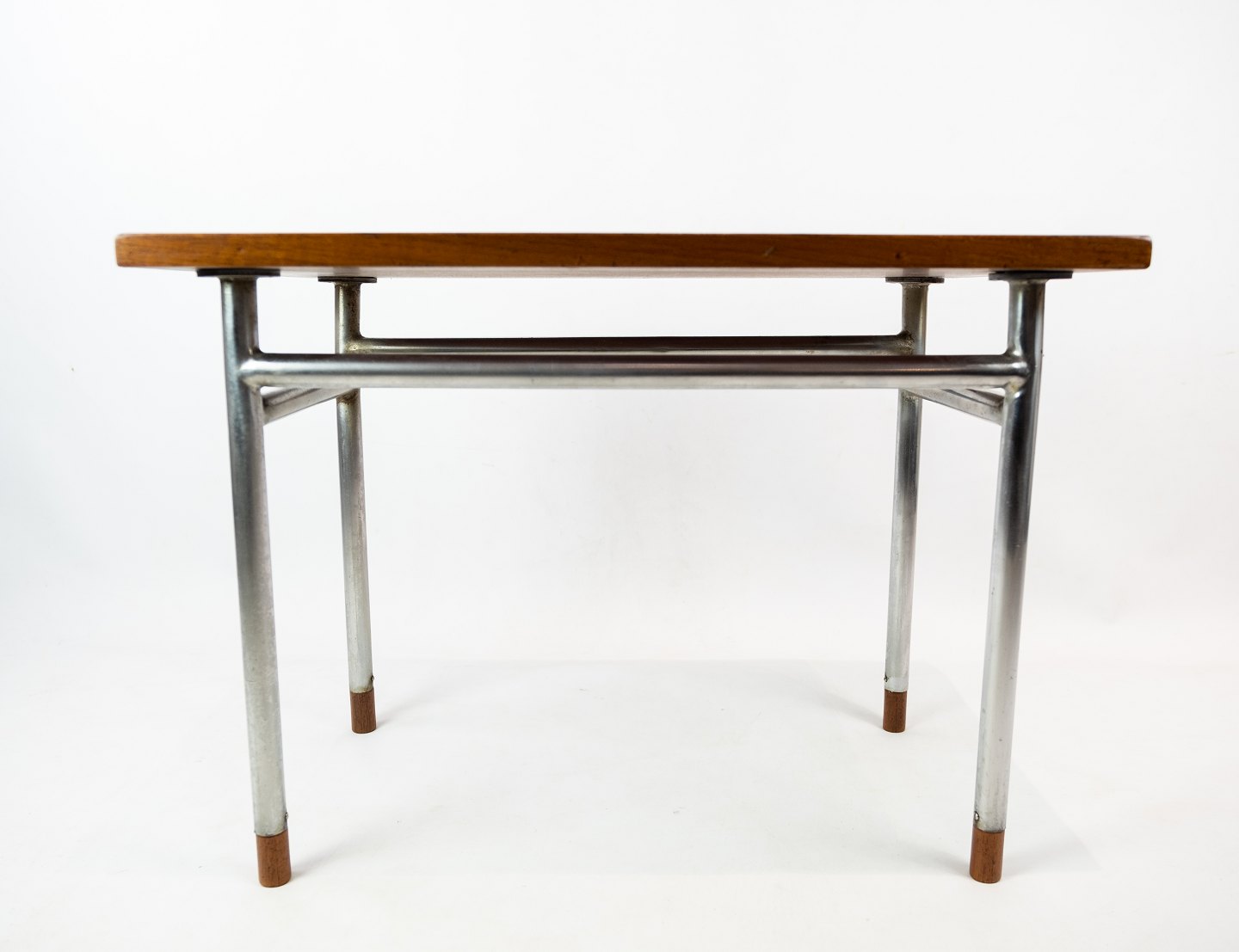 Coffee table in teak and legs in metal, designed by Hans J. Wegner and manufactured by Ry Furniture from the 1960s. The table is in great vintage condition.