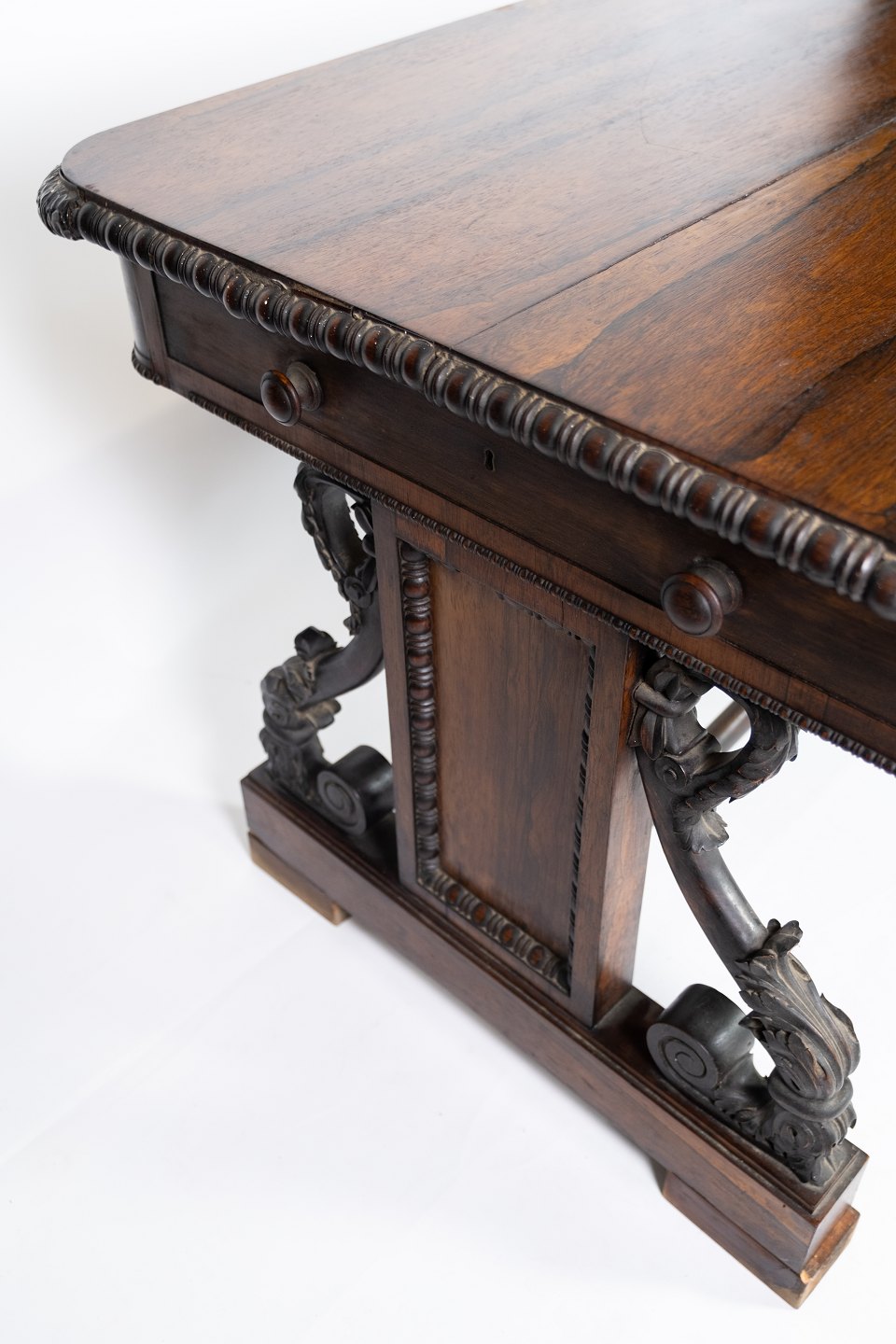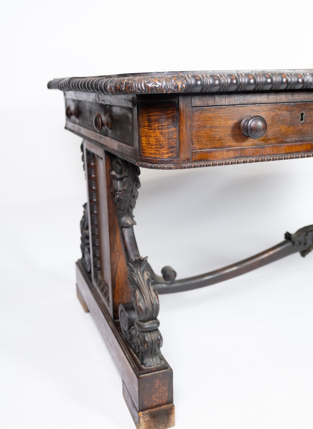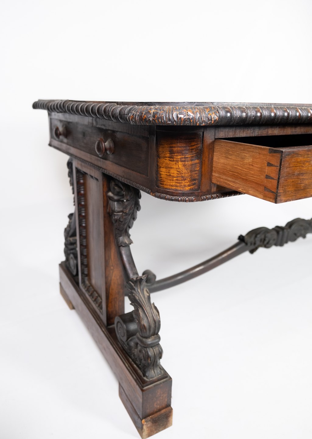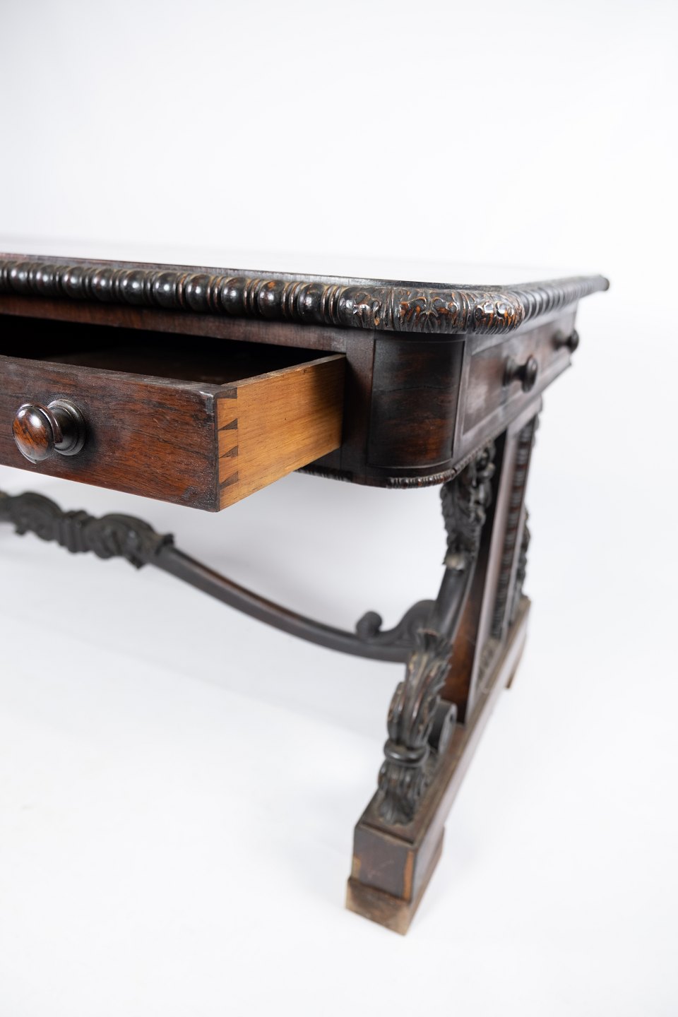 SoldAntique desk of rosewood with carvings and in great antique condition from the 1840s.