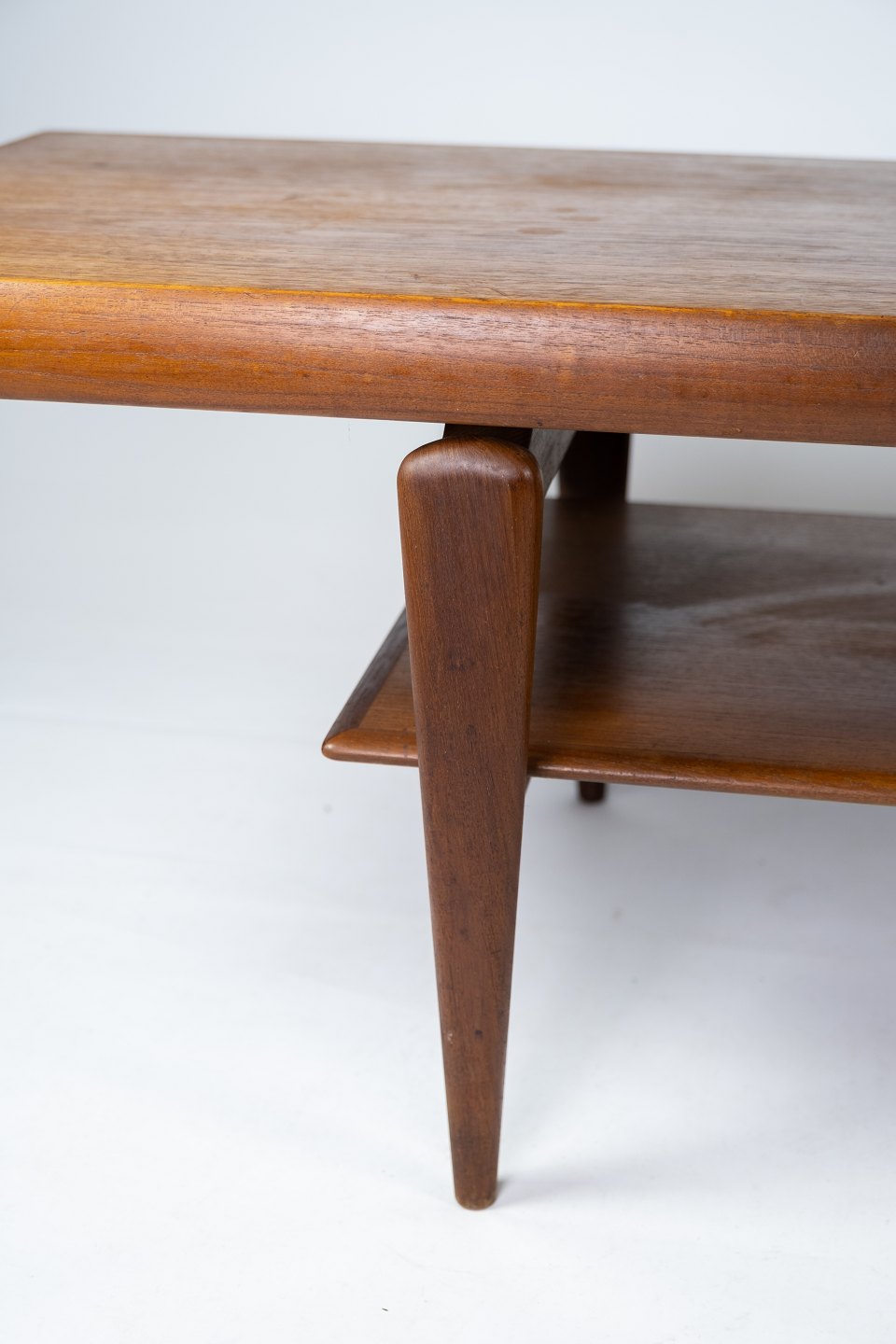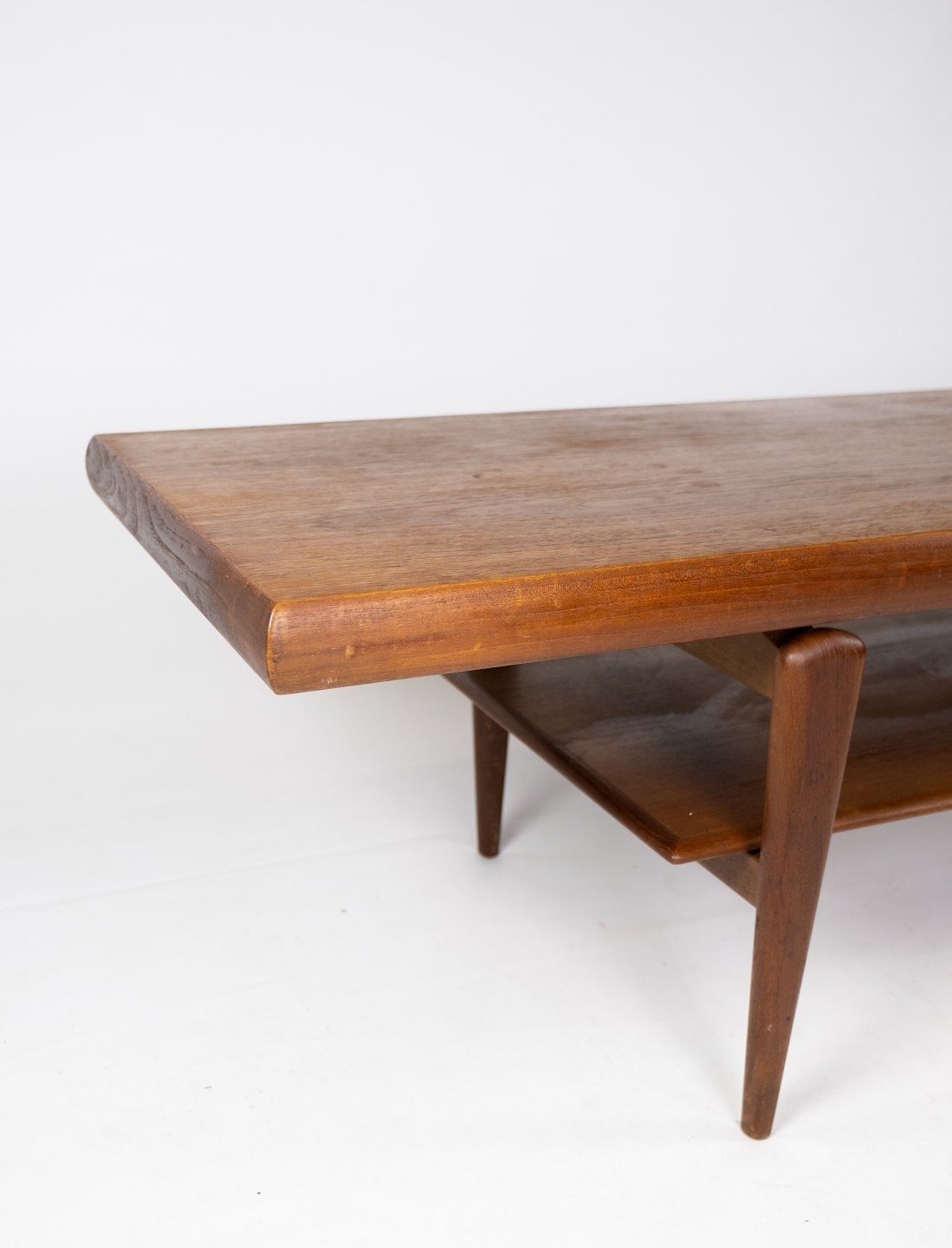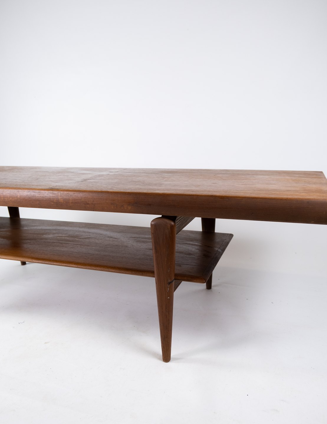 Sofabord i teak af dansk design fra 1960erne. Bordet er i flot brugt stand.