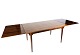 Dette spisebord i palisander, designet af Arne Vodder i 1960'erne, er et smukt eksempel på dansk møbelkunst fra midten af det 20. århundrede. Palisandertræet giver bordet en varm og naturlig glød, mens det hollandske udtræk tilføjer praktisk funktionalitet.