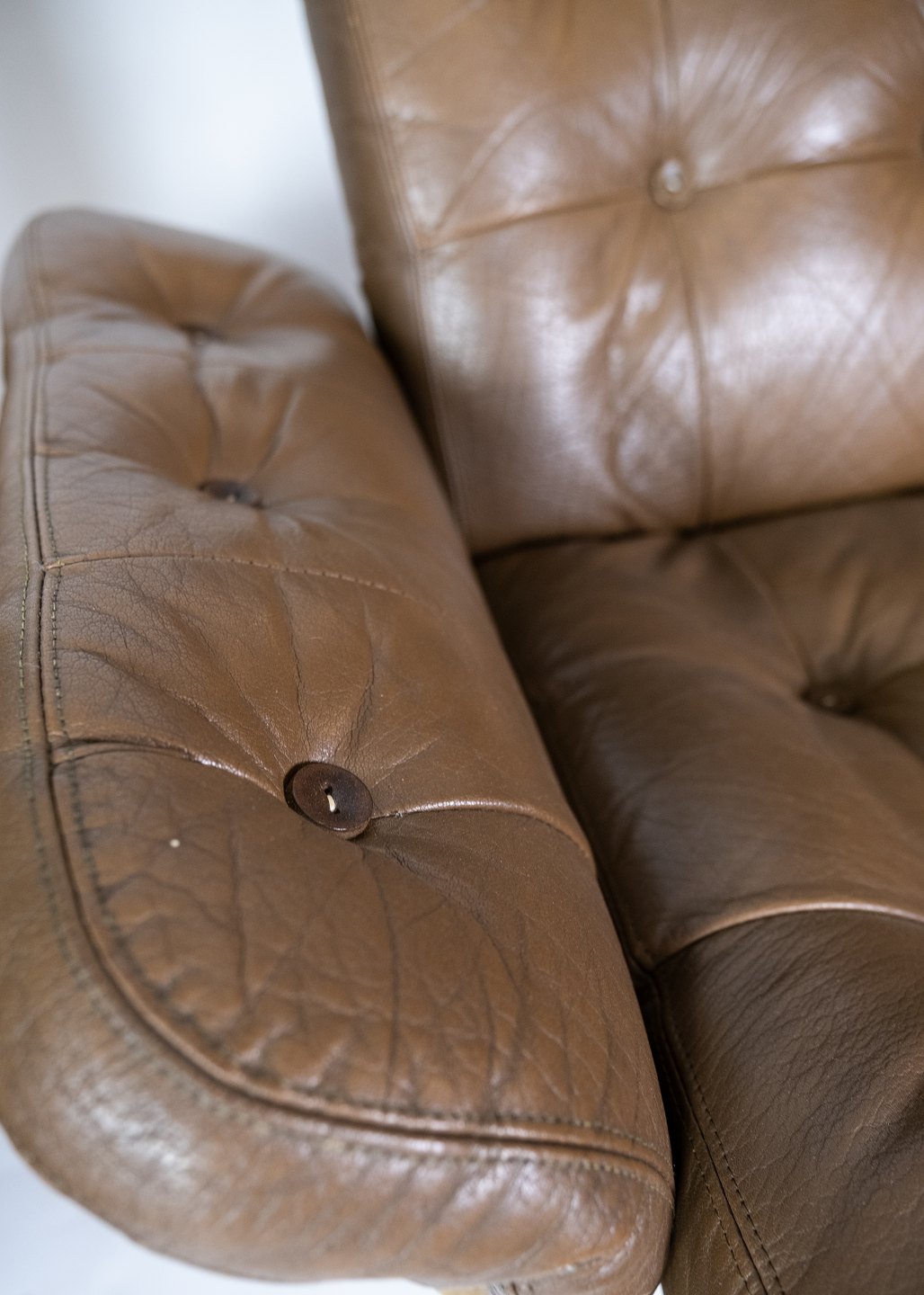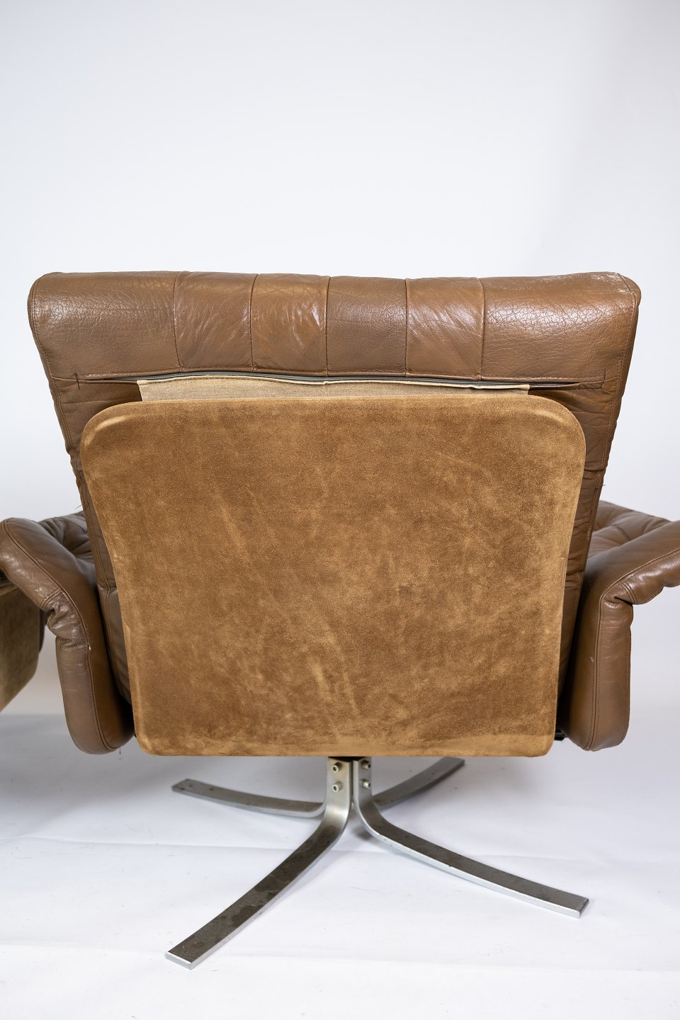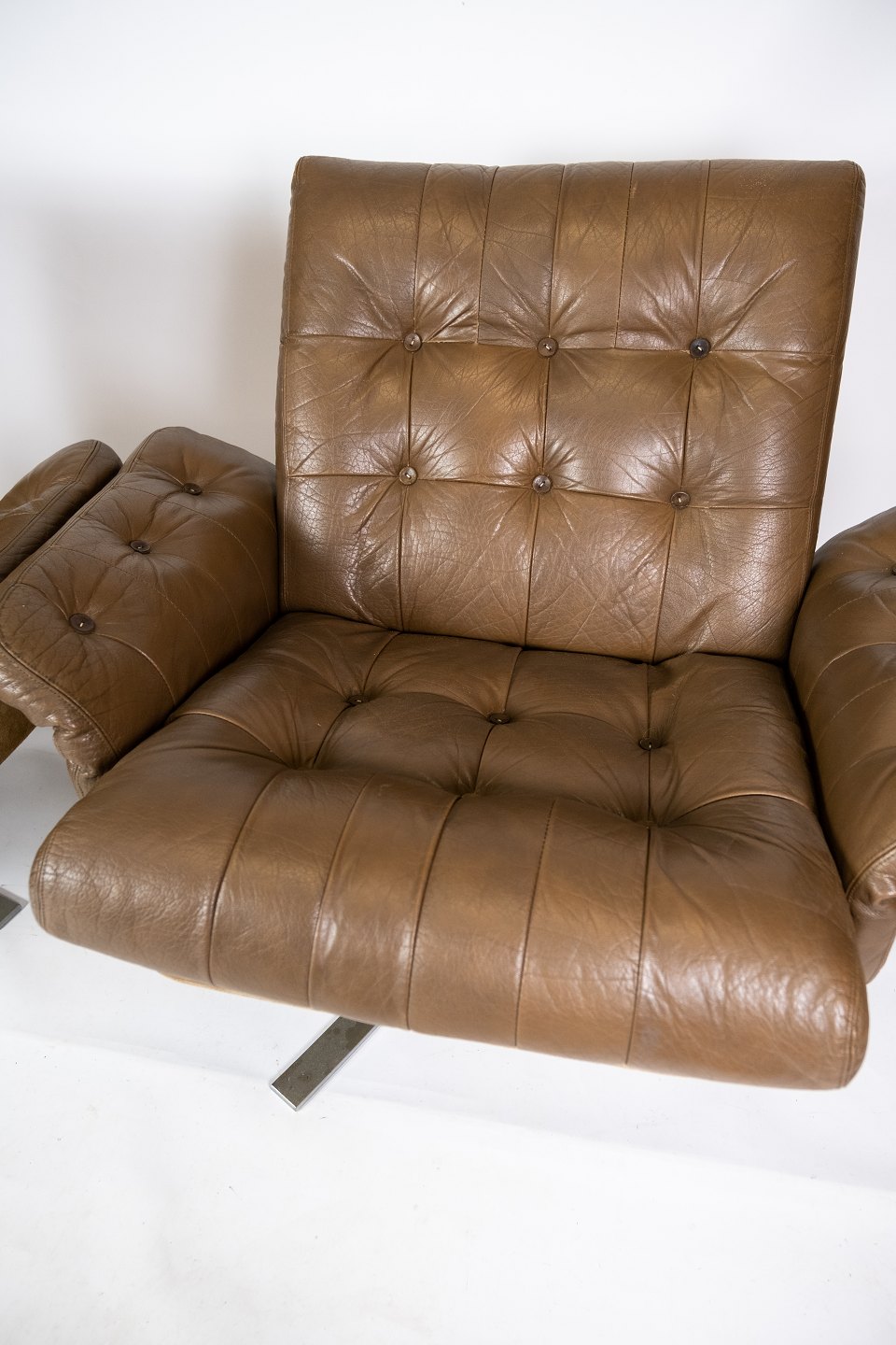 SoldSet of armchairs upholstered with brown leather and frame in metal of danish design from the 1970s. The chairs are in great vintage condition.