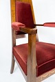 Set of two armchairs of walnut with inlaid wood and upholstered with red velvet from around 1910.