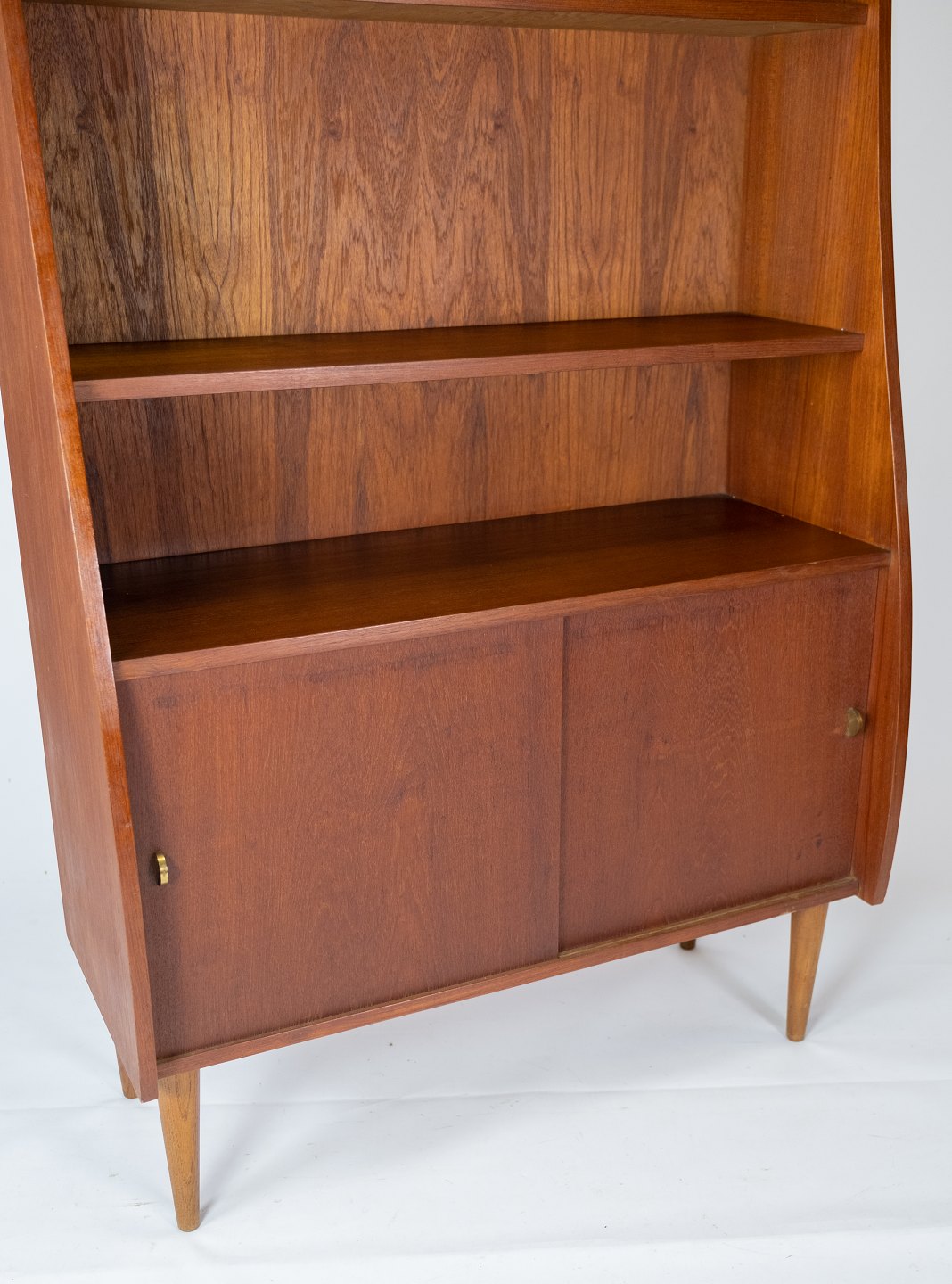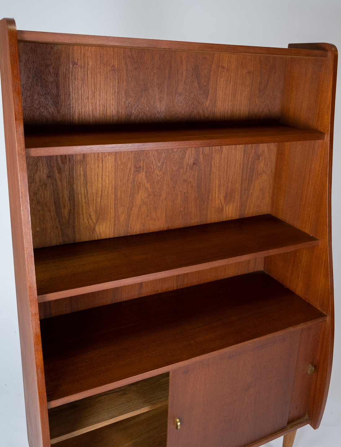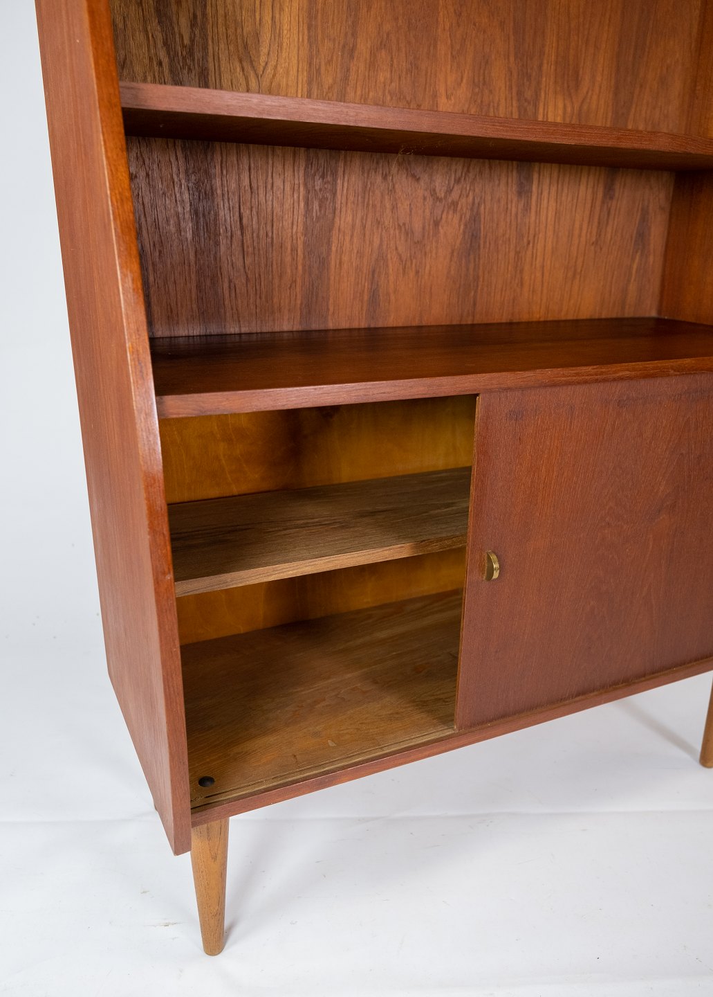 This bookcase represents the timeless elegance and functionality that characterizes Danish furniture design from this era. The teak wood adds warmth and character to the room and creates a cozy atmosphere. The nice used condition gives the bookcase a unique patina and history that only adds to its charm and appeal. With its practical storage space and beautiful appearance, this bookcase will make an impressive and functional addition to any mid-20th century decor.