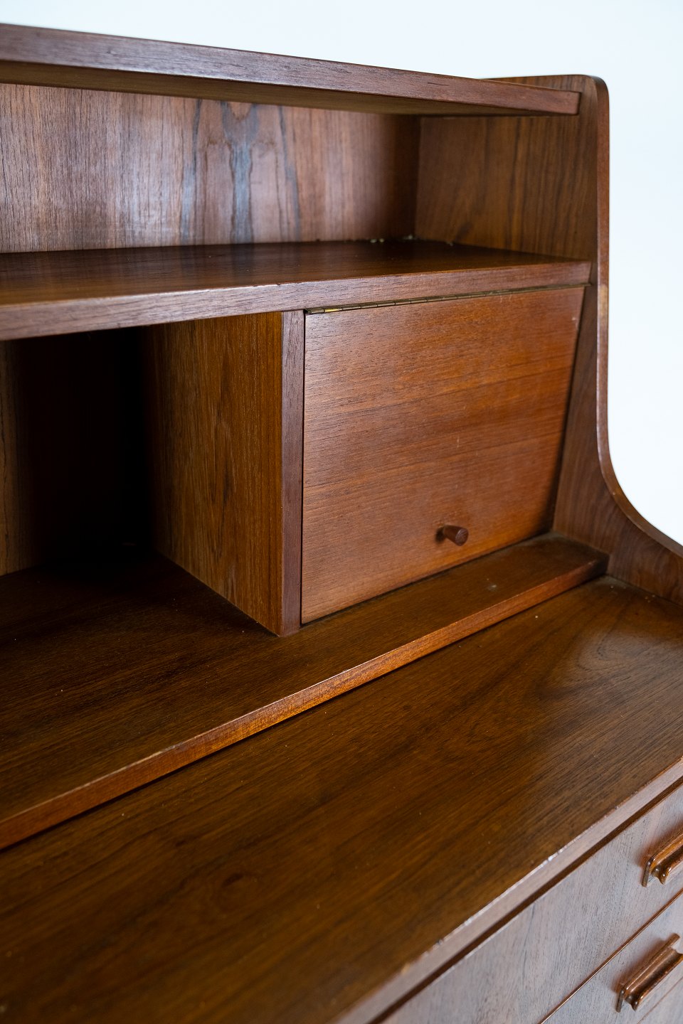 This secretary, designed and produced in Denmark around the 1960s, is a beautiful example of Danish furniture art from this era. Made of teak wood, the secretary exudes a warm and natural elegance.