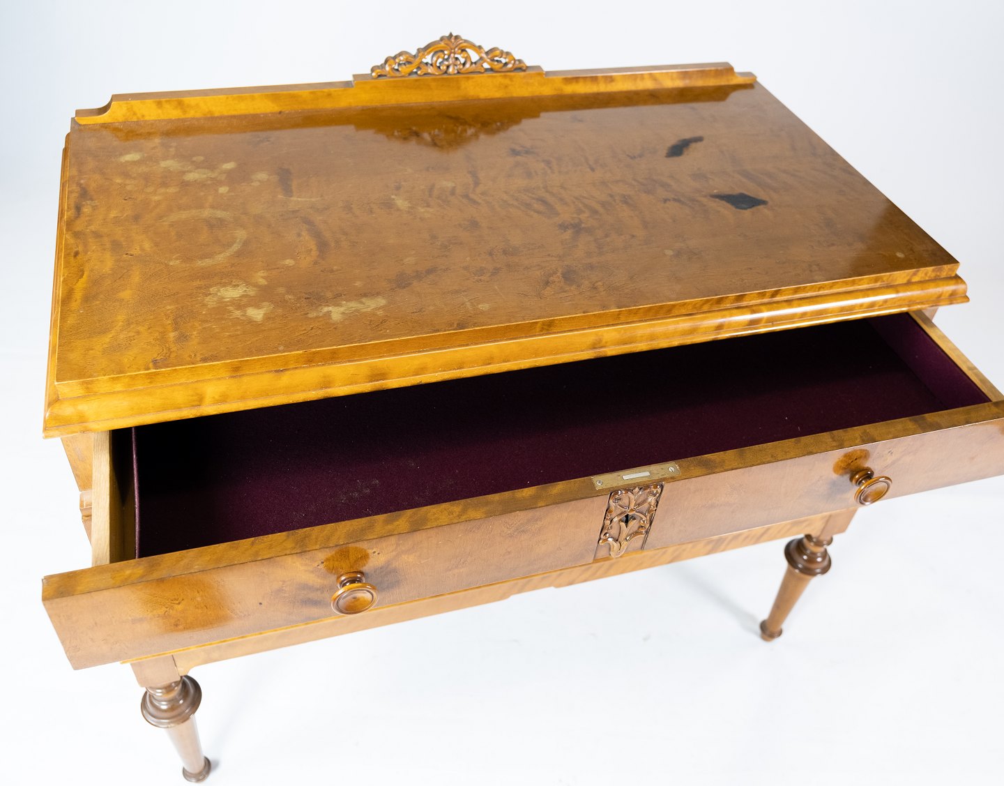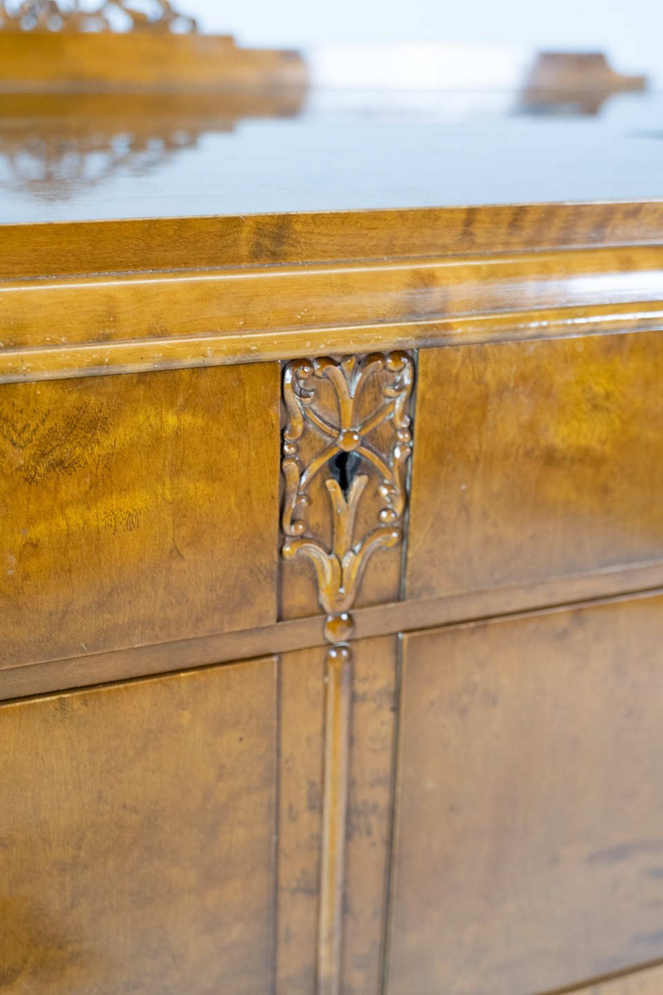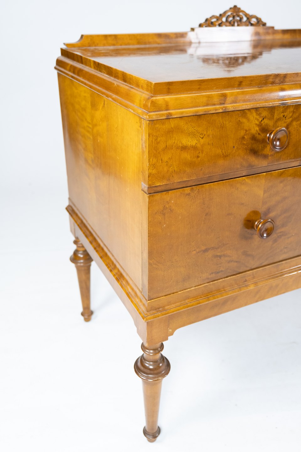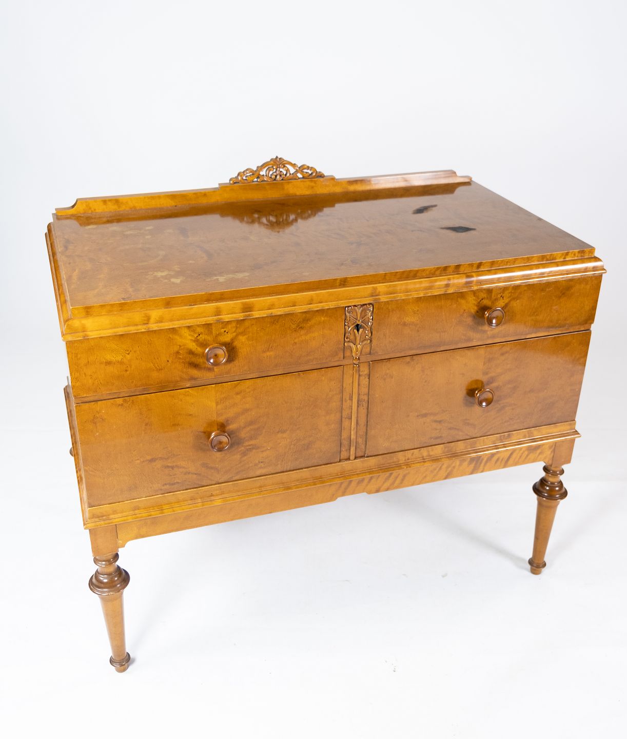 Kommode i birketræk med udskæringer, i flot antik stand fra 1930erne.