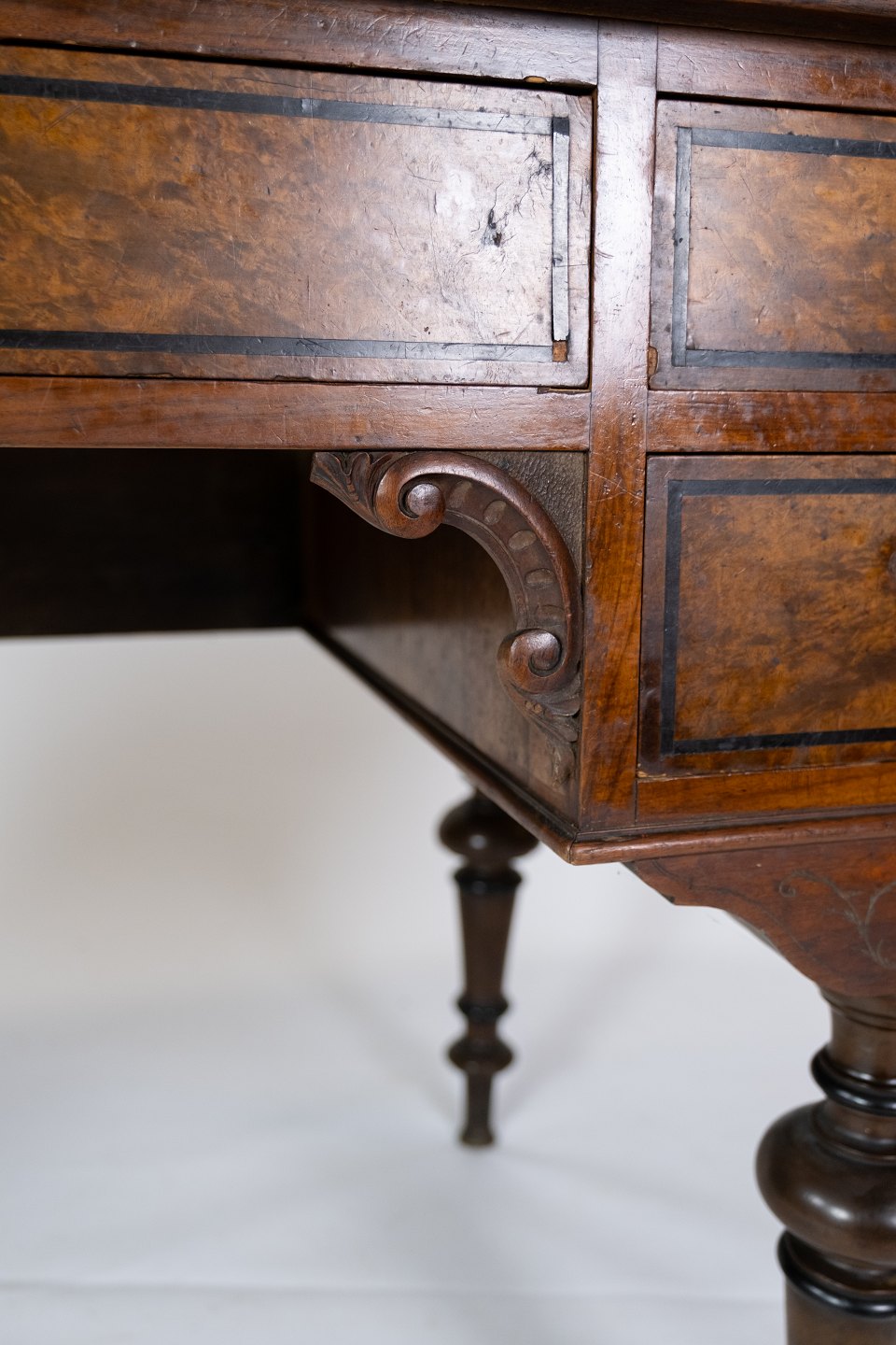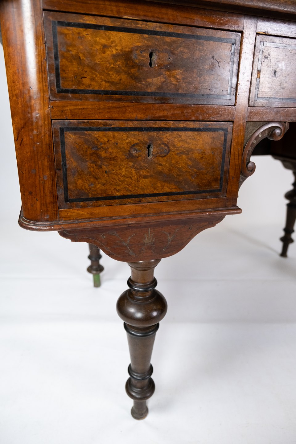 Skrivebord af nøddetræ, i flot antik stand fra 1860erne.