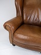 Stor hvilestole/øreklapstol i cognacfarvet læder. Stolen er i flot brugt stand.