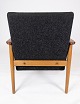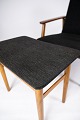 Lænestol med skammel i teak og mørkt uldstof af dansk design fra 1960erne.