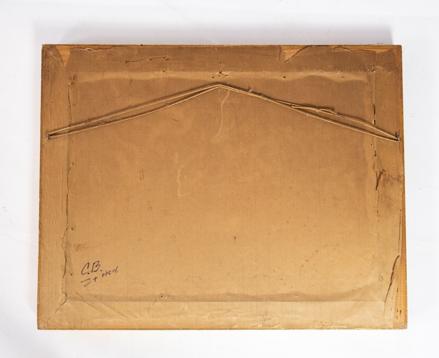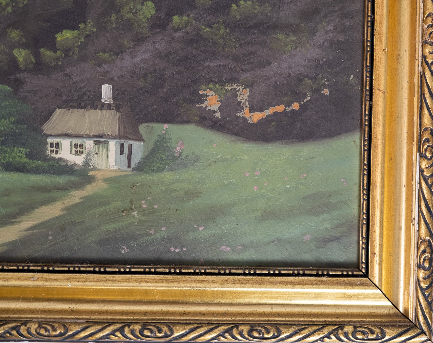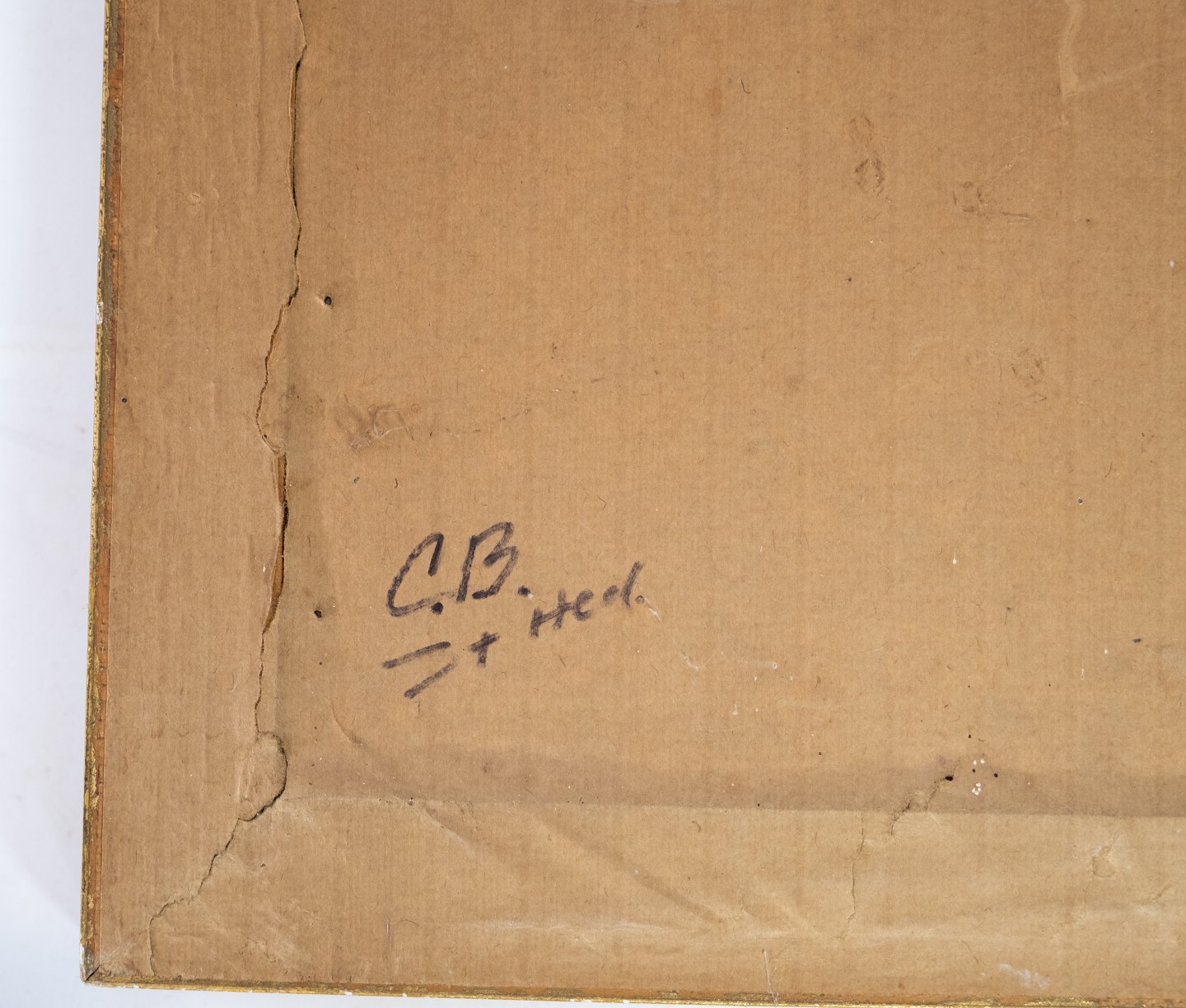 Oil painting with nature motif and gilded frame, signed C.B. from the 1930s.