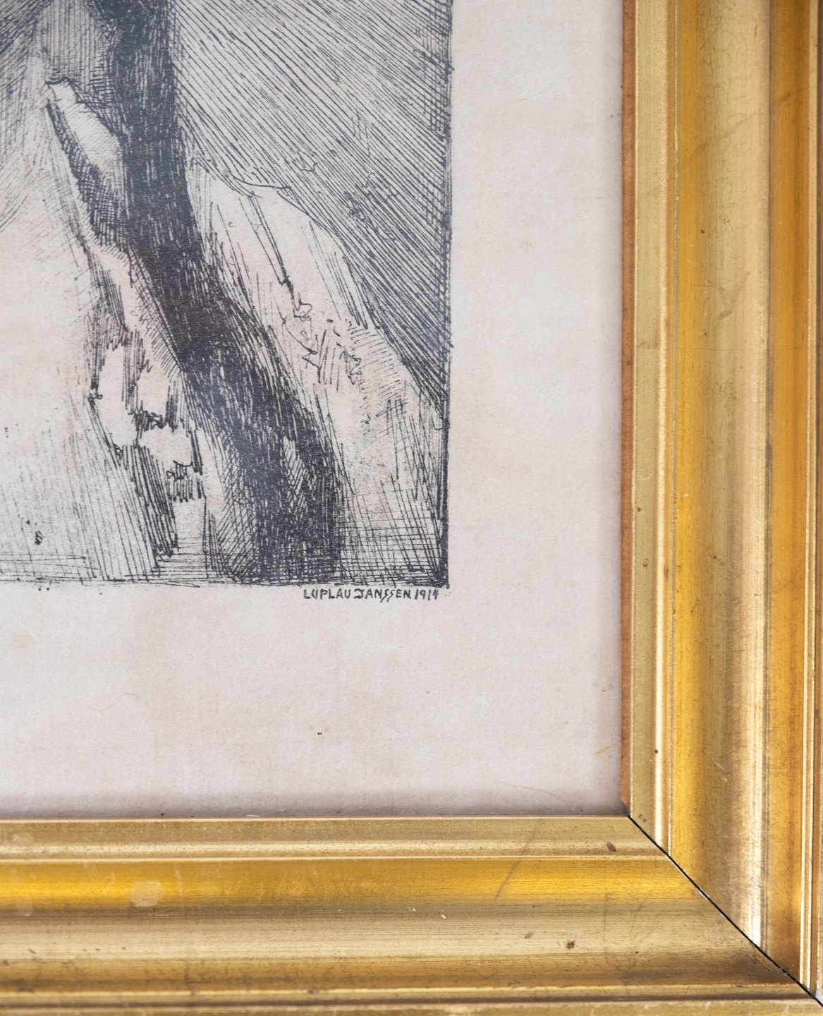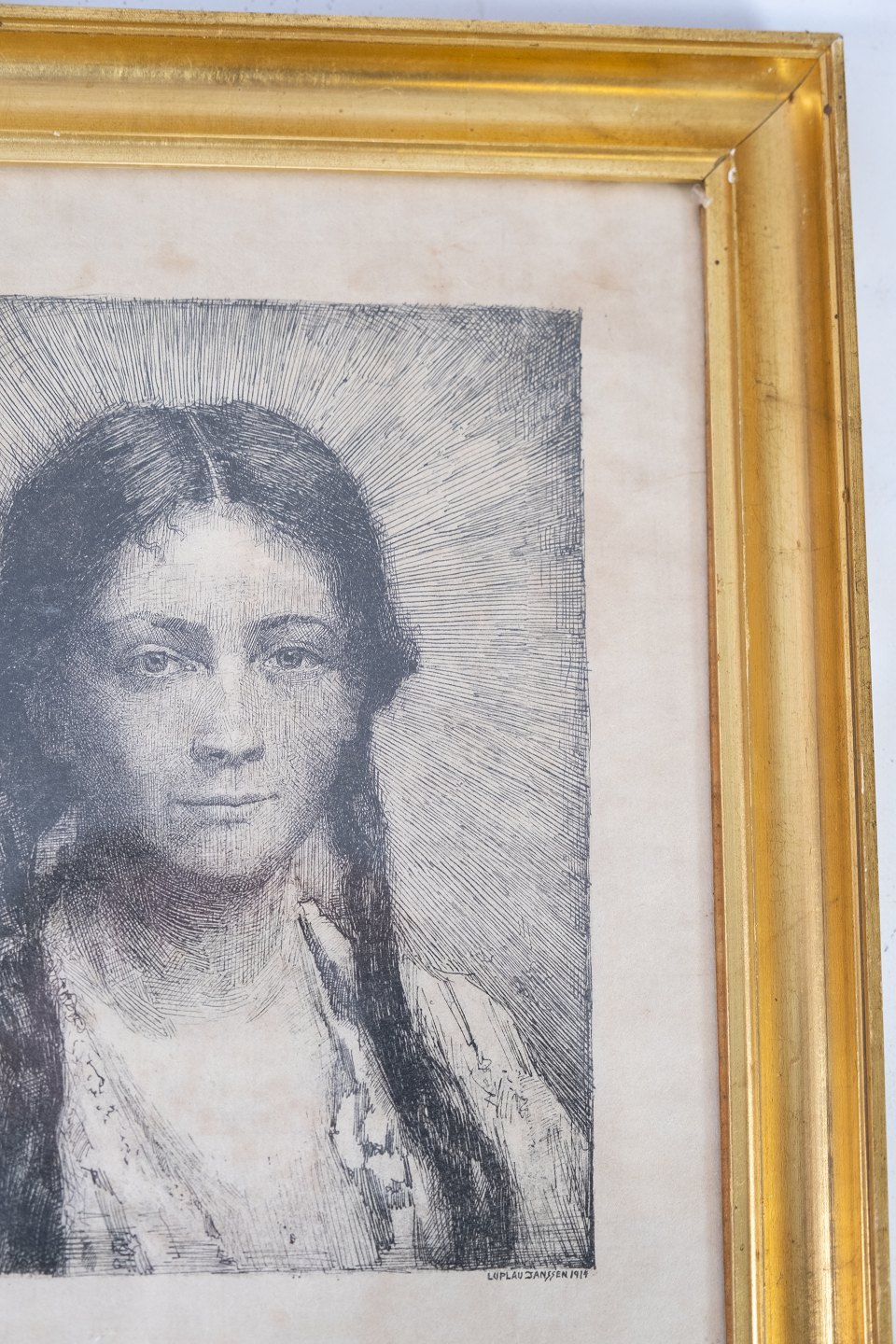 Portræt tegning med forgyldt ramme af Luplau Janssen 1869-1927.