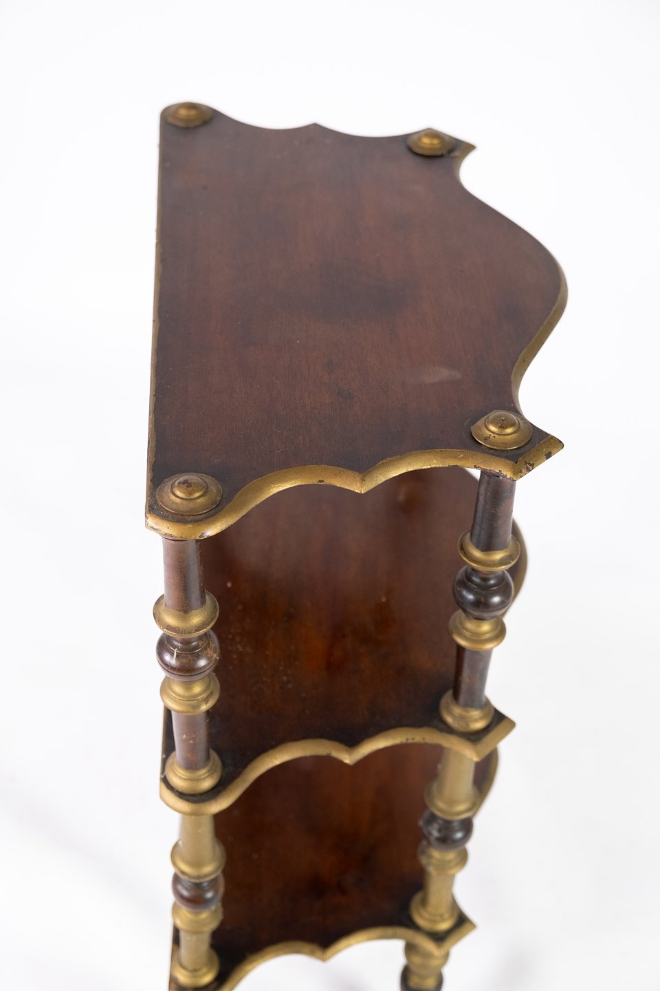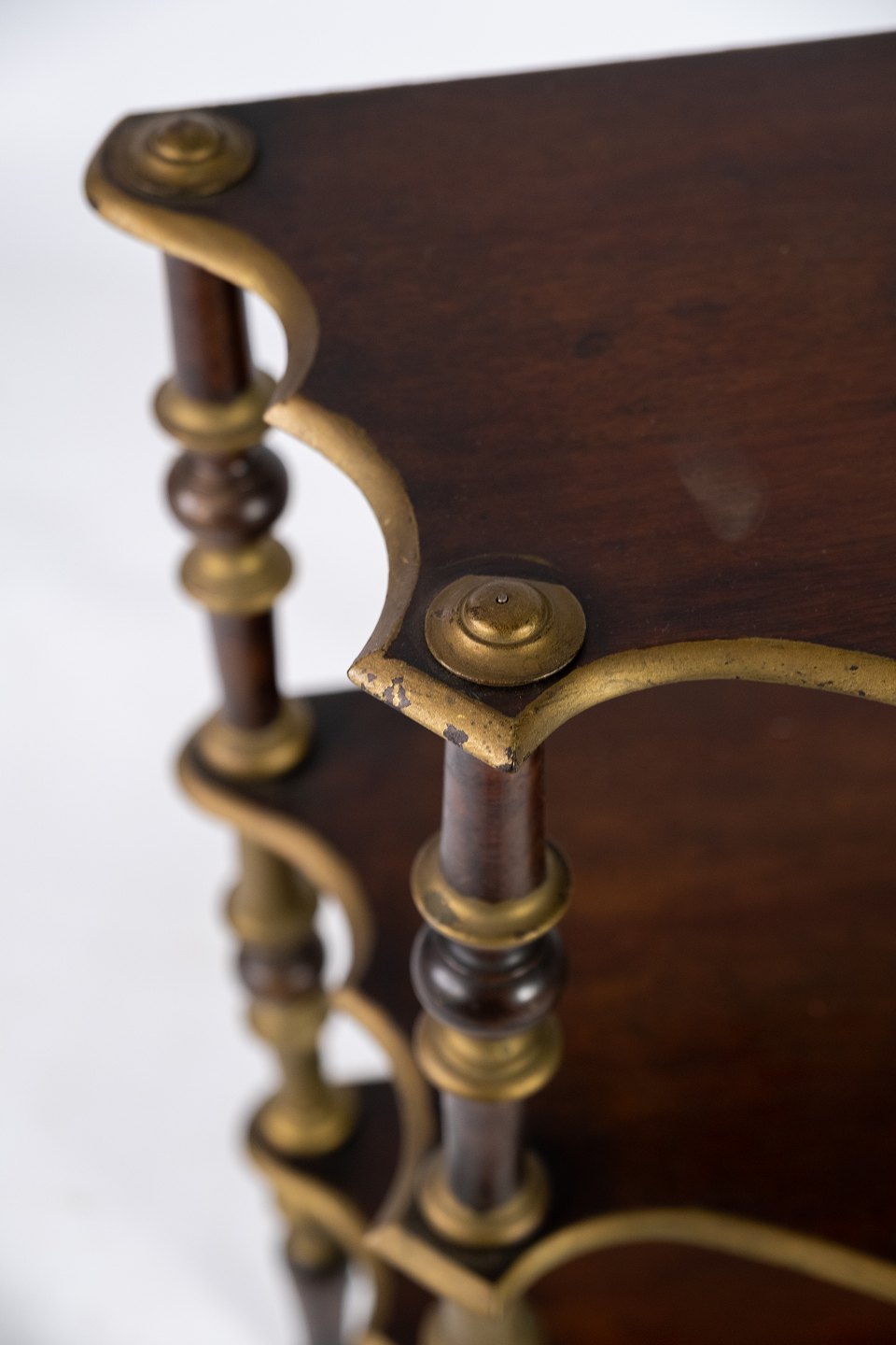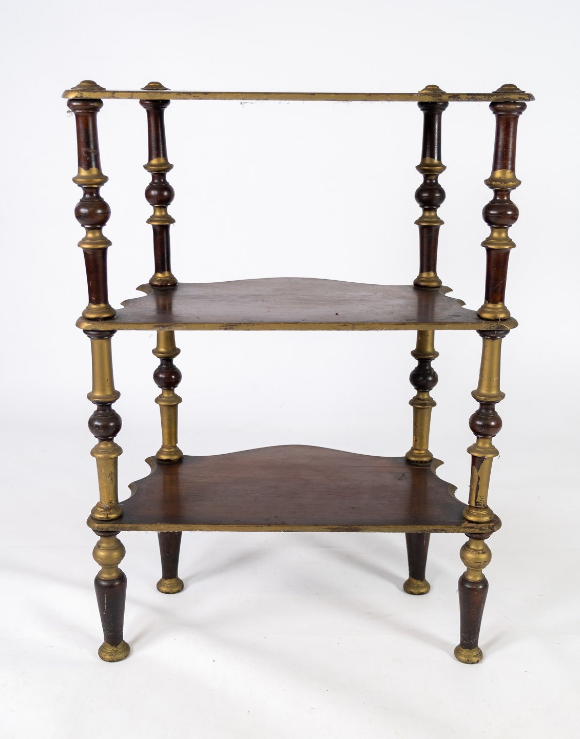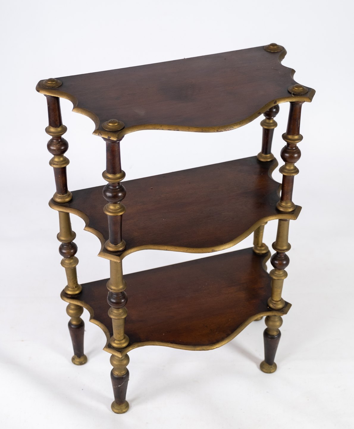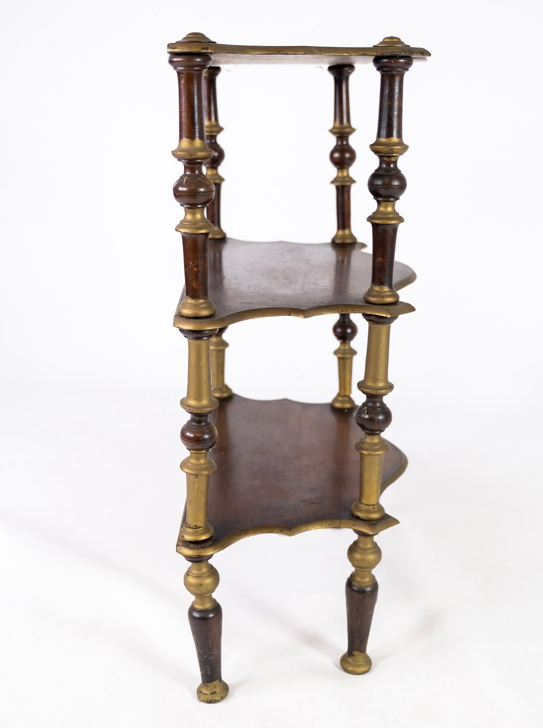 Antique bookcase of dark wood and decorated with gold from the 1930s.
