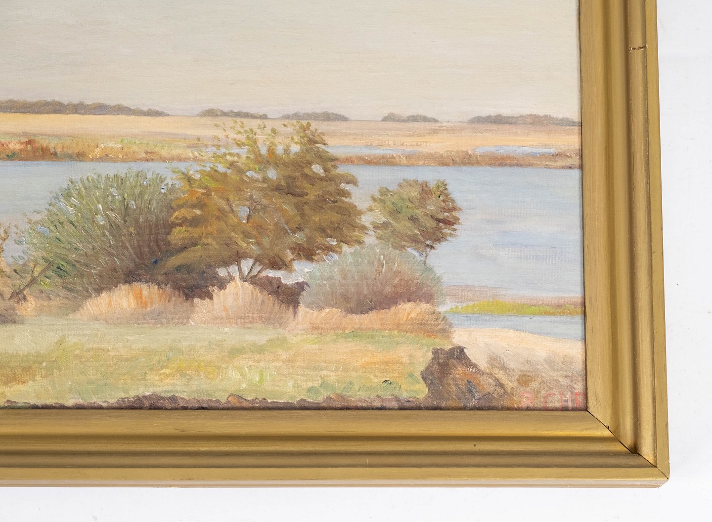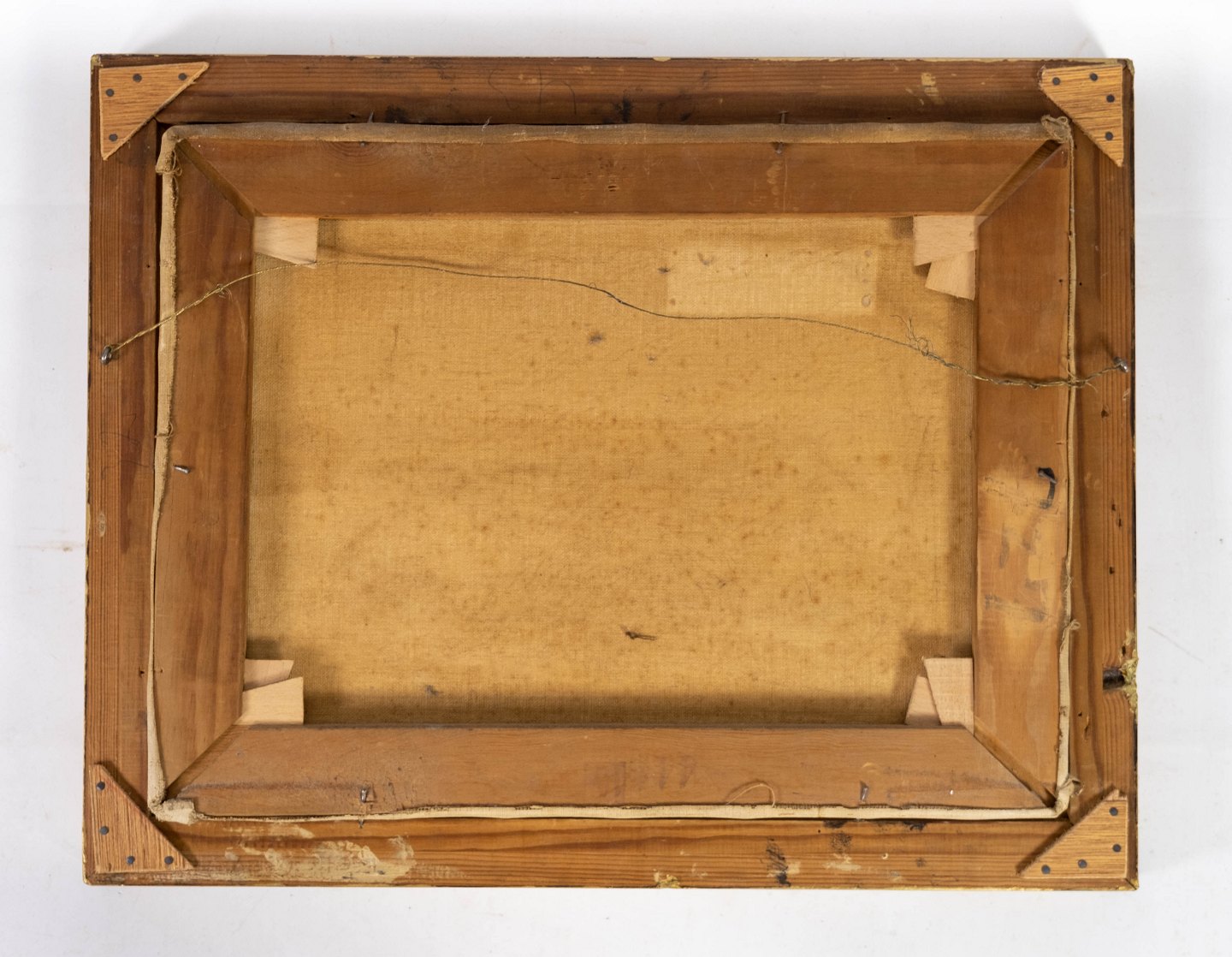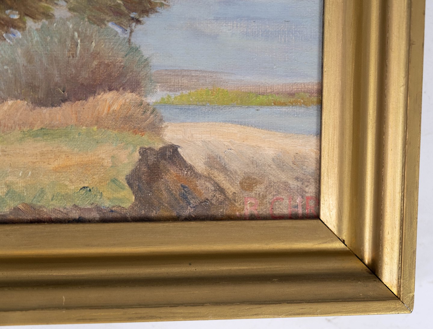 Oil painting with nature motif and gilded frame, with unknown signature.