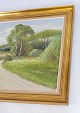Oliemaleri med natur motiv og forgyldt ramme, med ukendt signatur fra 1920erne.