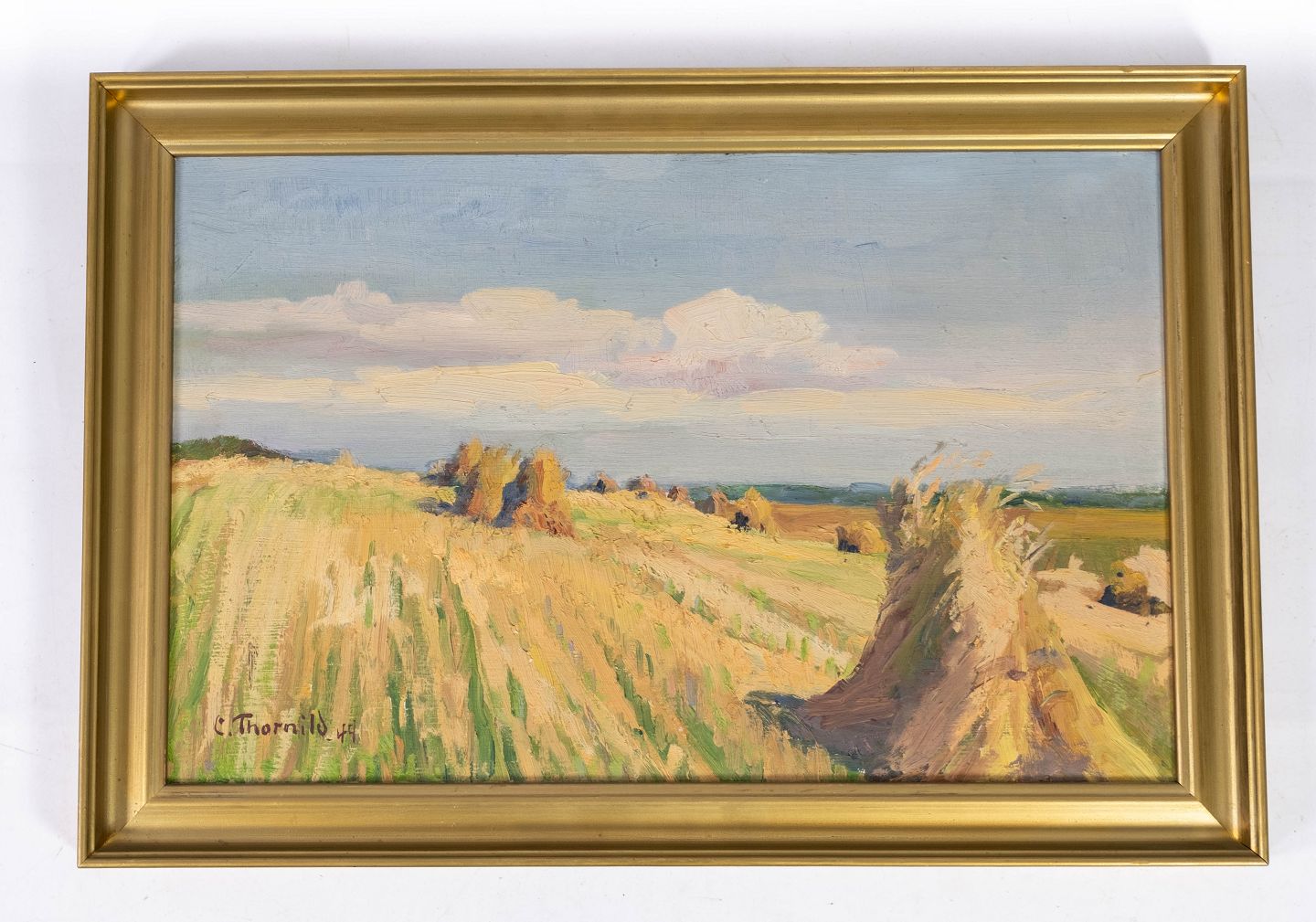Oil painting with nature motif and with gilded frame signed by C. Thornild.