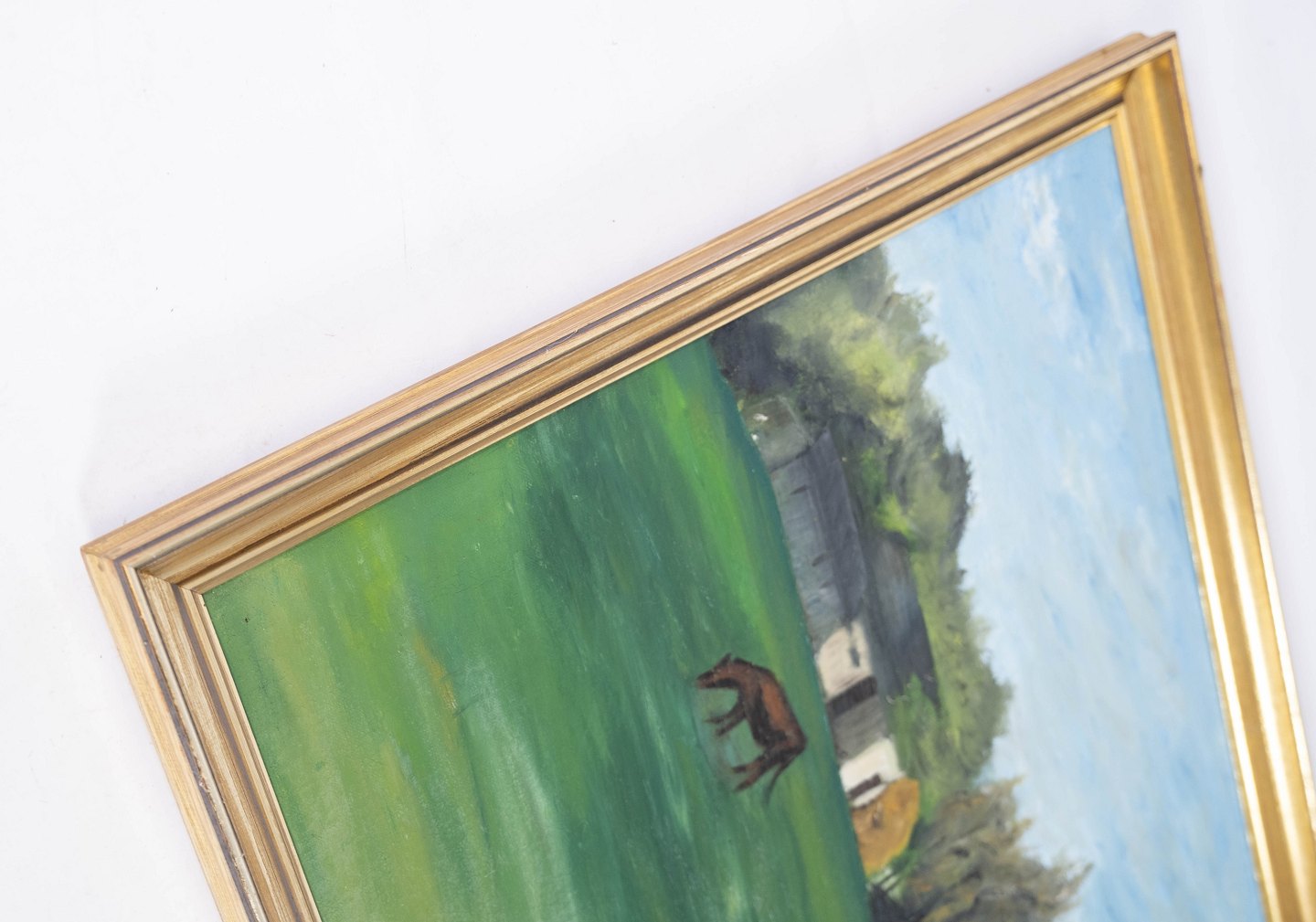 Oil painting with motif of horses and with gilded frame from the 1920s.