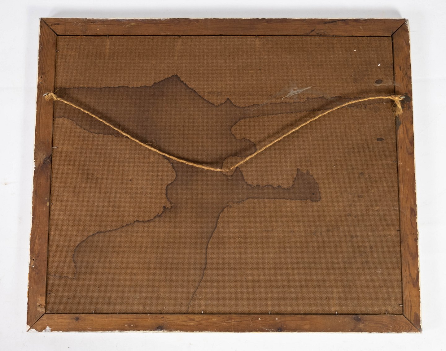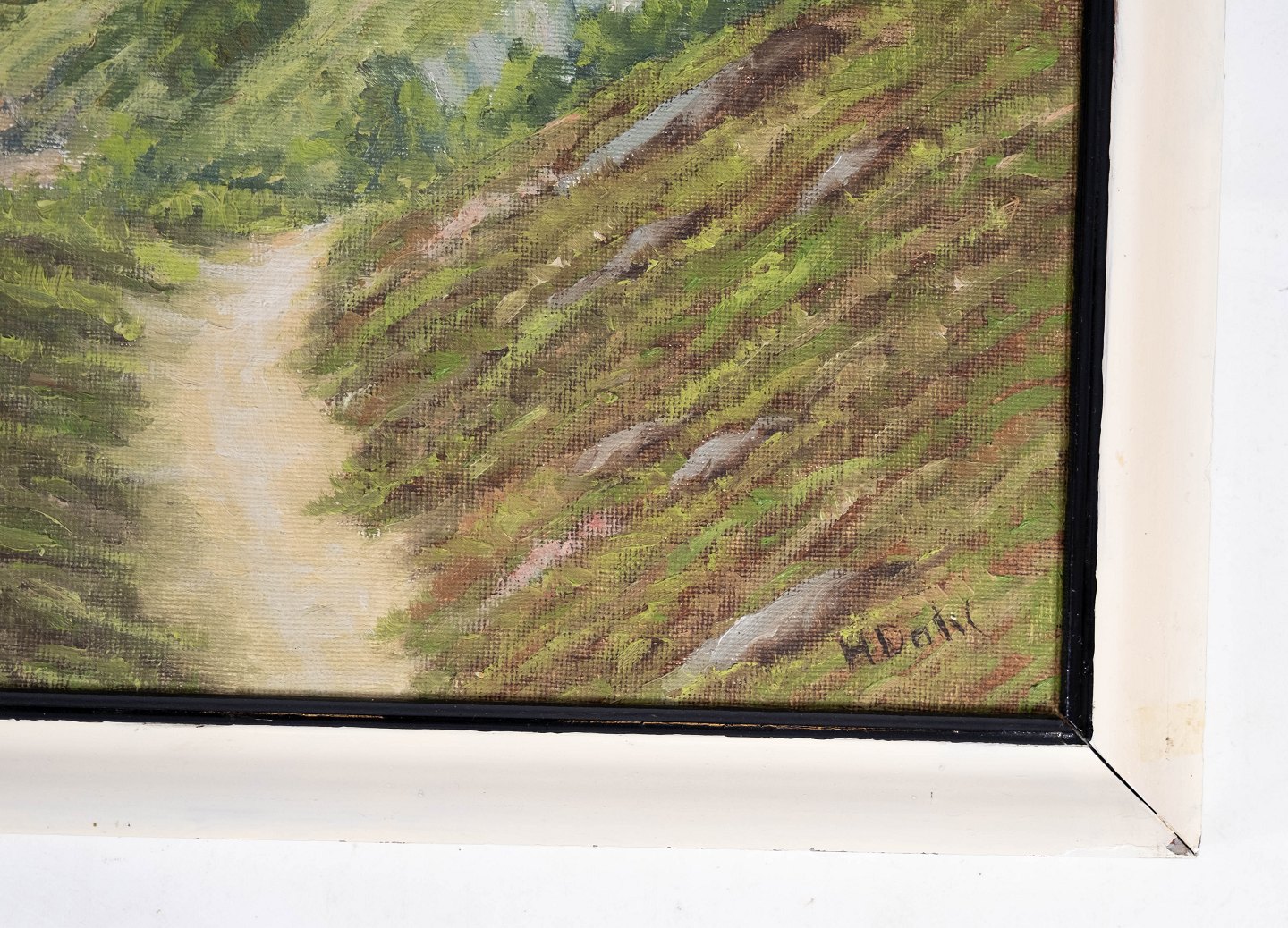Oliemaleri på træplade med motiv af Hammerhus, Bornholm signeret H. Dahl fra 1930erne.
