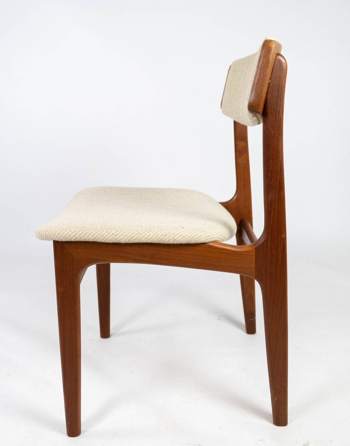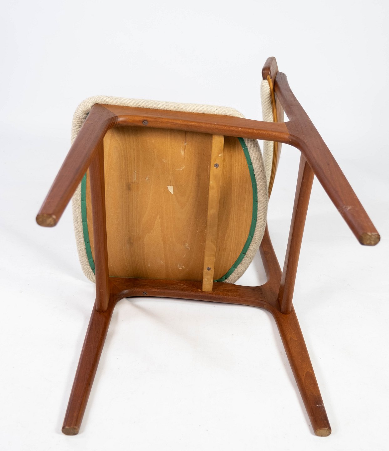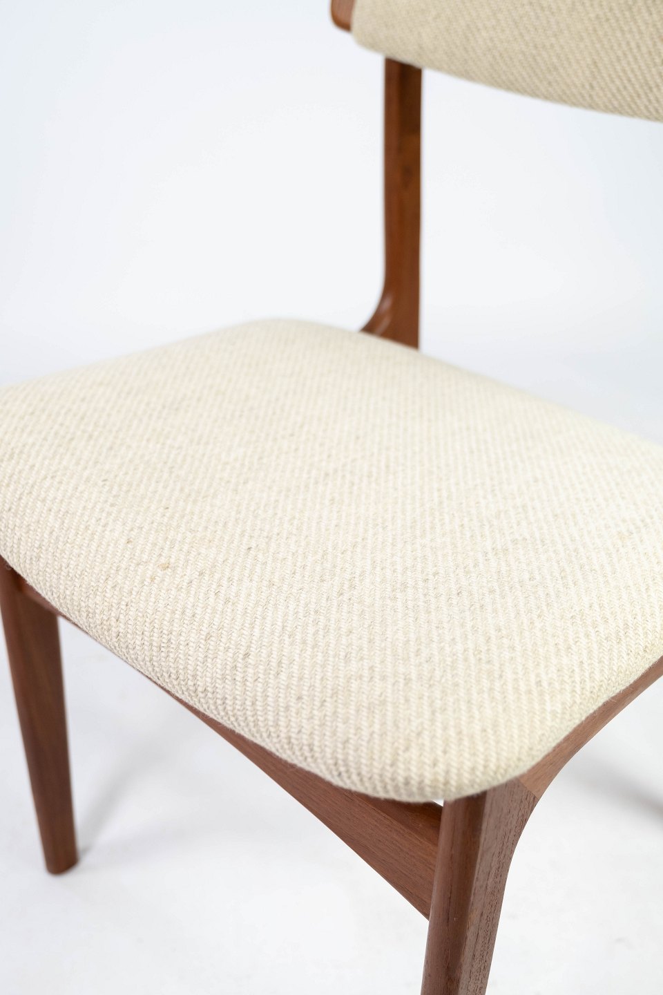 Set of two dining room chairs in teak and upholstered with light Hallingdal wool fabric of danish design from the 1960s. The chairs are in great vintage condition.