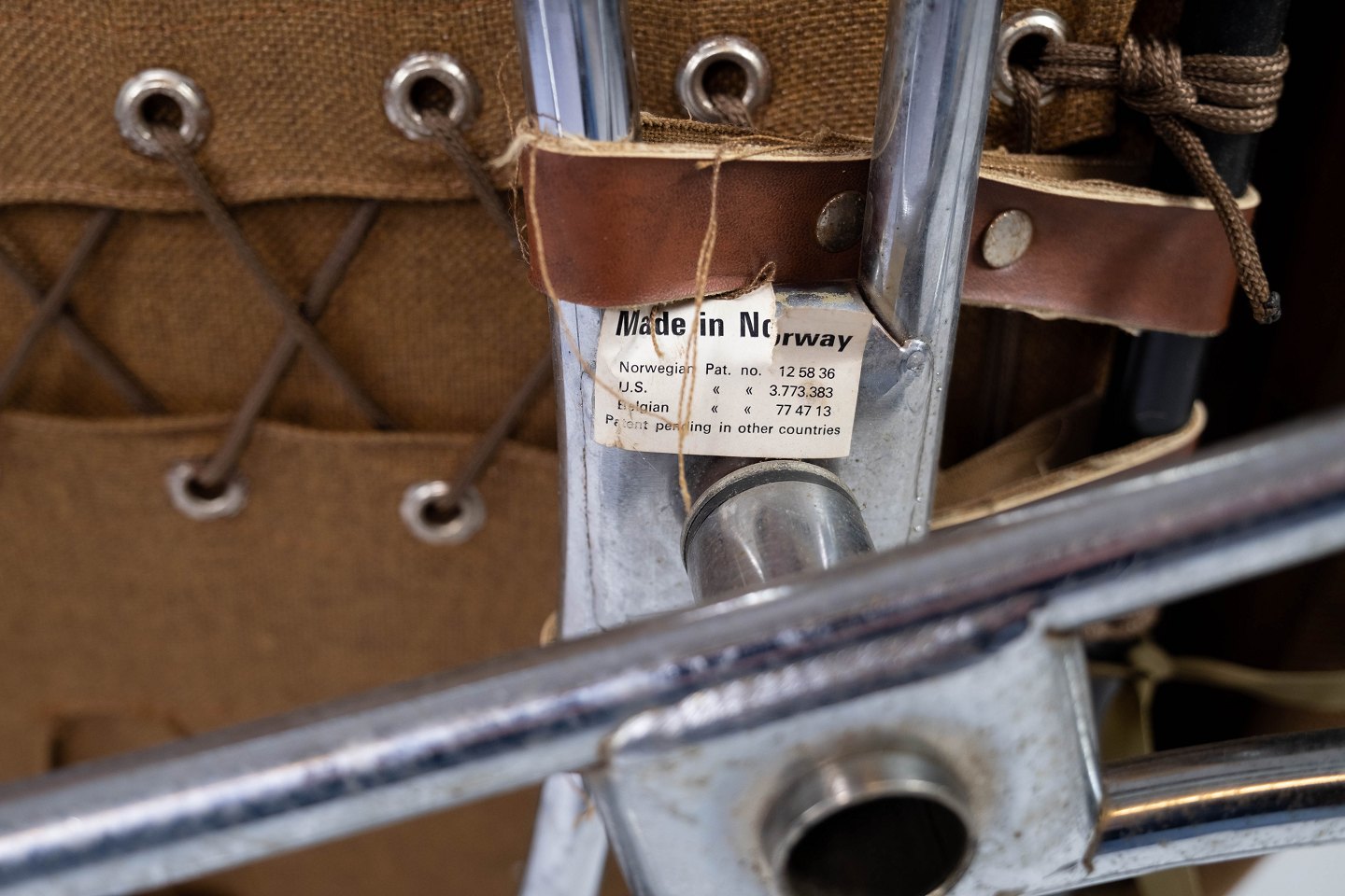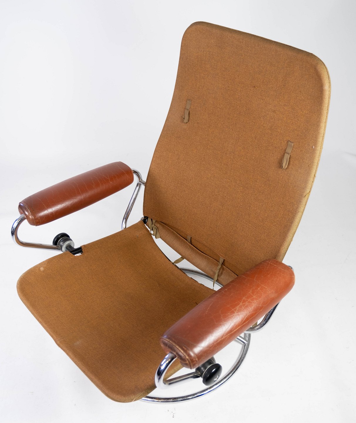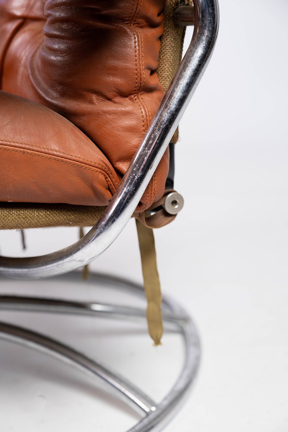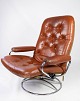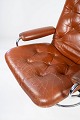 Easy chair upholstered with brown patinated leather of norwegian design from the 1970s.