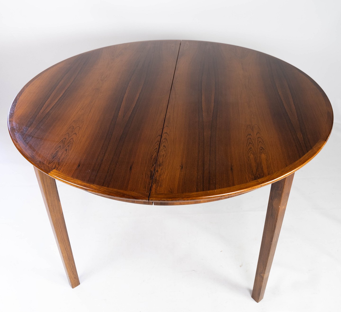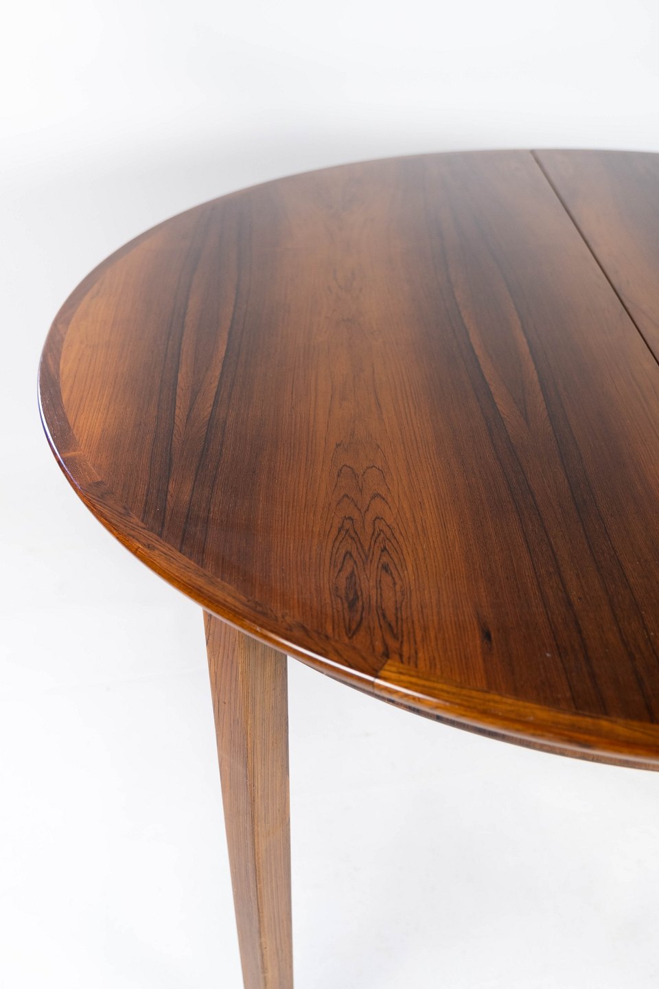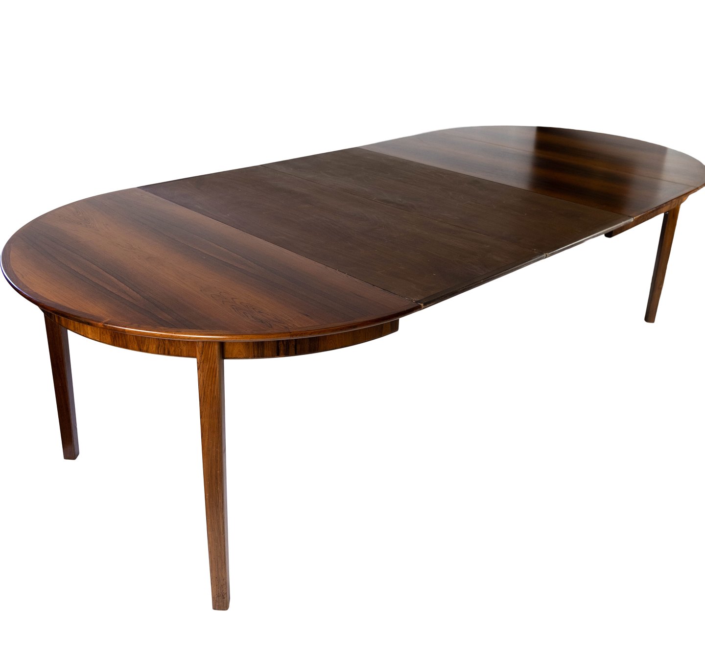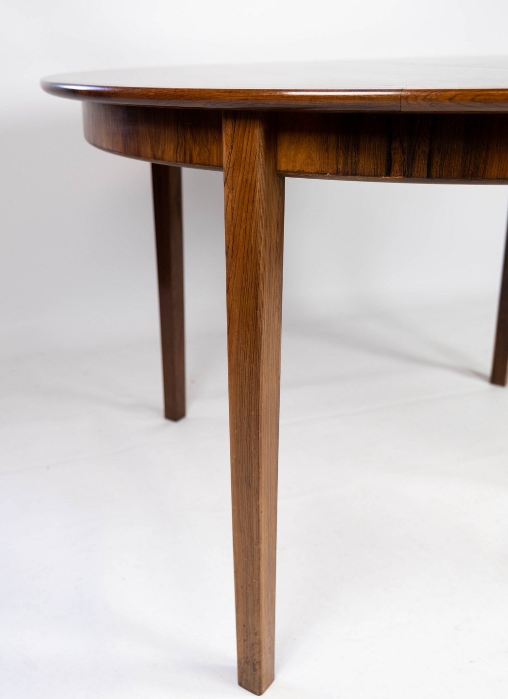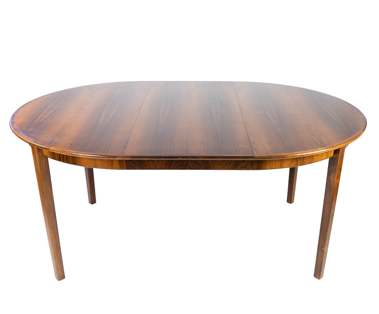 Dining table in rosewood with three extension plates, of danish design from the 1960s. The table is in great vintage condition.