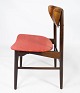 Set of four dining room chairs in rosewood and upholstered with red fabric, of danish design from the 1960s. The chairs are in great vintage condition.