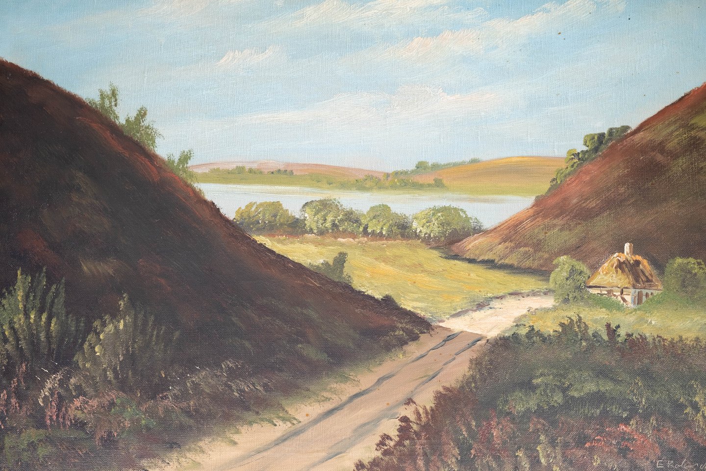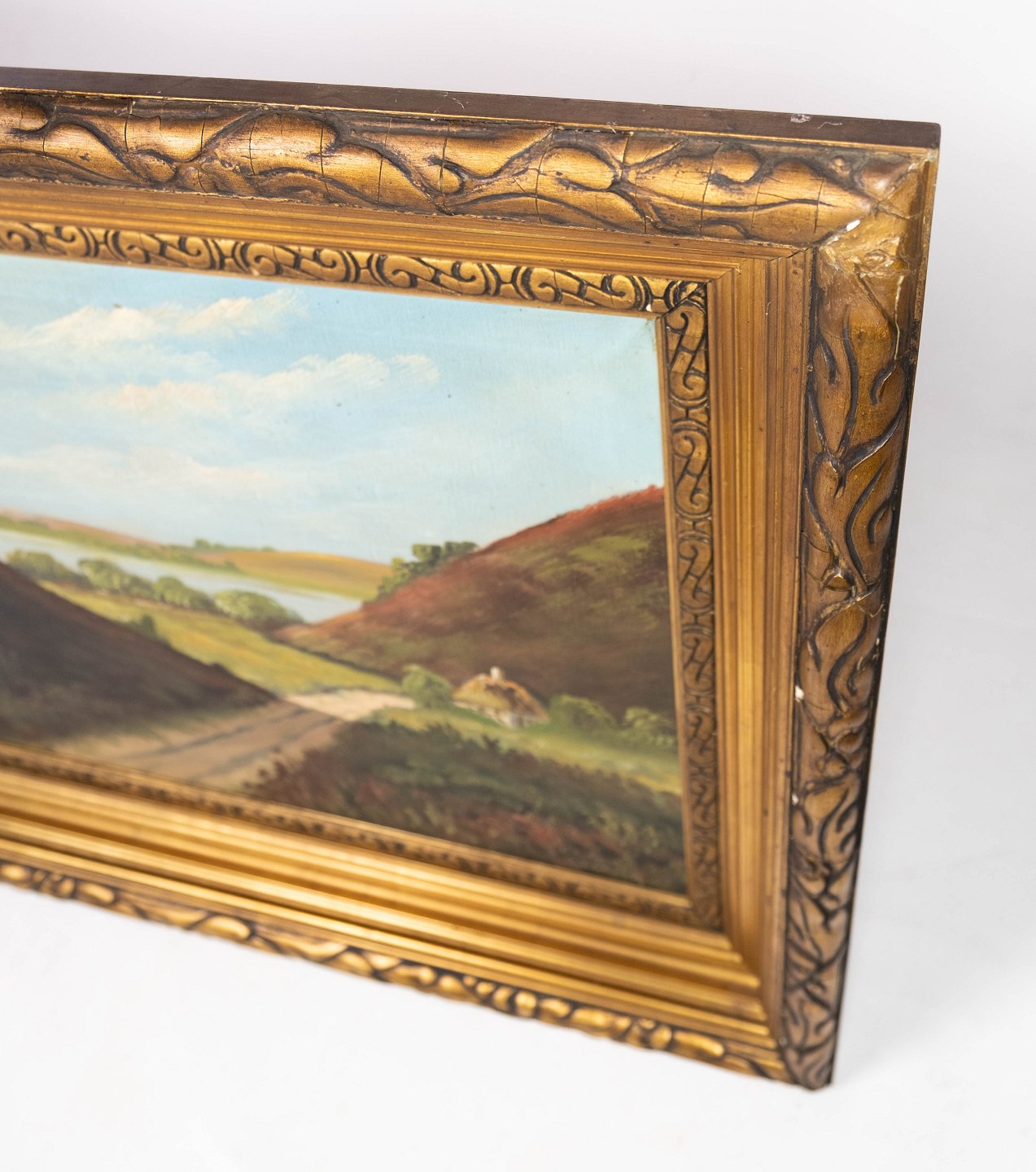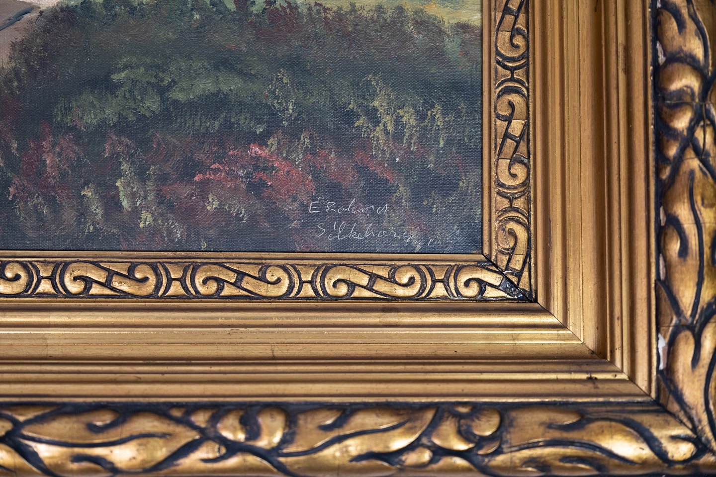 Oil painting with nature motif and gilded frame, unknown signature from the 1930s.