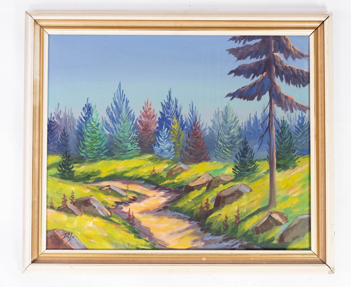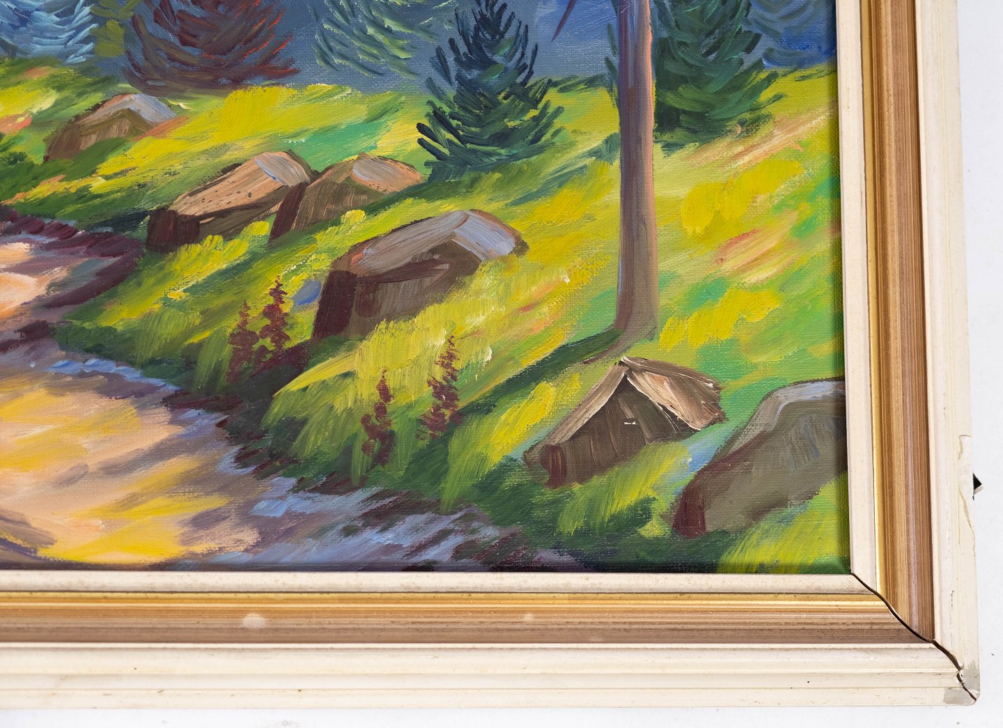 Oil painting with nature motif and gilded frame, without signature from the 1940s.