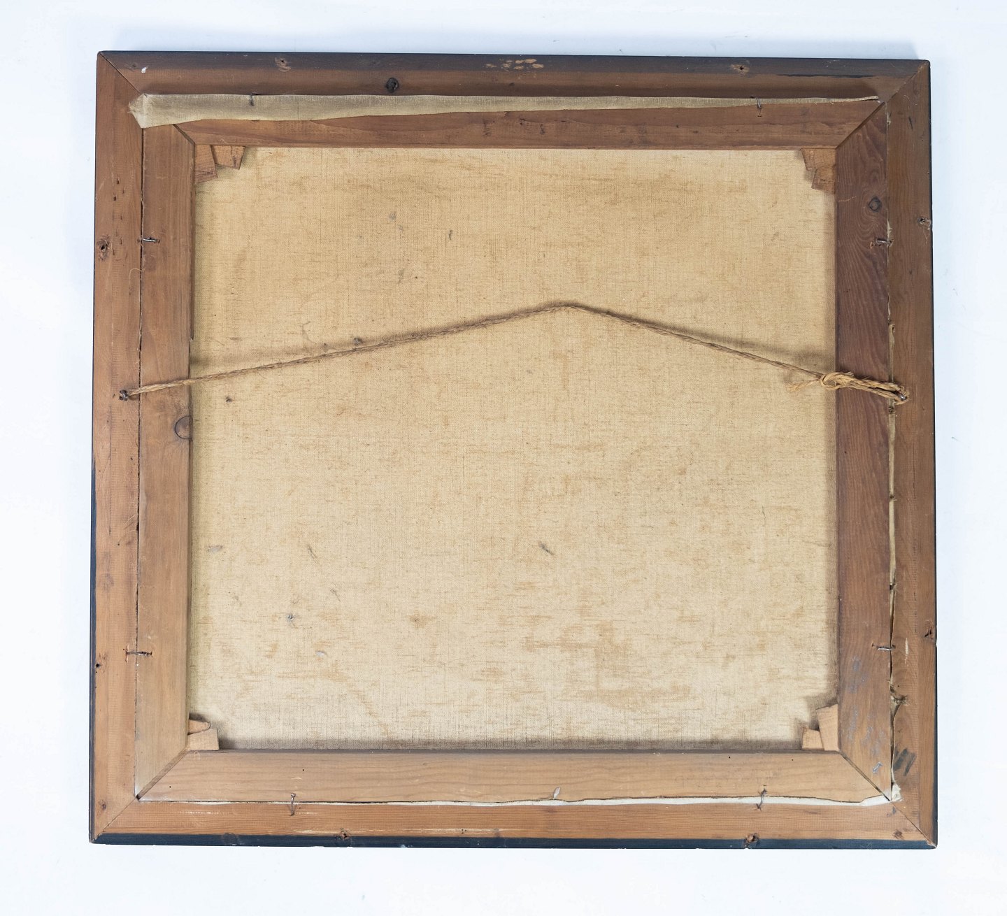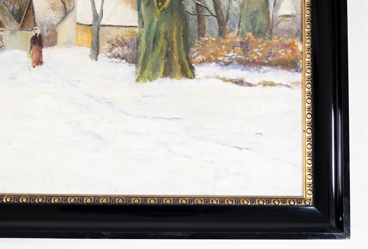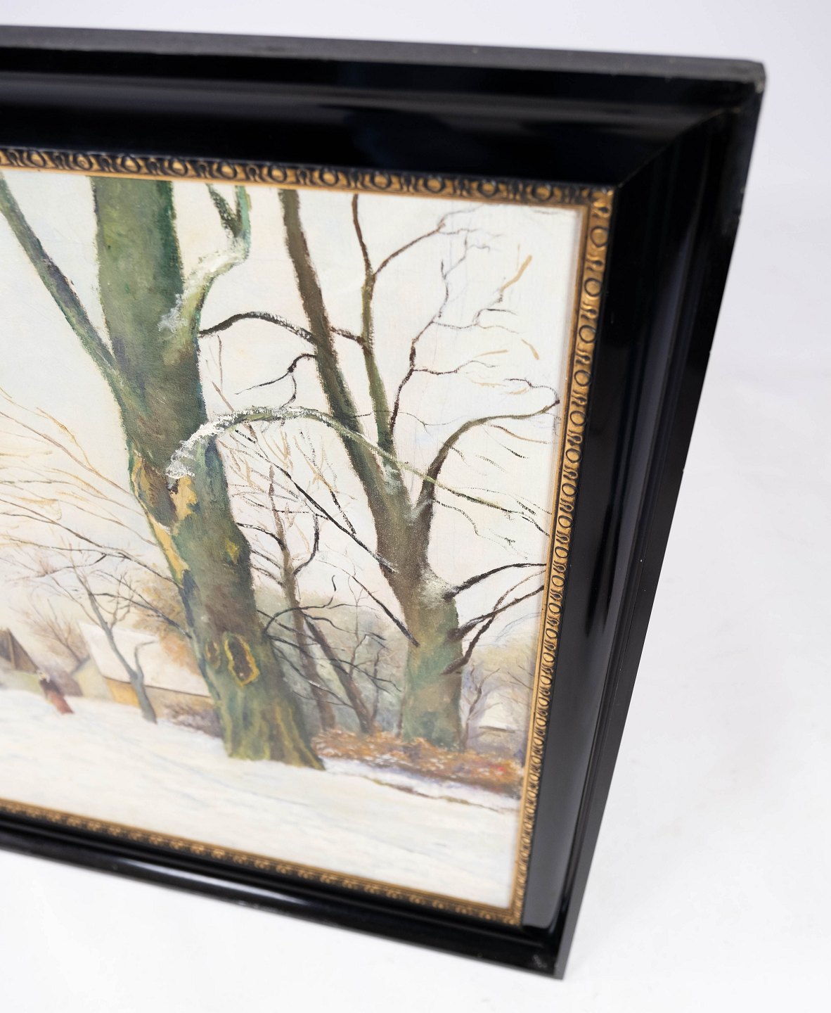 Oliemaleri med vintermotiv og sort malet ramme, uden signatur fra omkring 1910.
