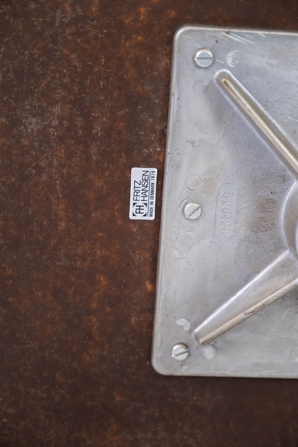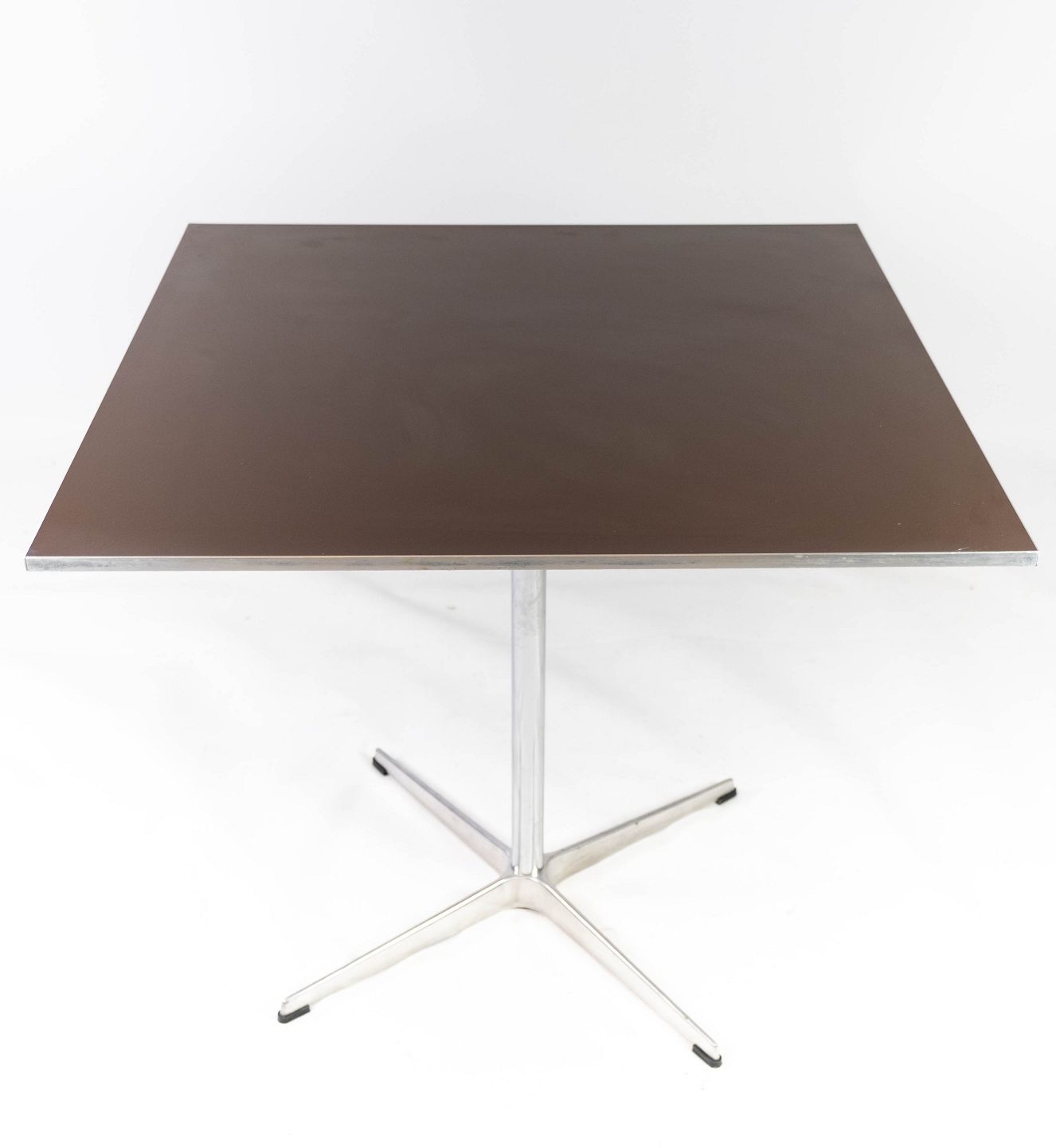 SoldDining table of metal and laminate designed by Arne Jacobsen and manufactured by Fritz Hansen. The table is in great vintage condition.