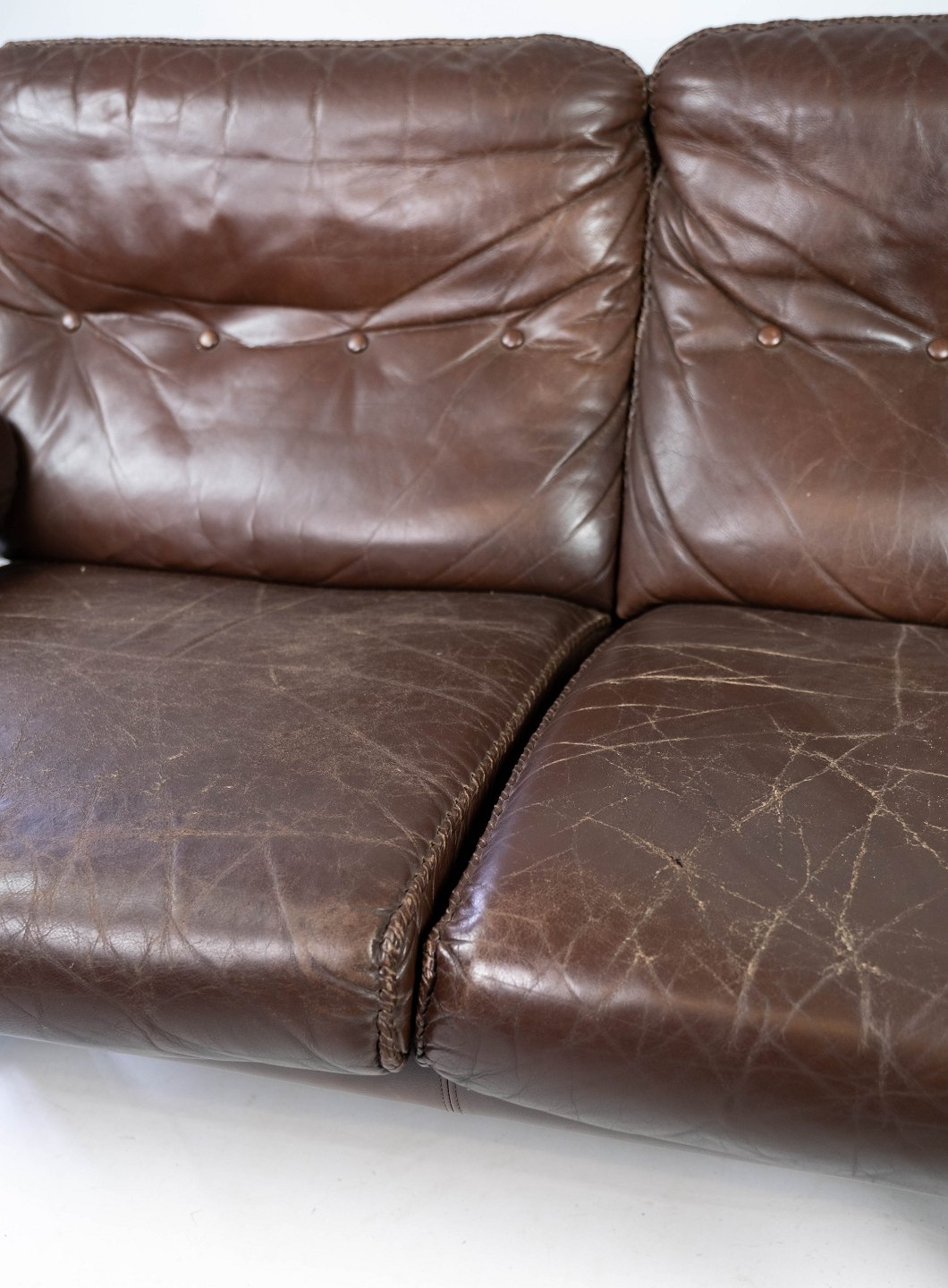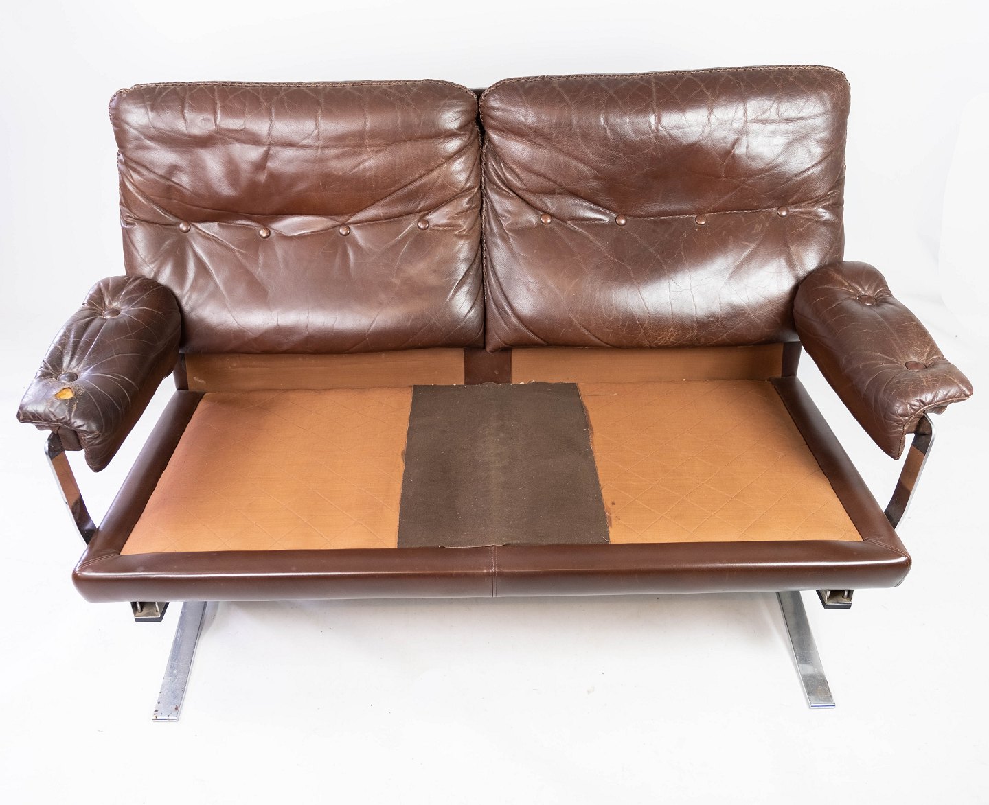 To pers. Sofa - Brunt patineret læder - Stel i metal - Arne Norell - 1970